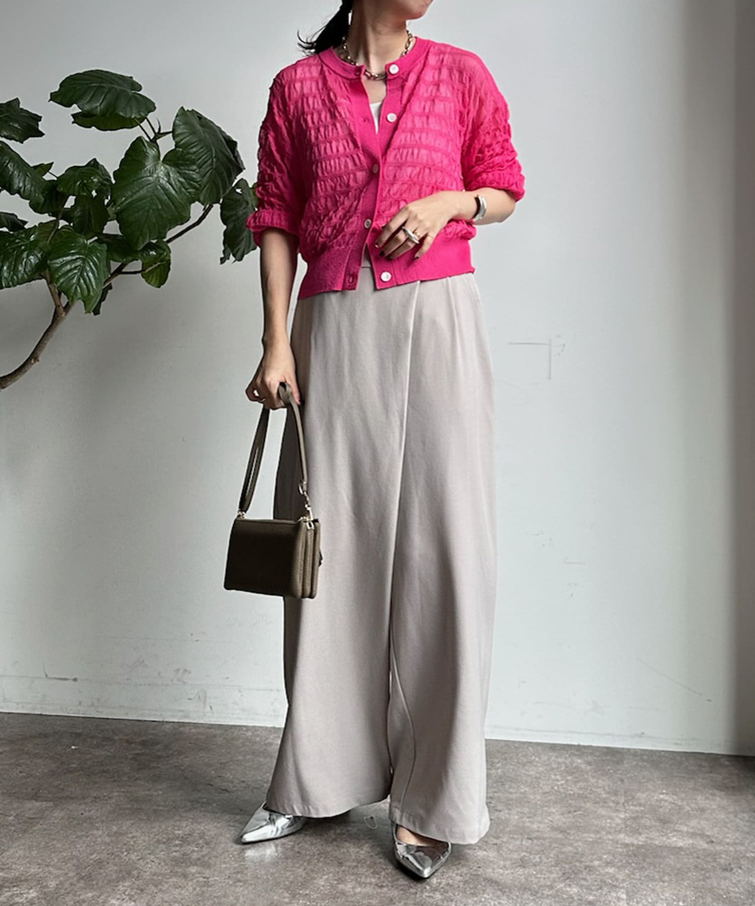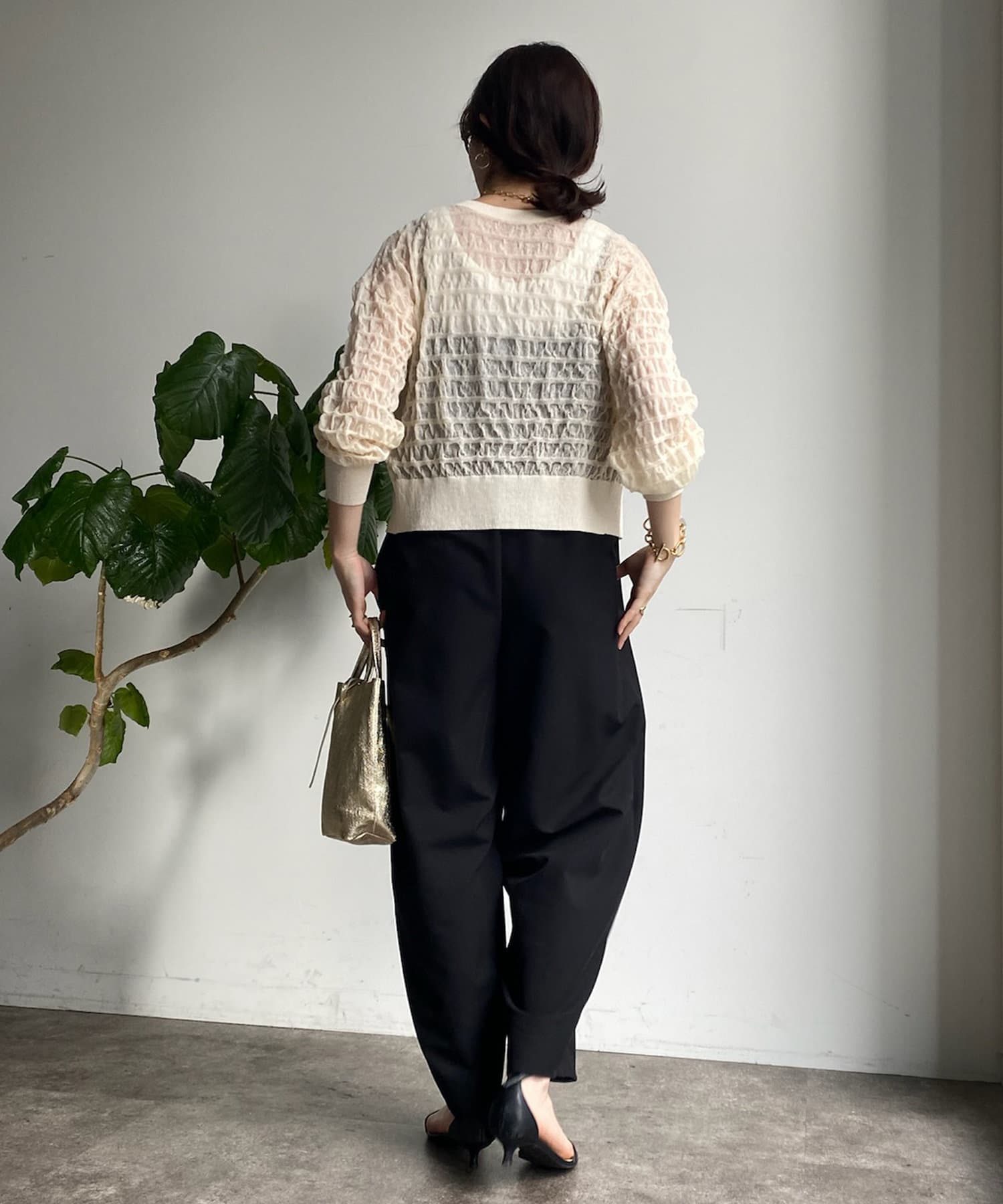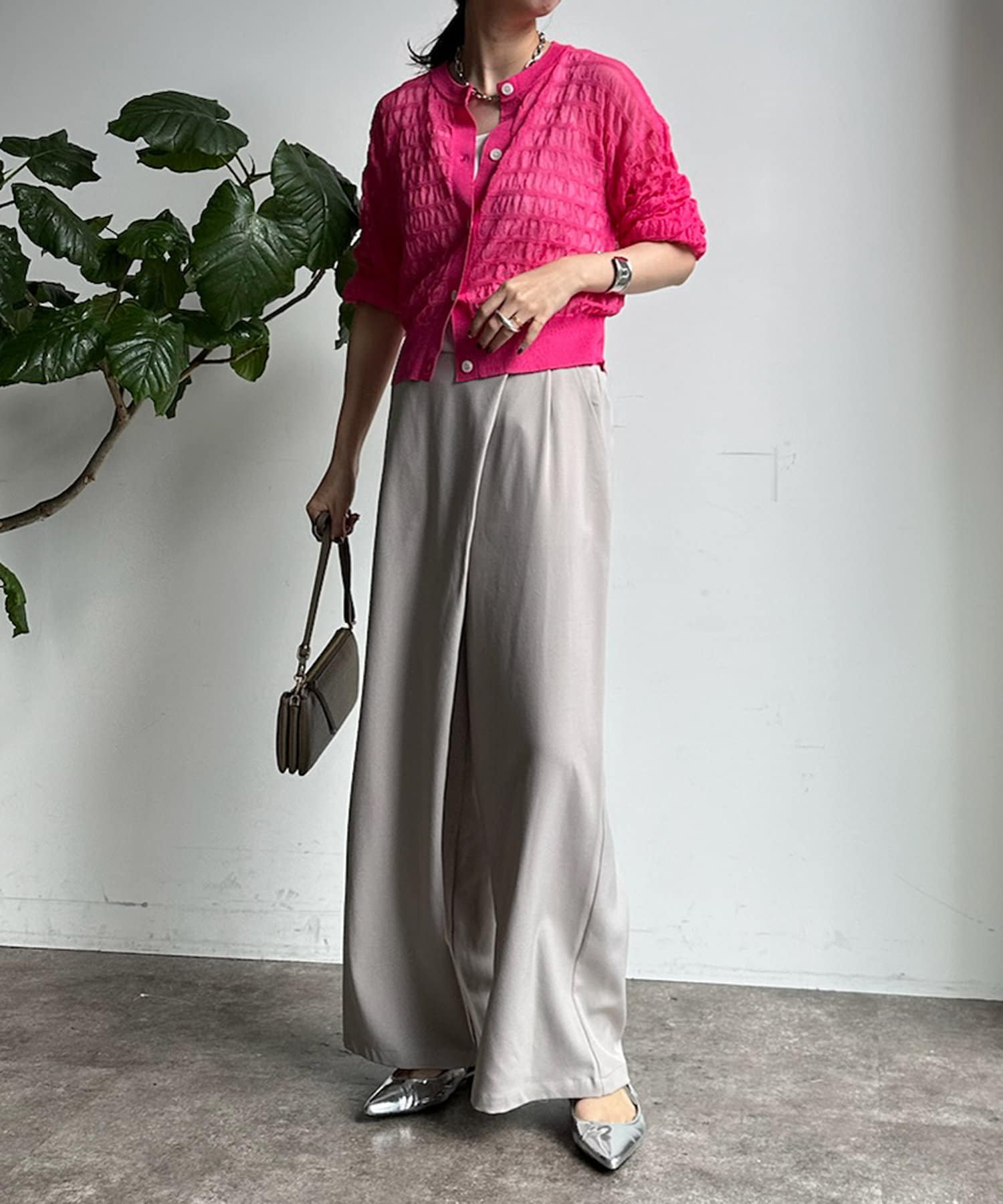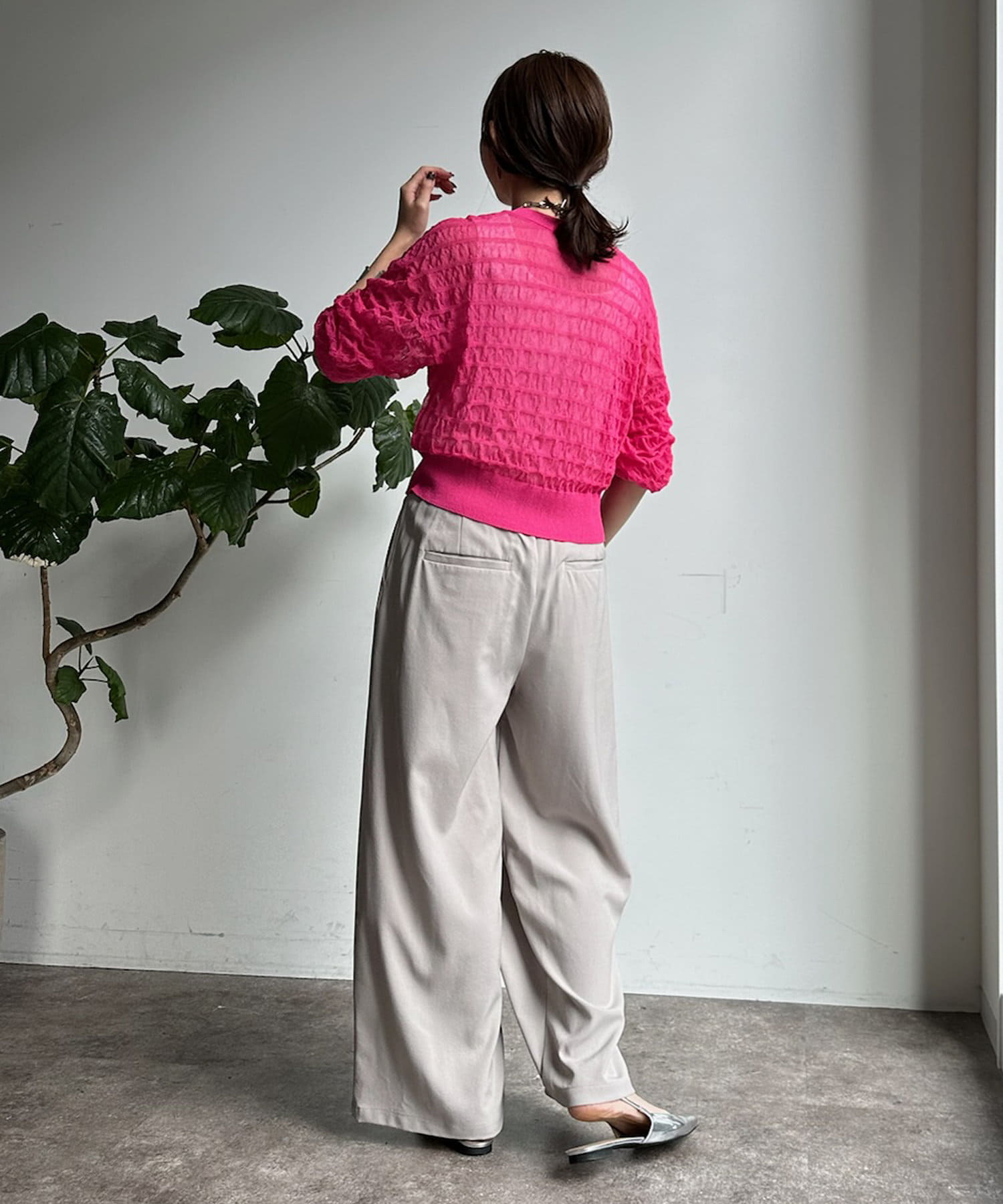 ショート丈なので、ワイドパンツとの合わせが相性抜群ですよ◎