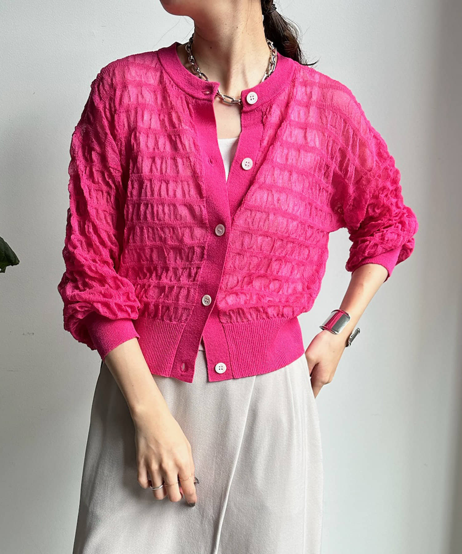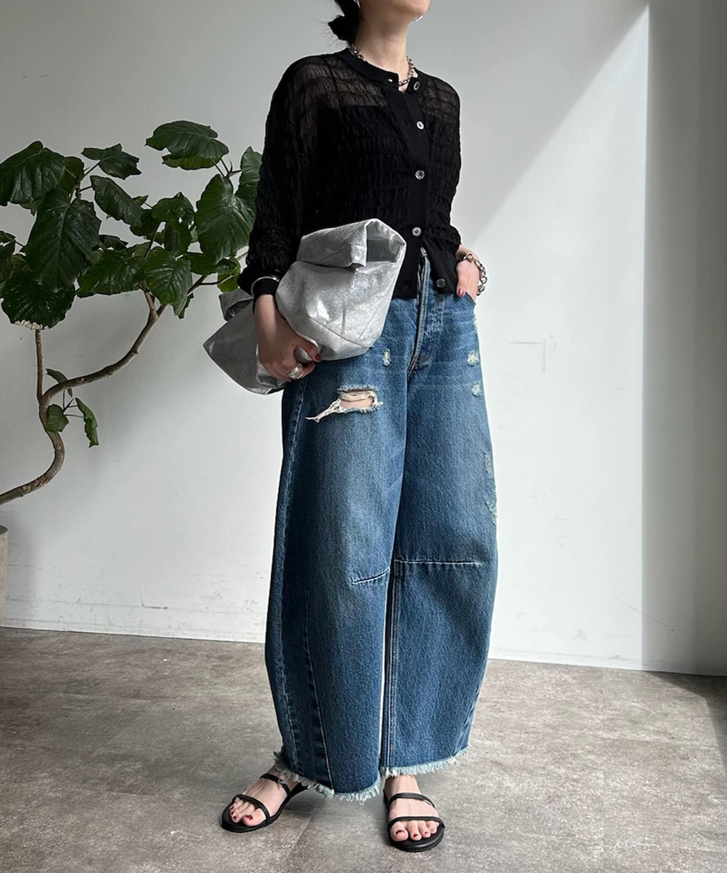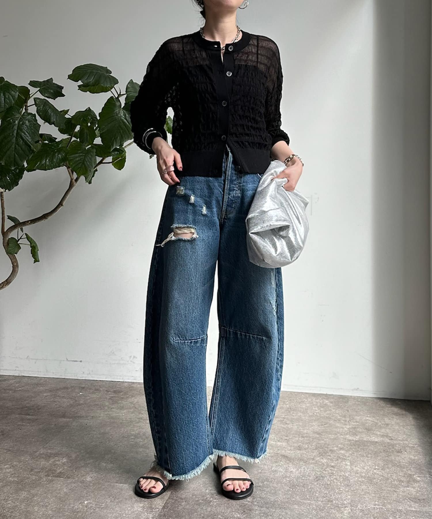シャーリング加工を施した凹凸感が目を惹く、インパクトのある表情が特徴の素材を使用したアイテム!
