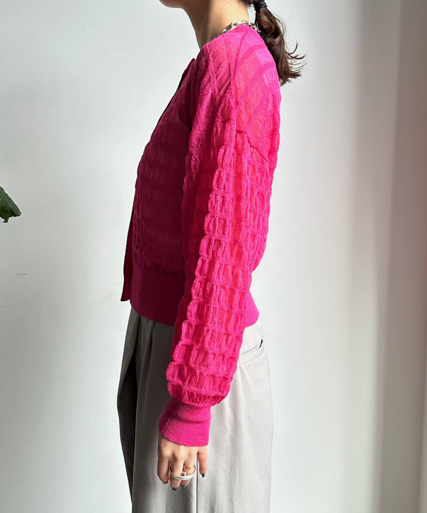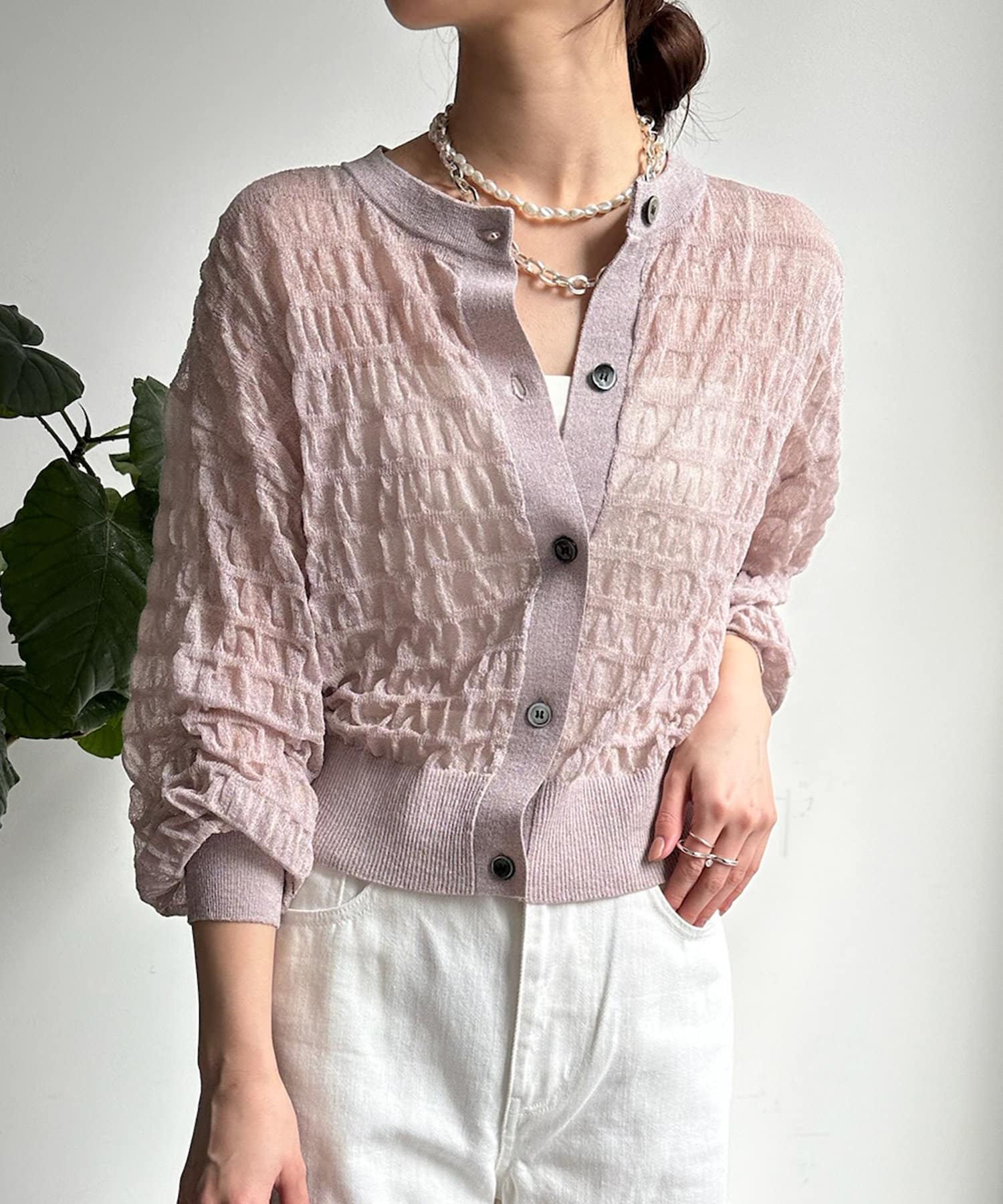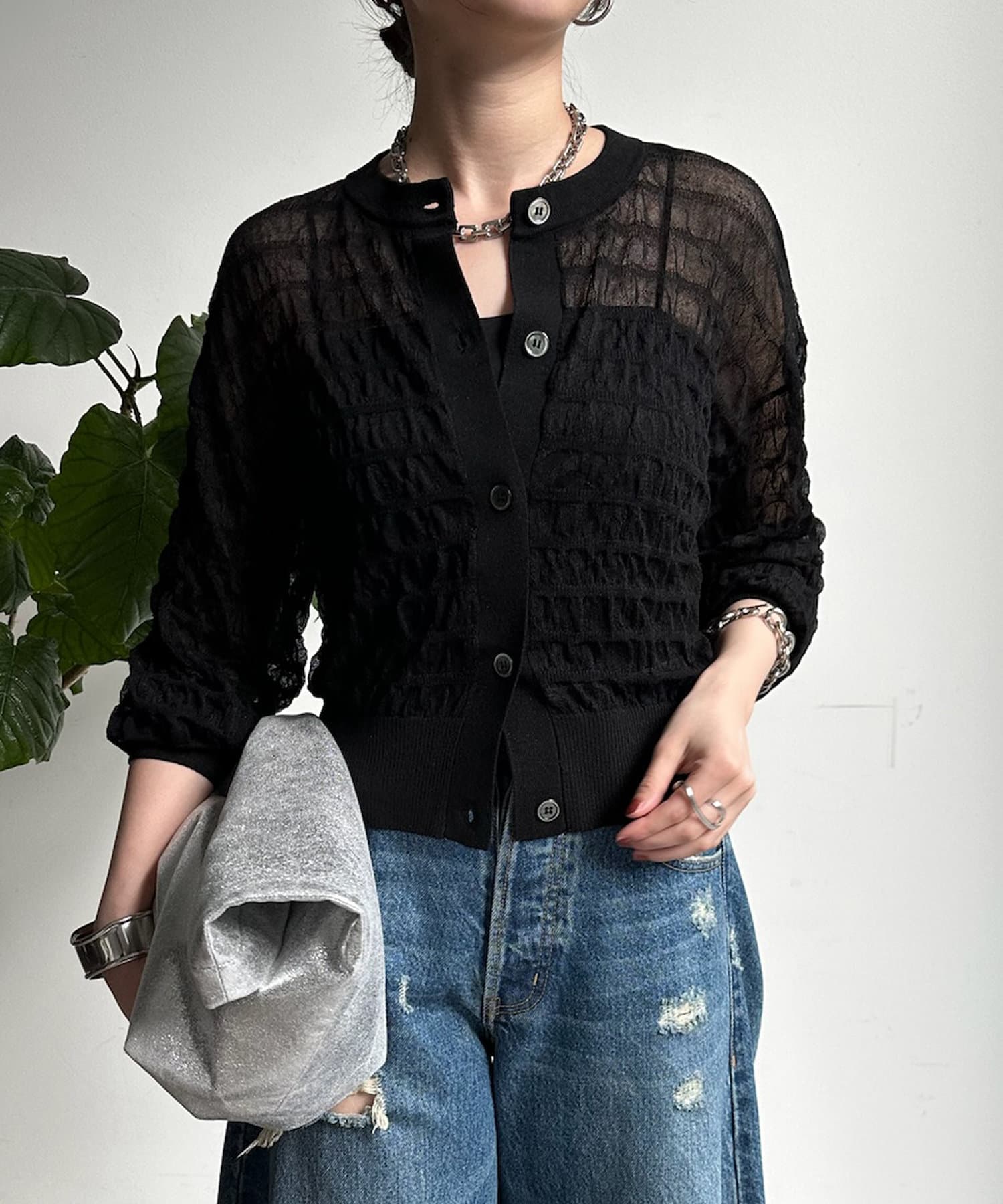 シャーリング加工を施した凹凸感が目を惹く、インパクトのある表情が特徴の素材を使用したアイテム!
