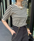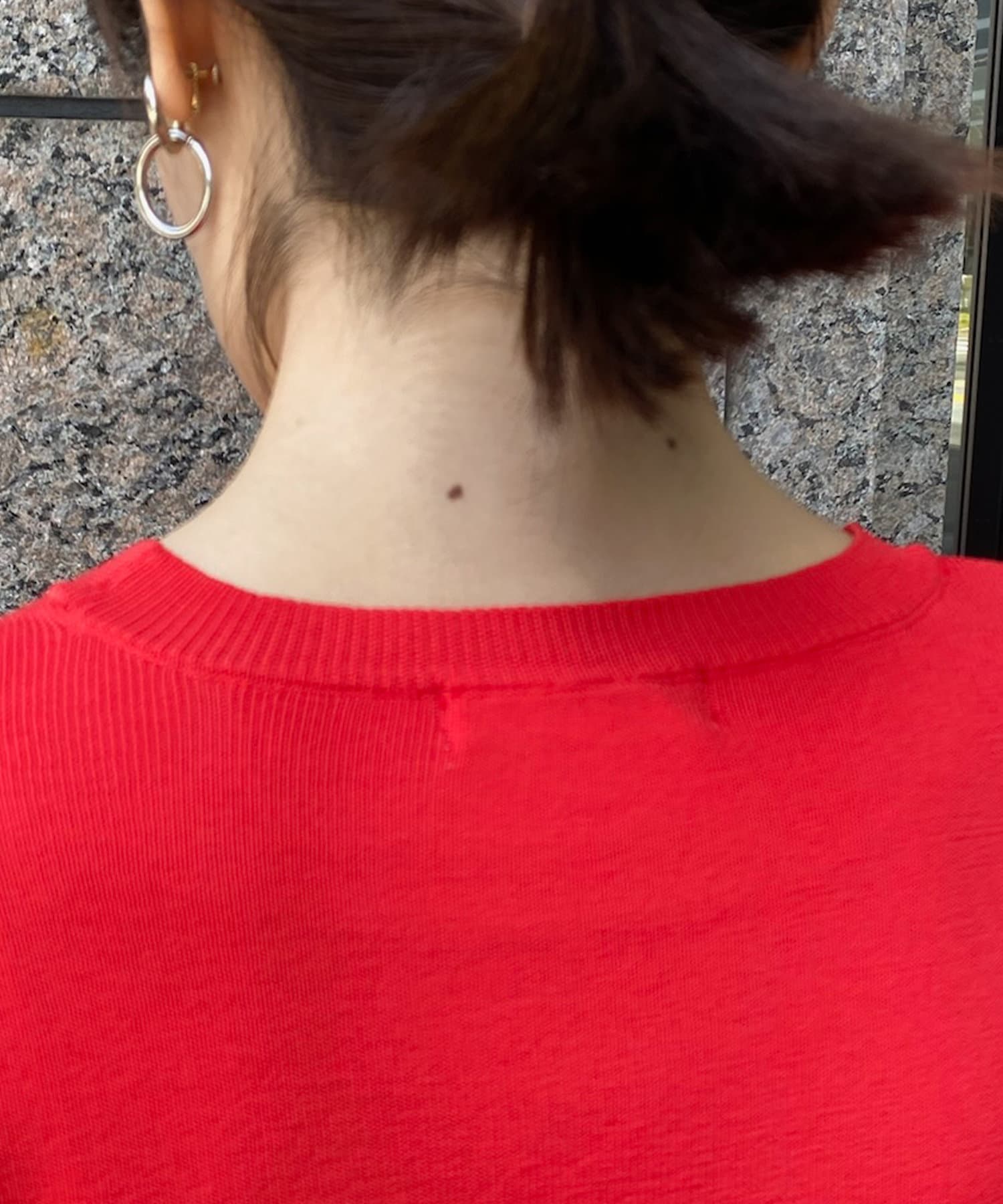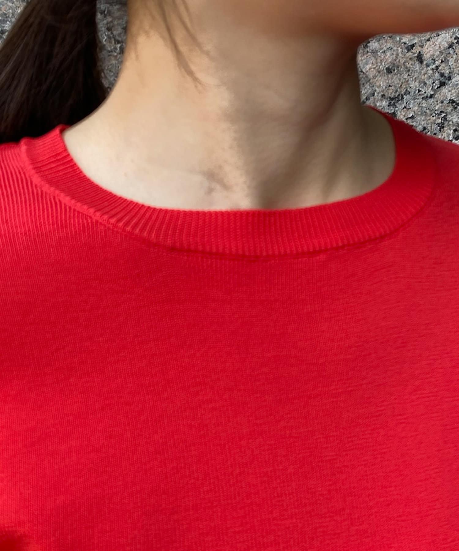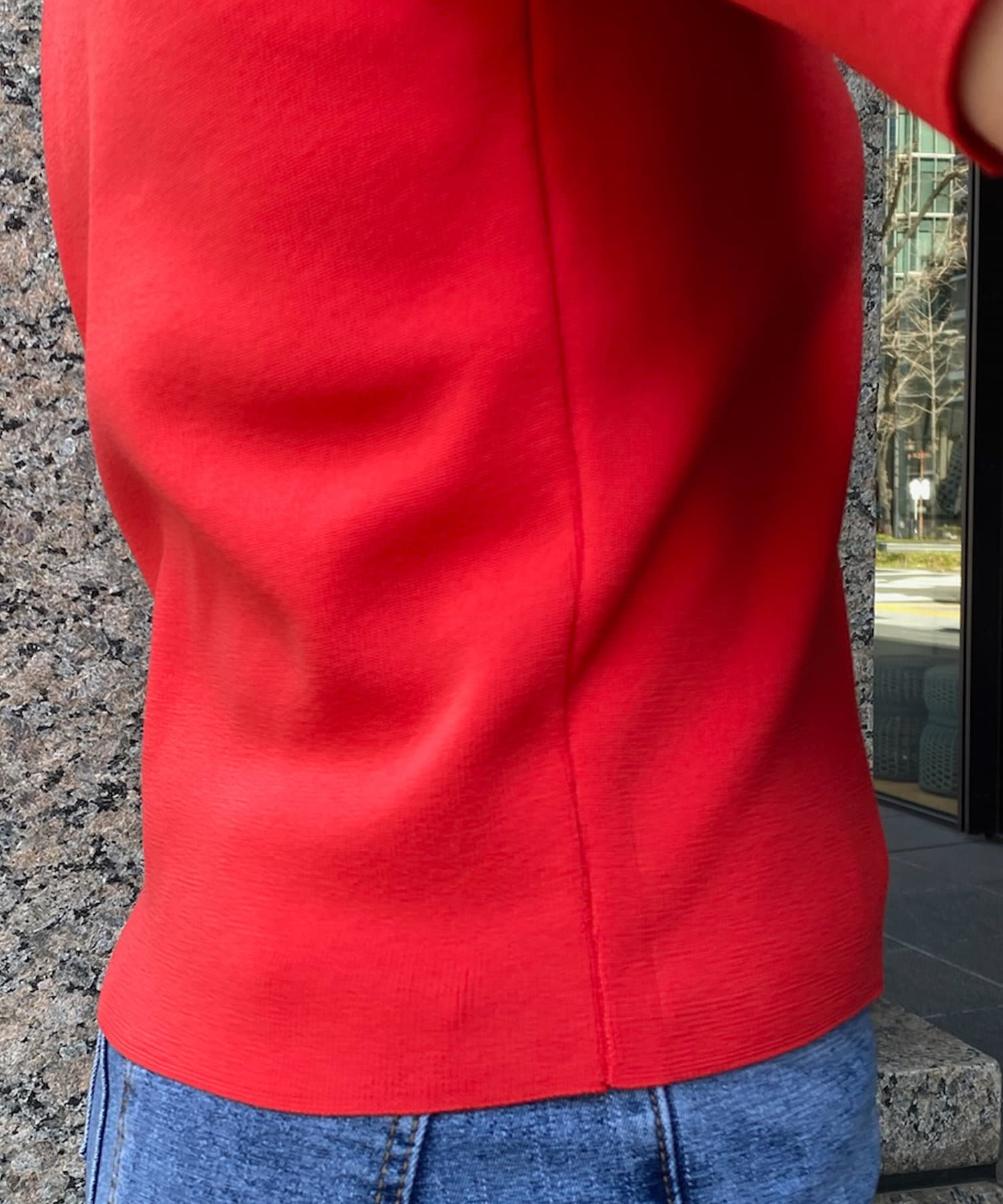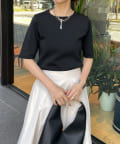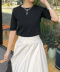 ポリエステル100%のニット素材で夏でも着られる1枚に。