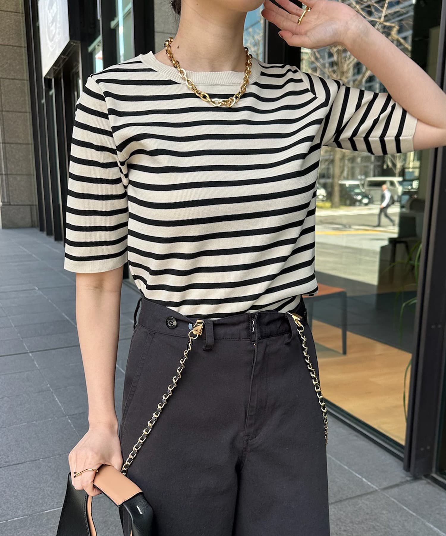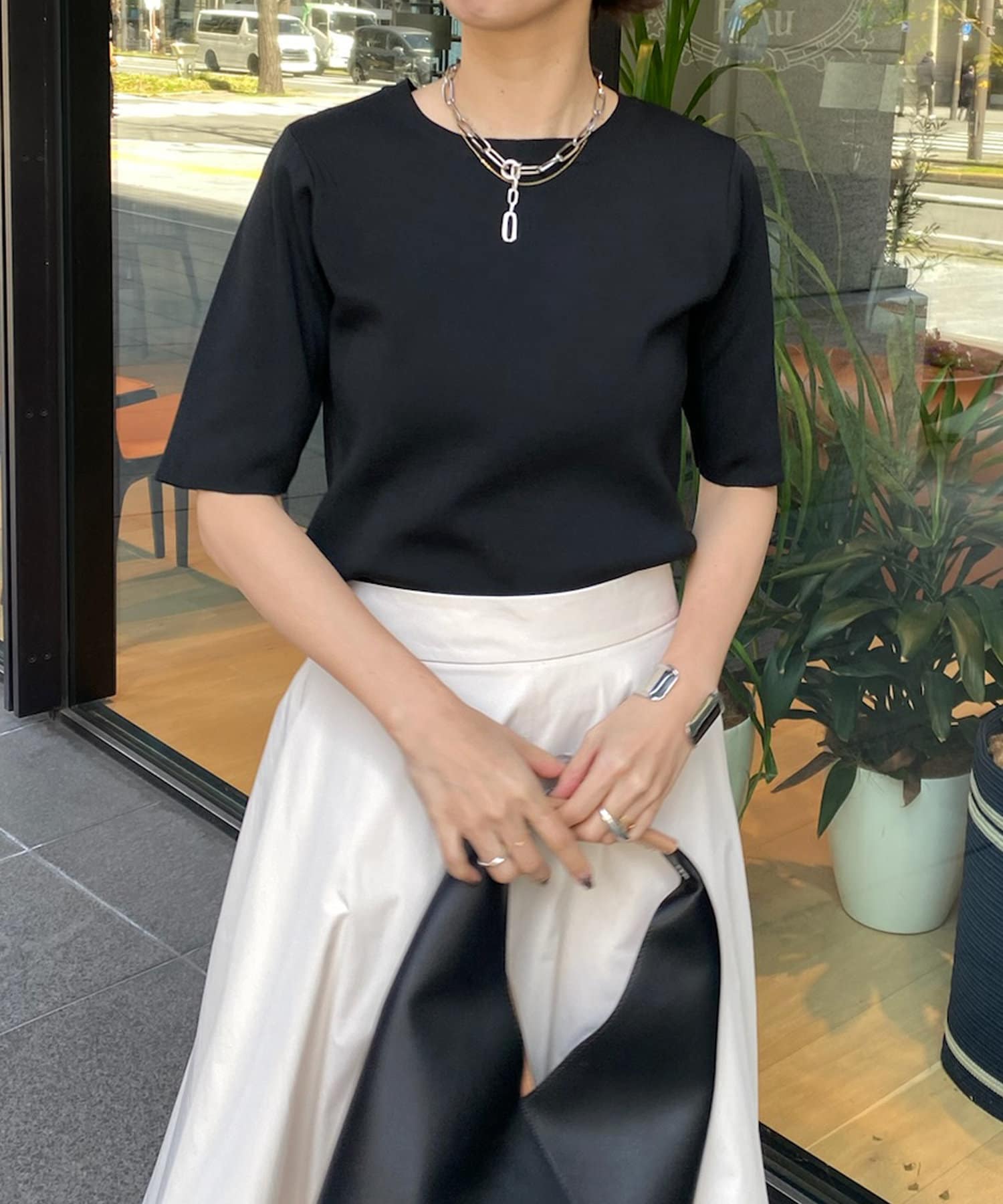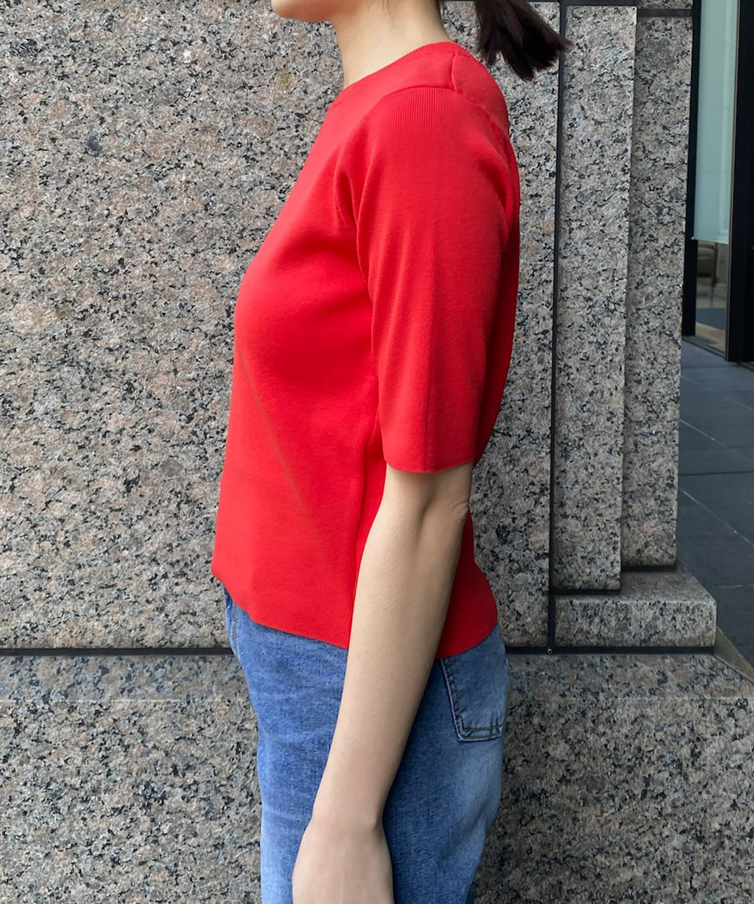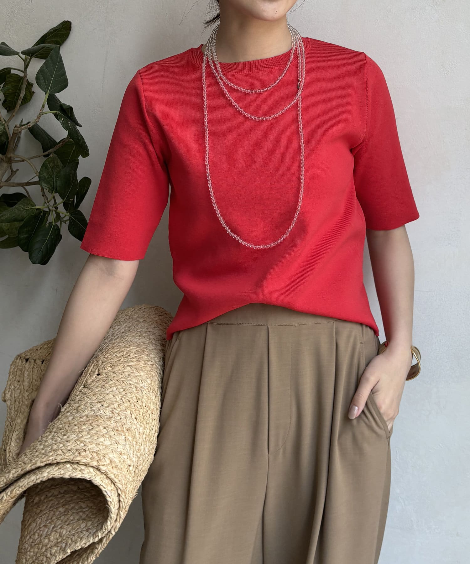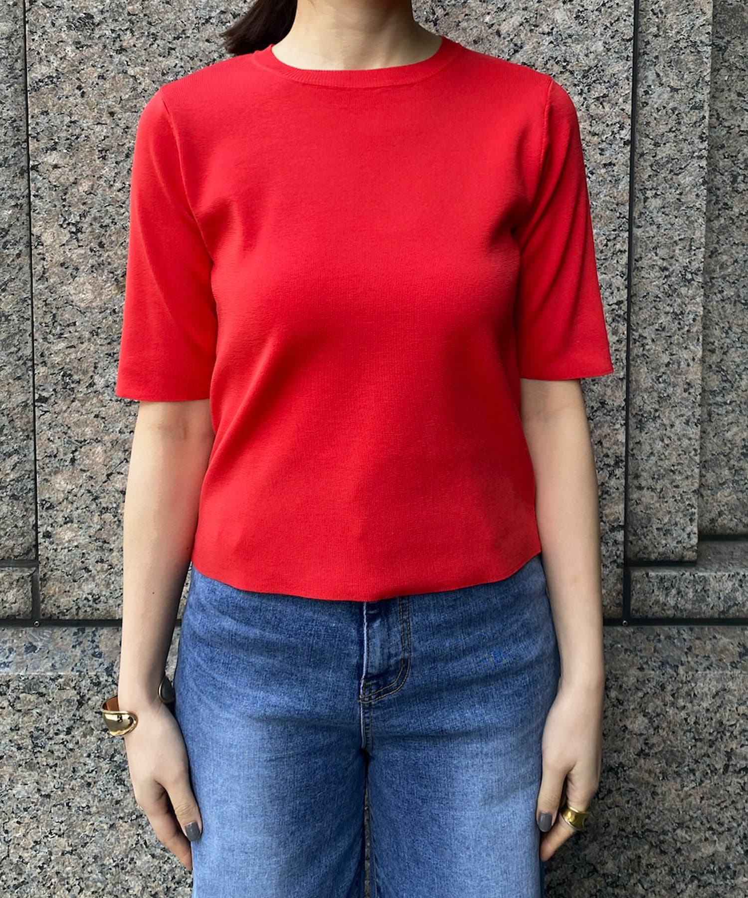 【Tシャツ感覚で着れる!】5分袖ニットTEE