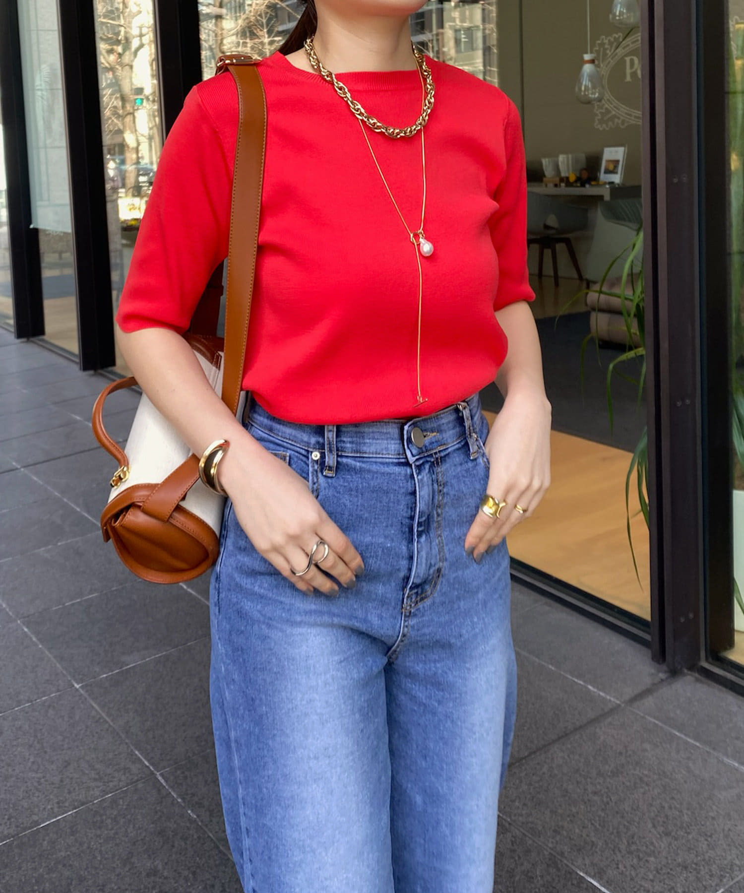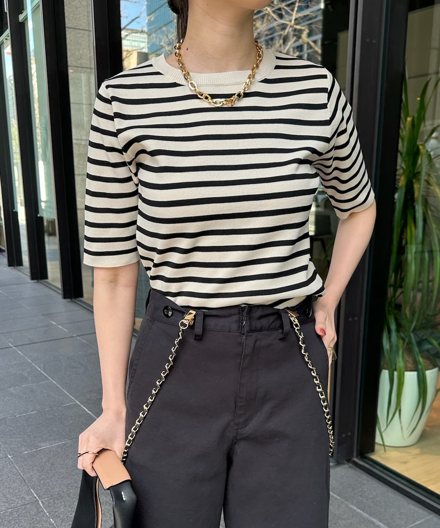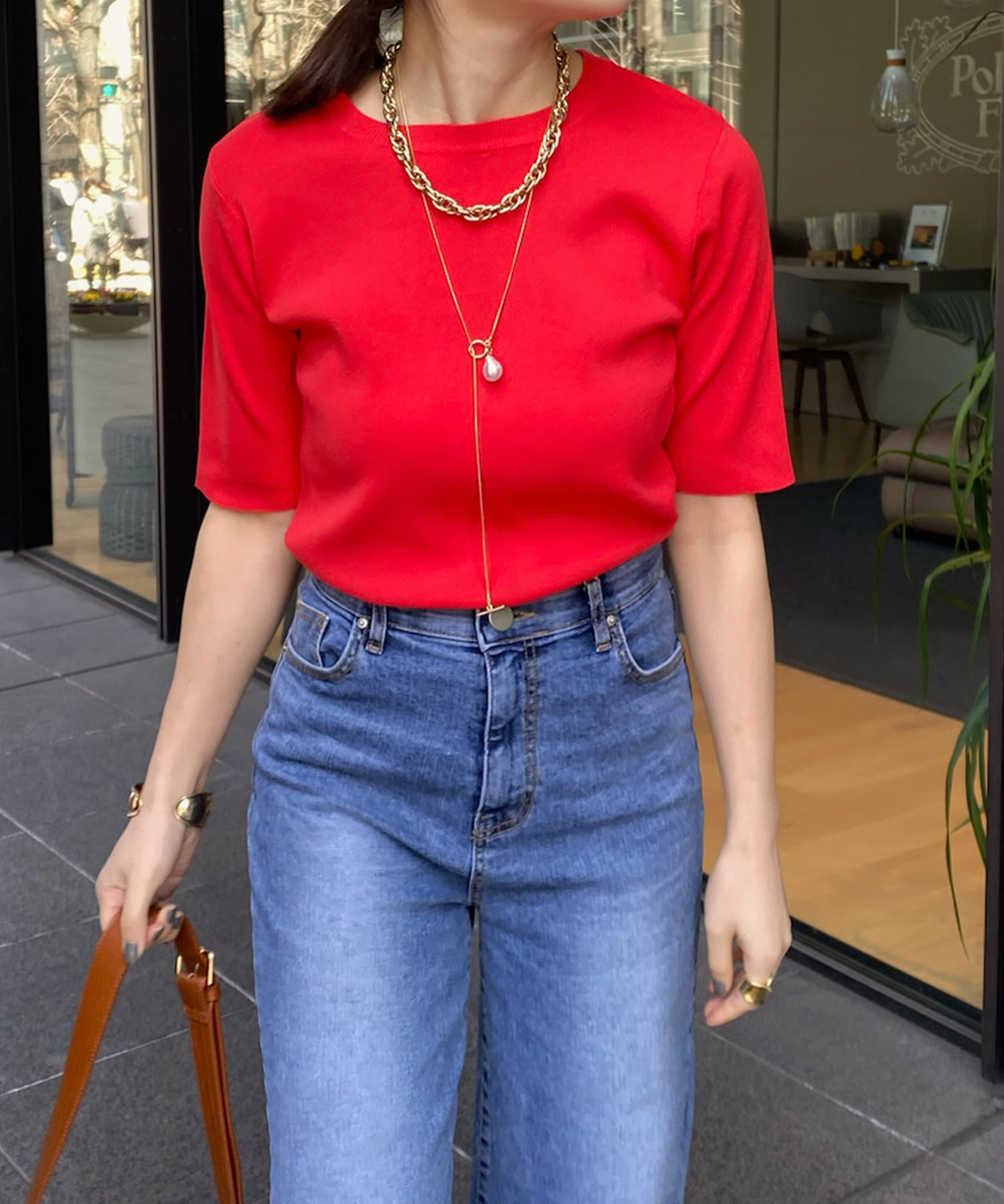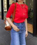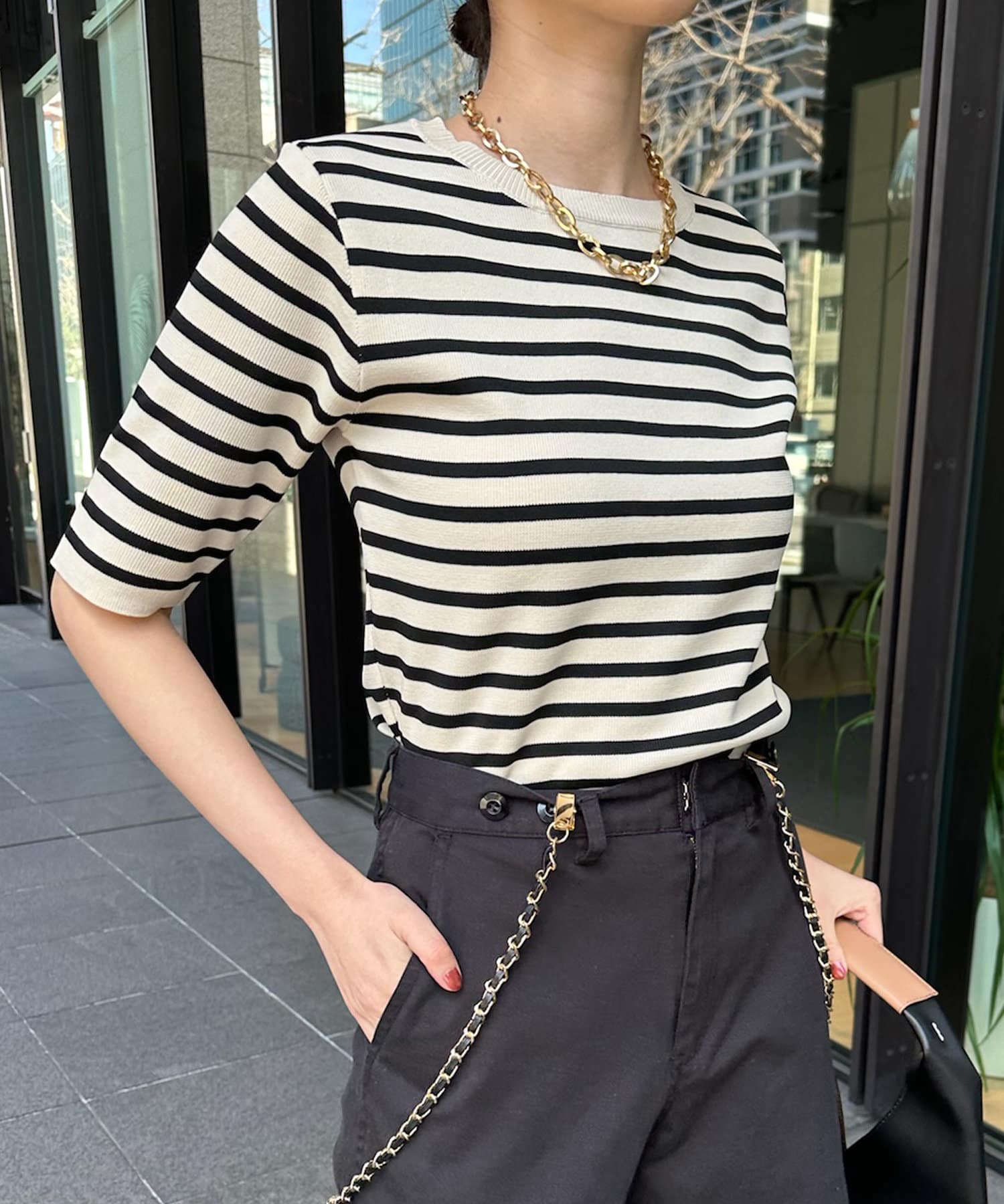 【Tシャツ感覚で着れる!】5分袖ニットTEE