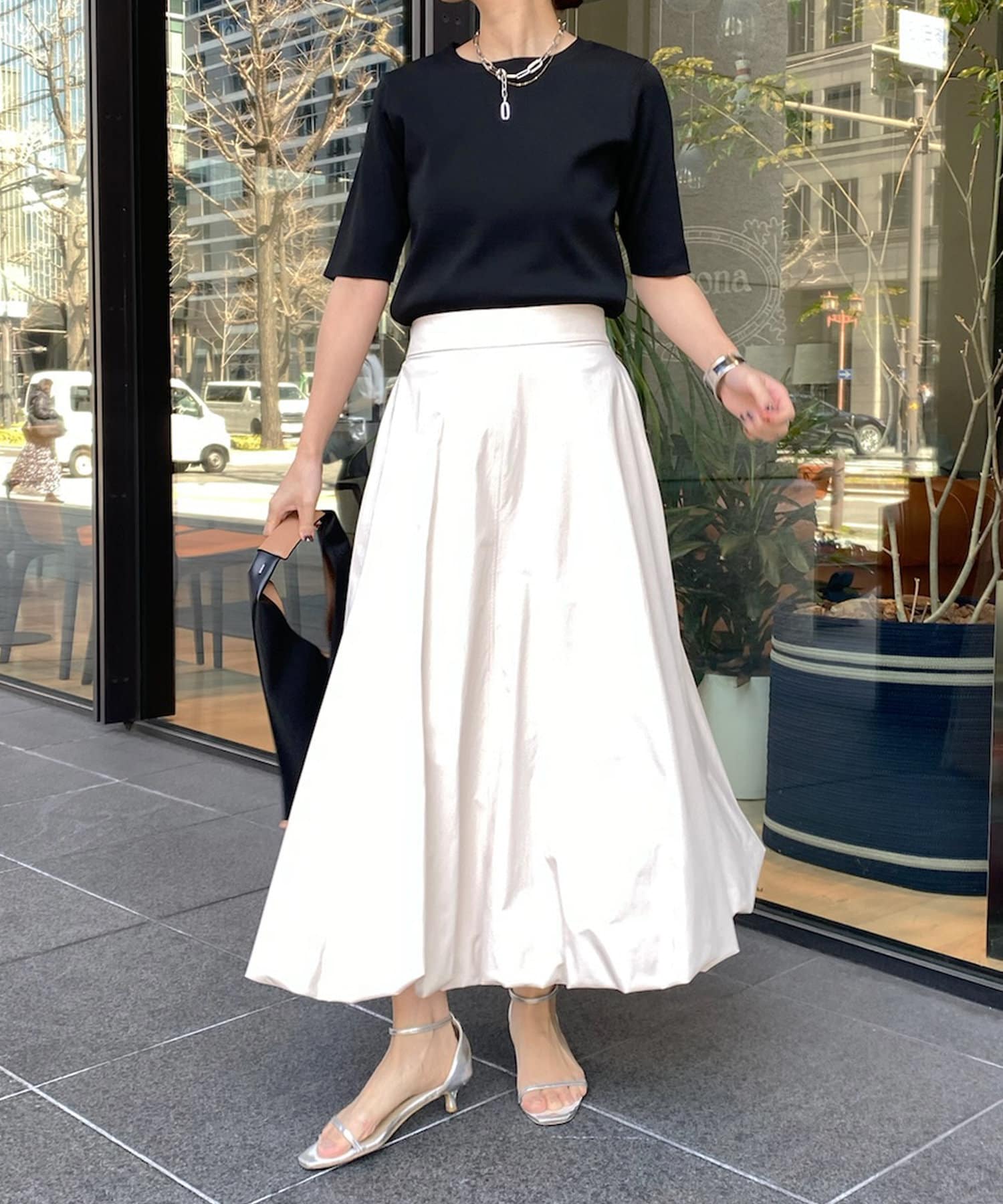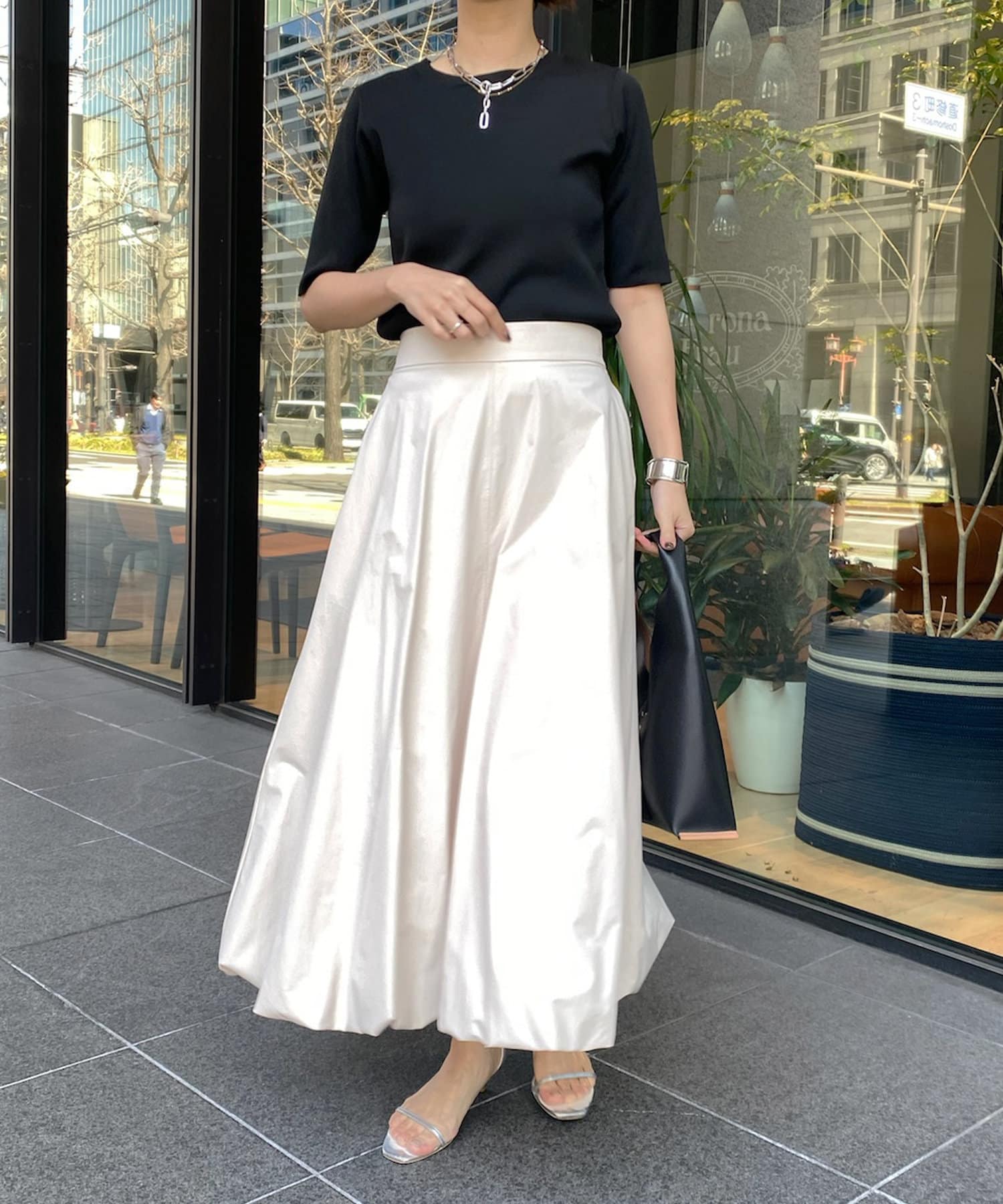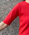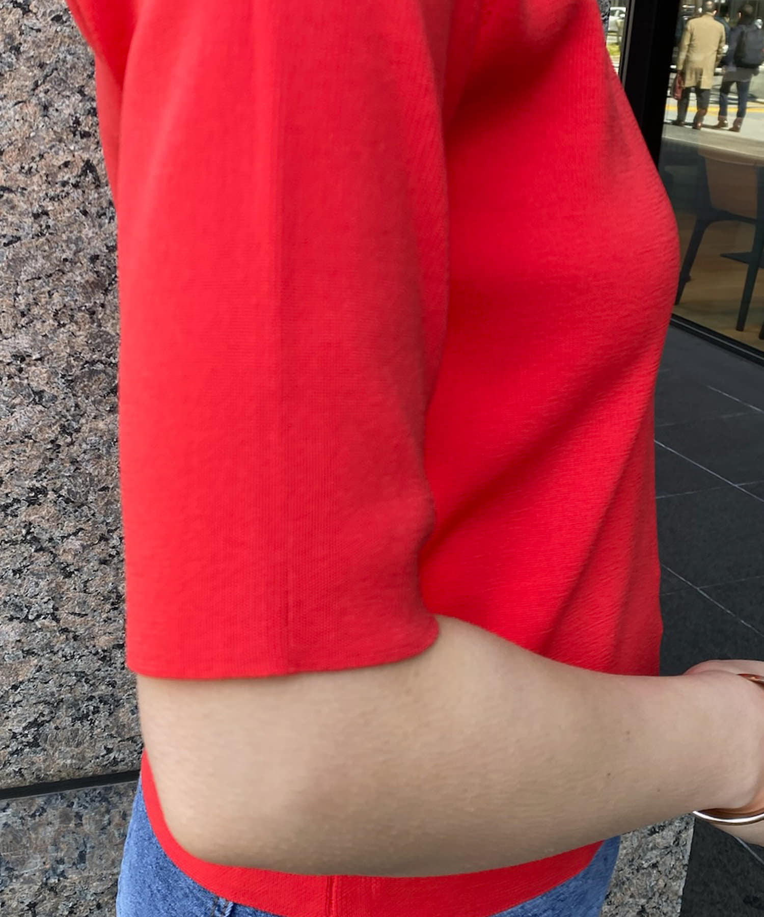 気になる二の腕をカバーし、華奢に見せてくれる5分袖のデザイン。