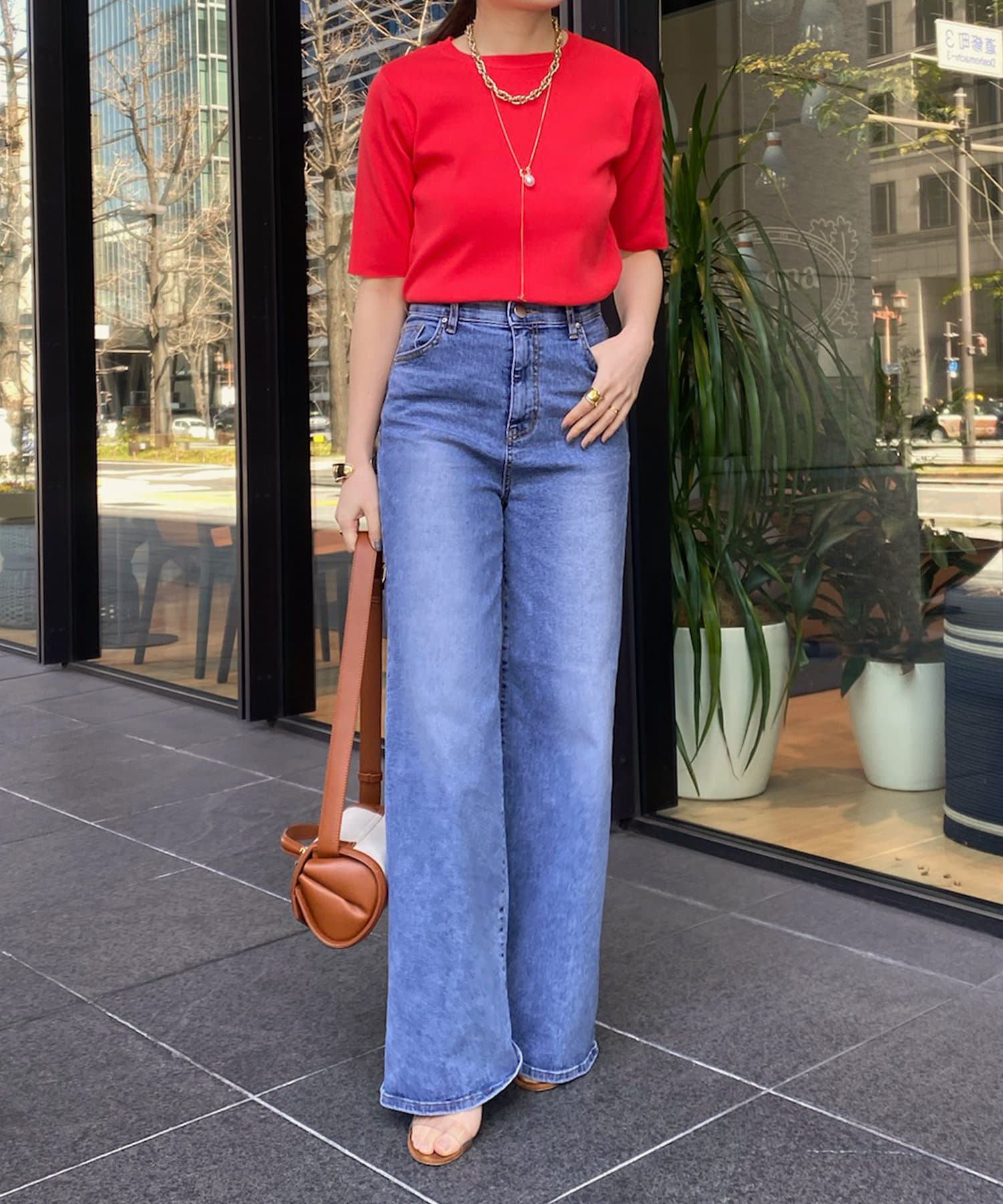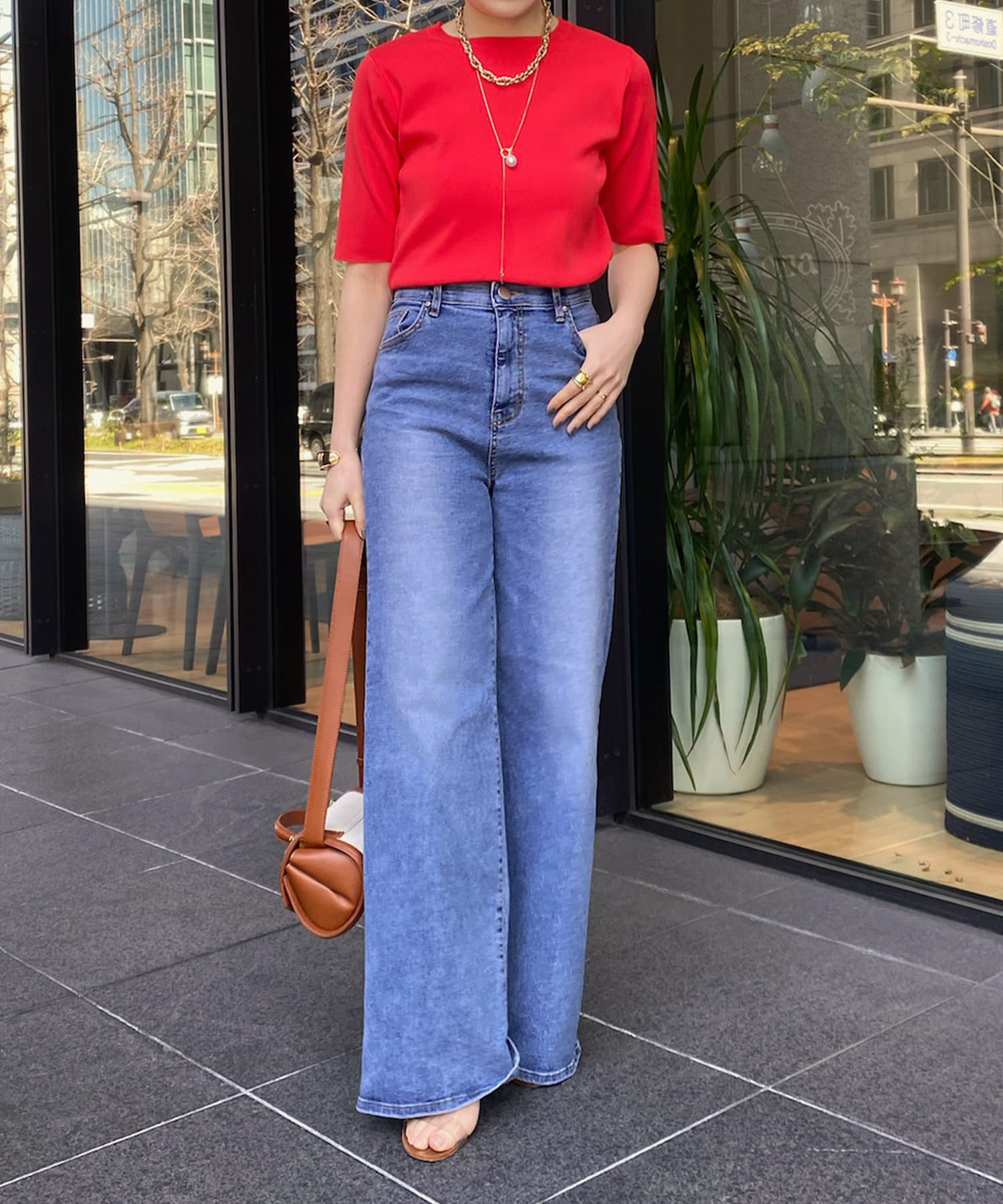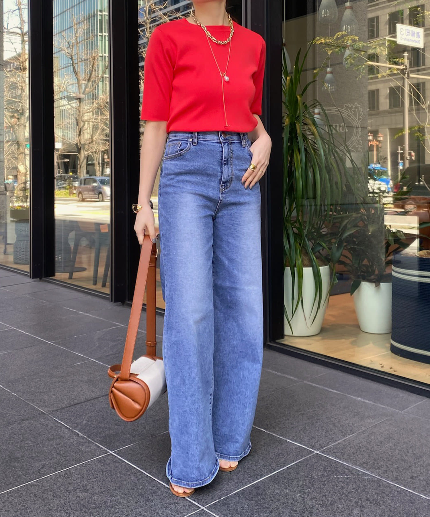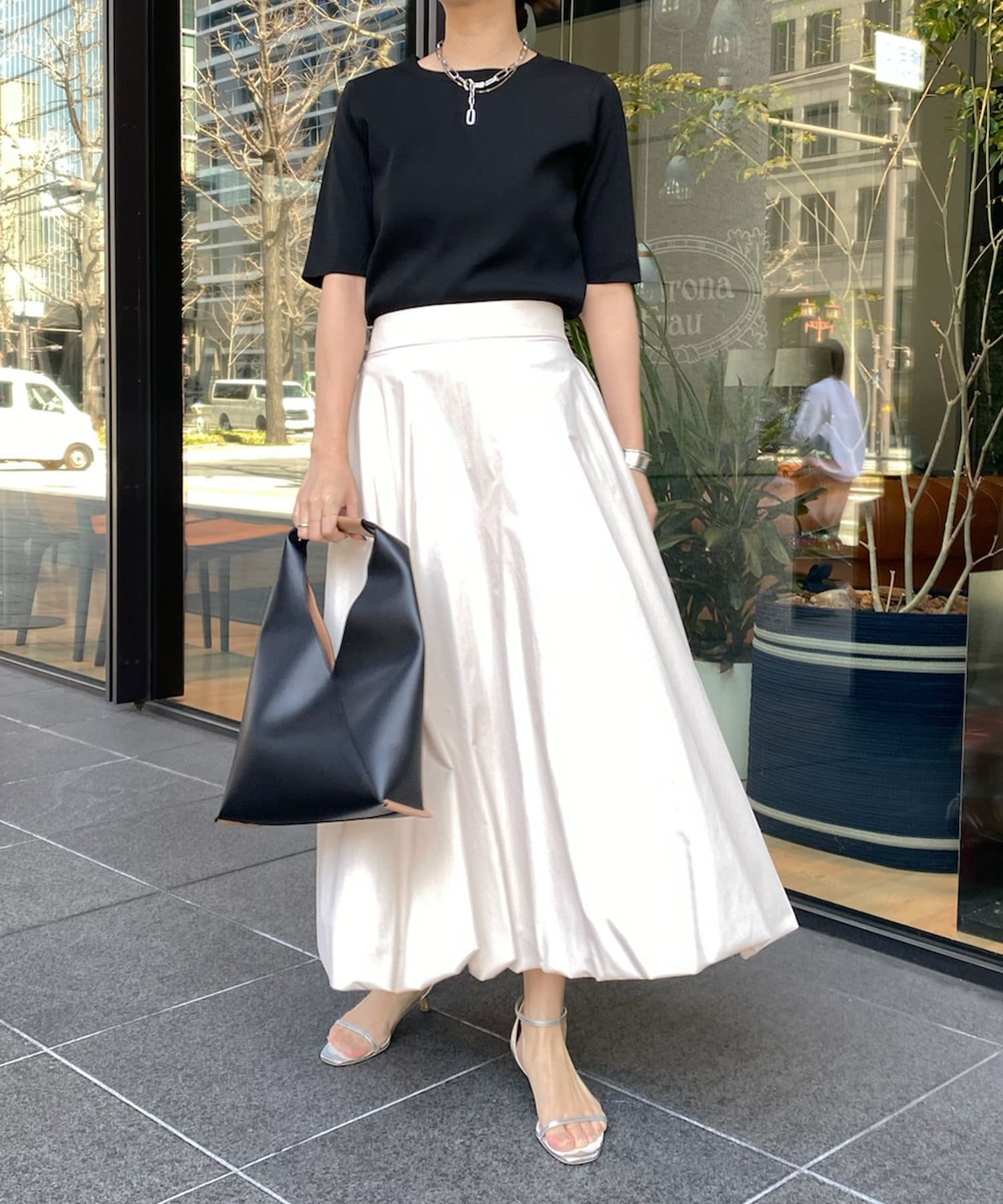 気になる二の腕をカバーし、華奢に見せてくれる5分袖のデザイン。
