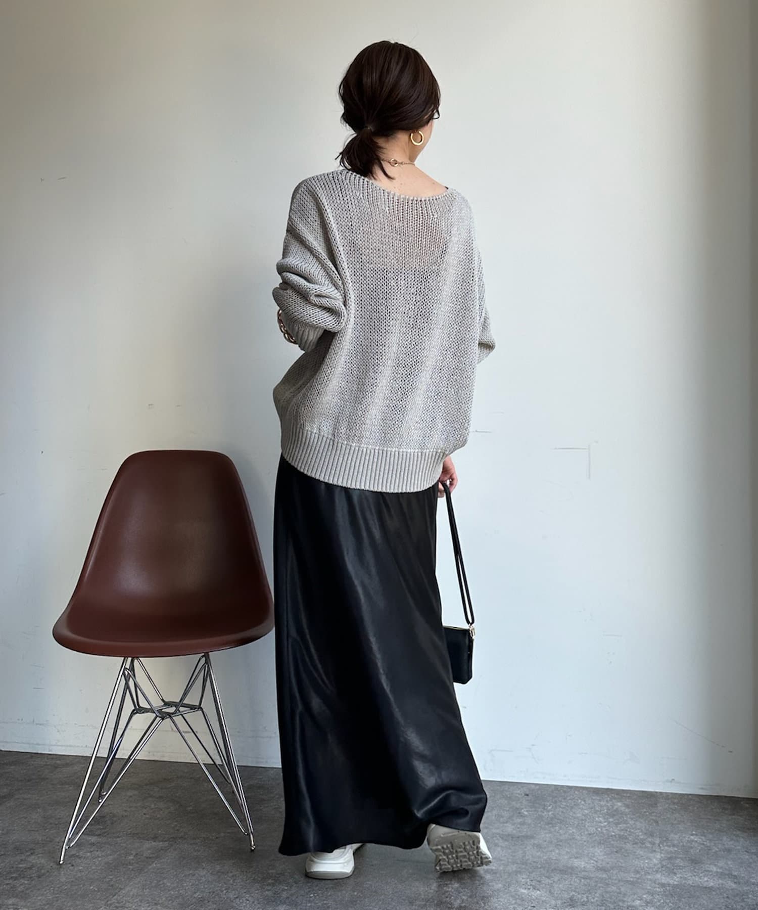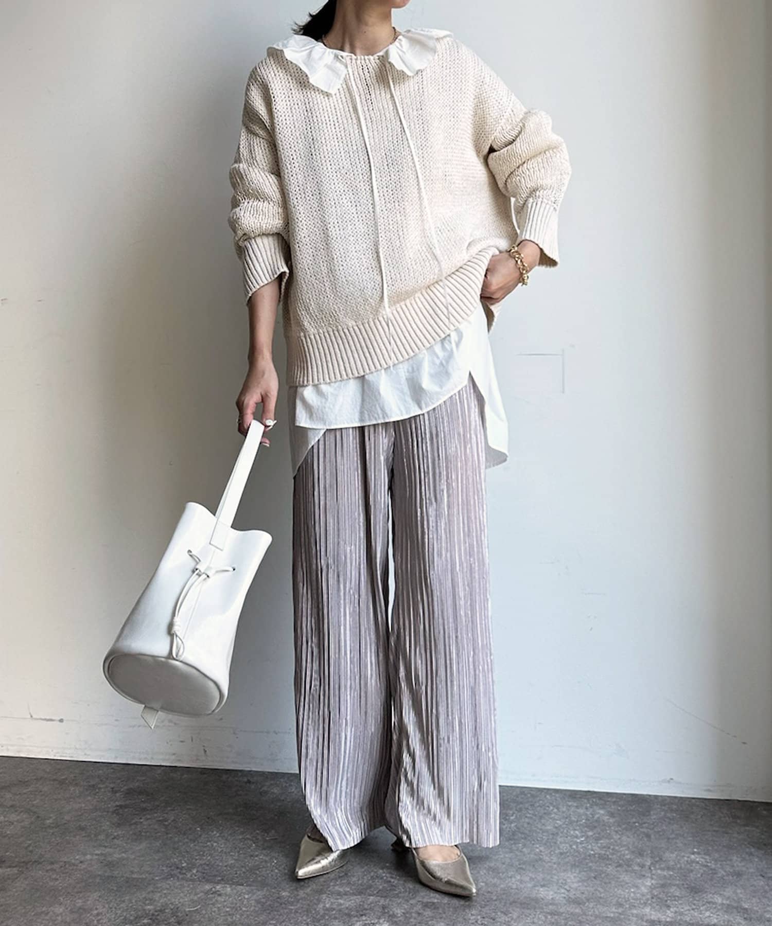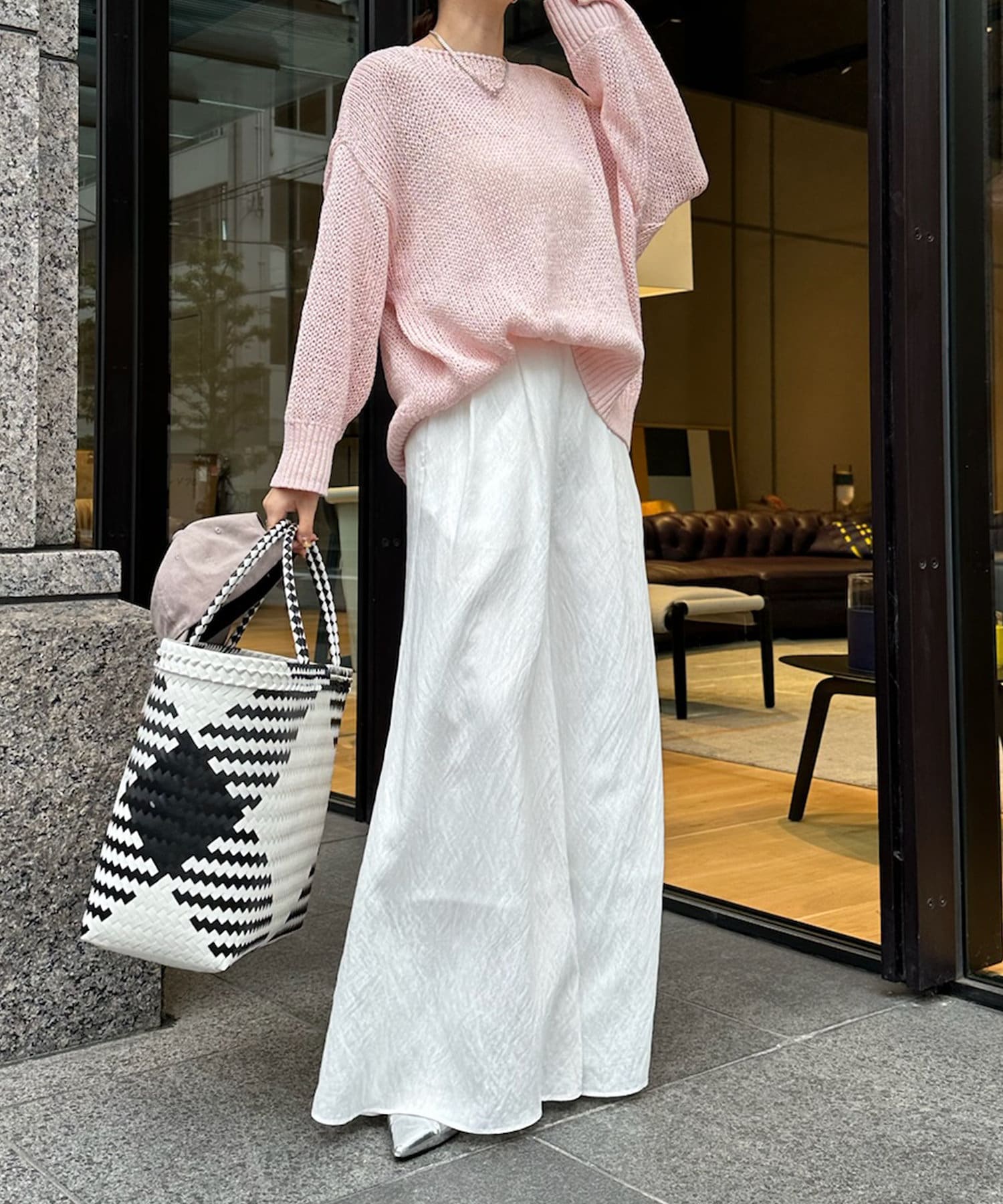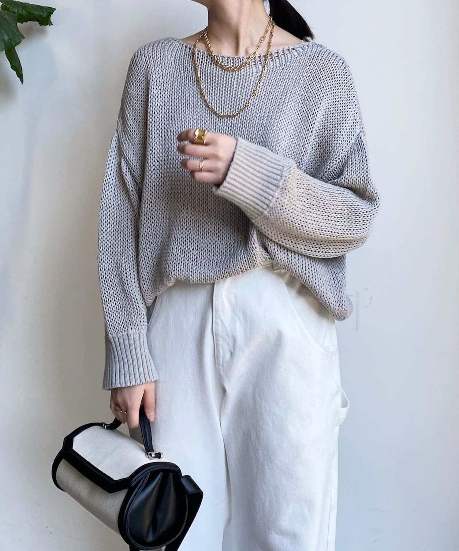 ローゲージでゆるっと、春らしい抜け感が出る1着。