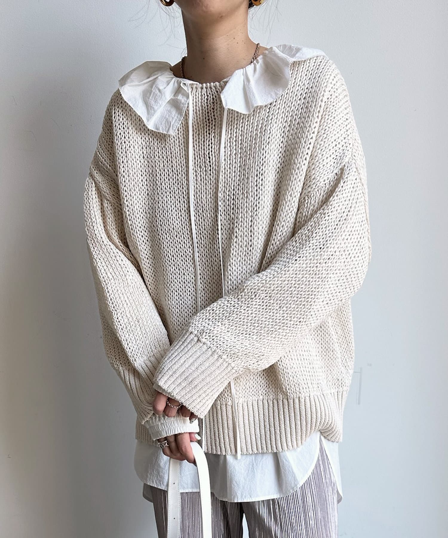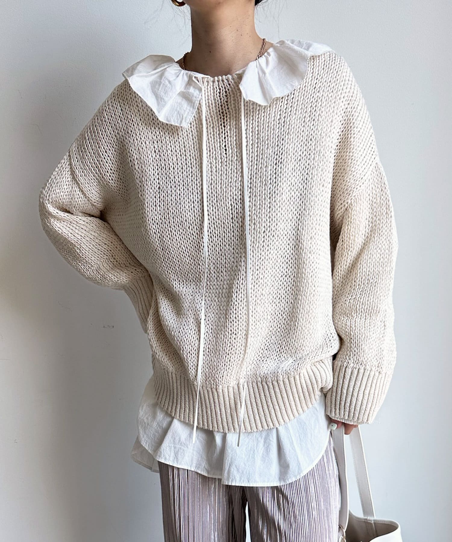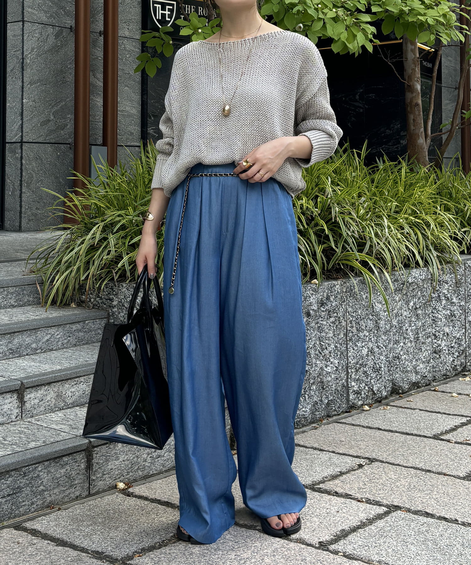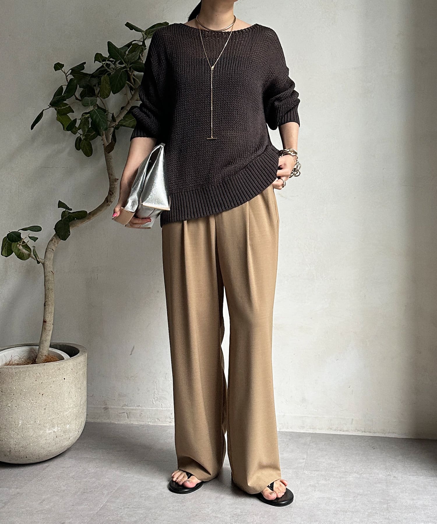 ローゲージでゆるっと、春らしい抜け感が出る1着。