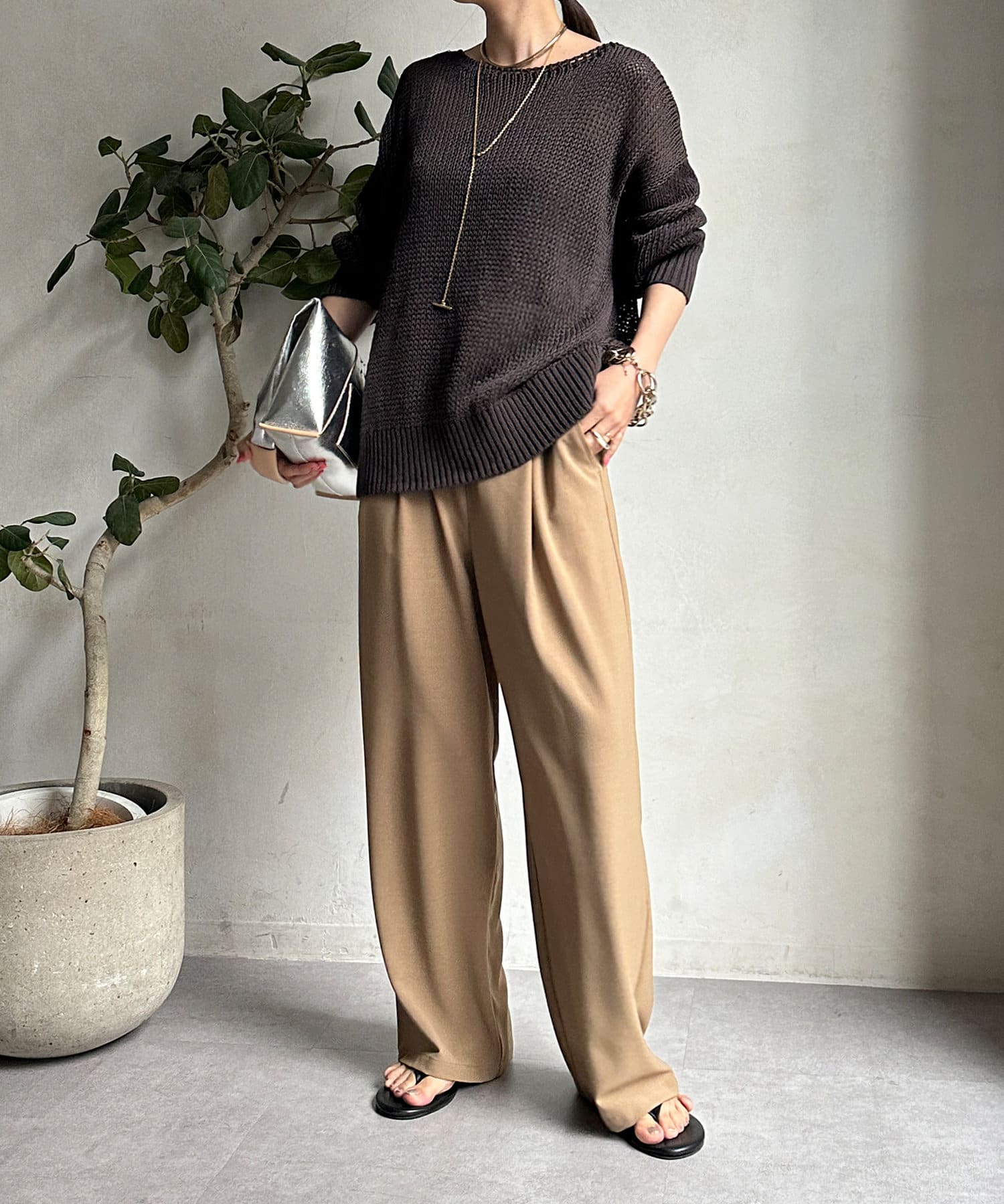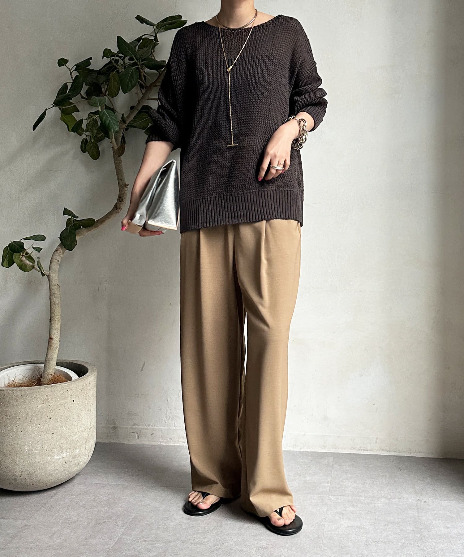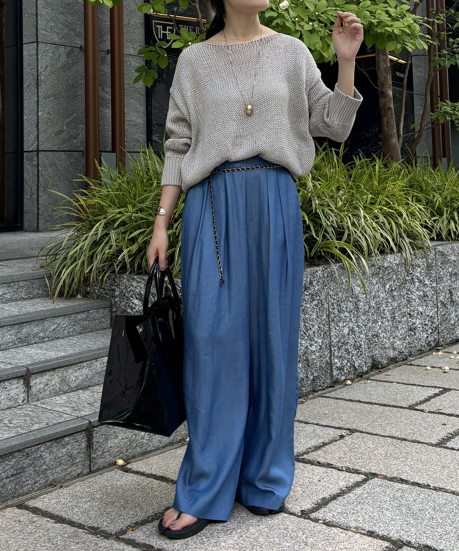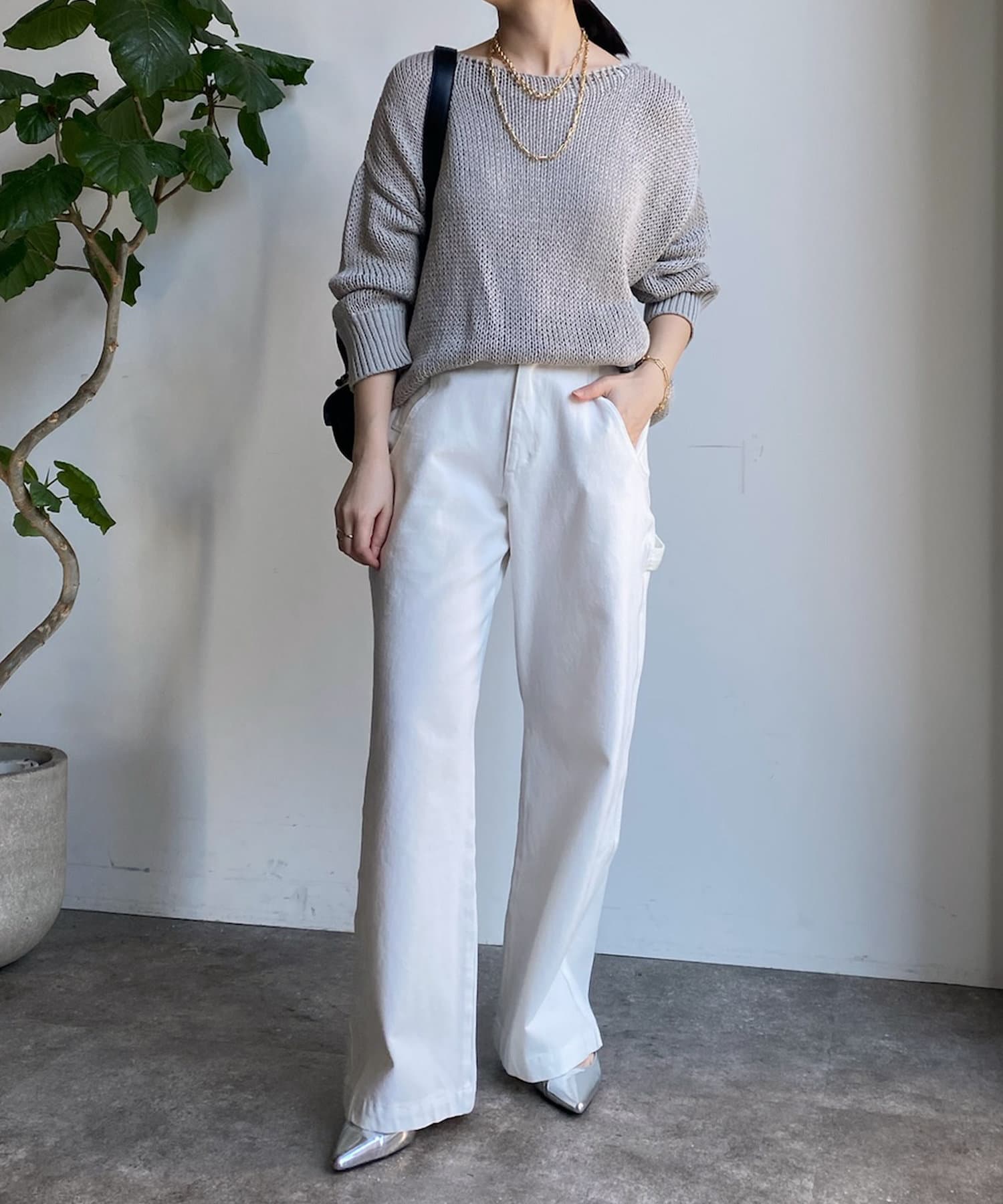ベーシックで使いやすいカラーのため、デニムやカラーのスカートまで幅広く合わせていただけますよ。