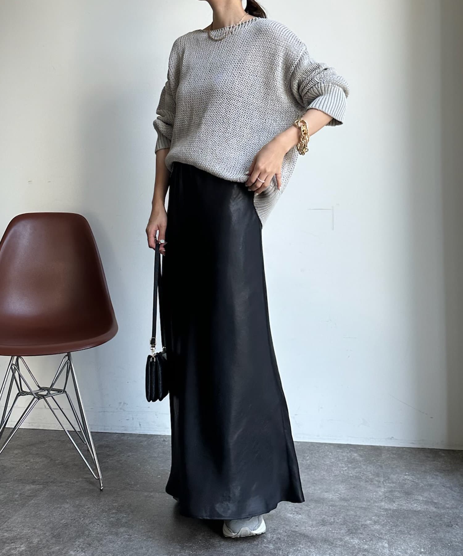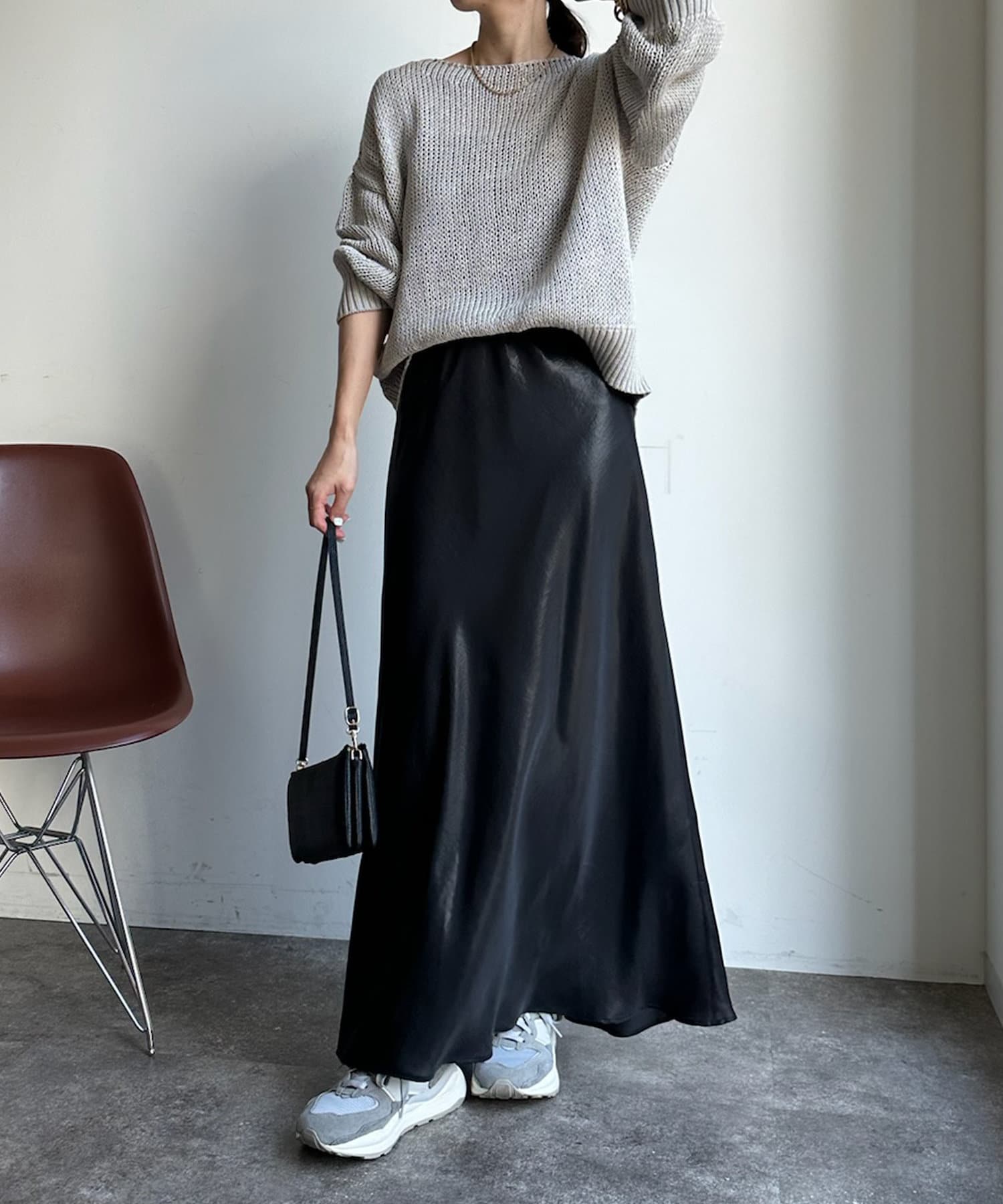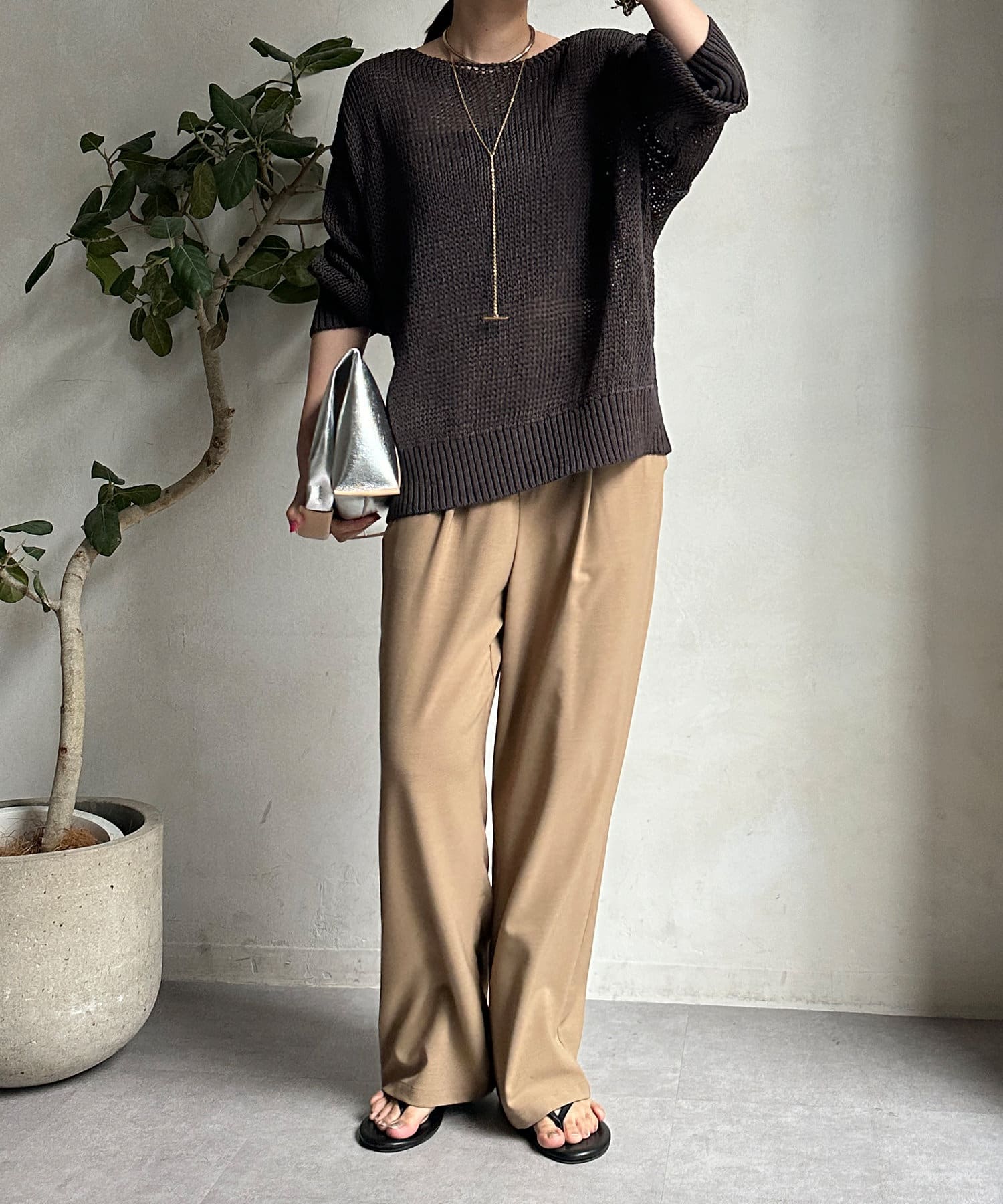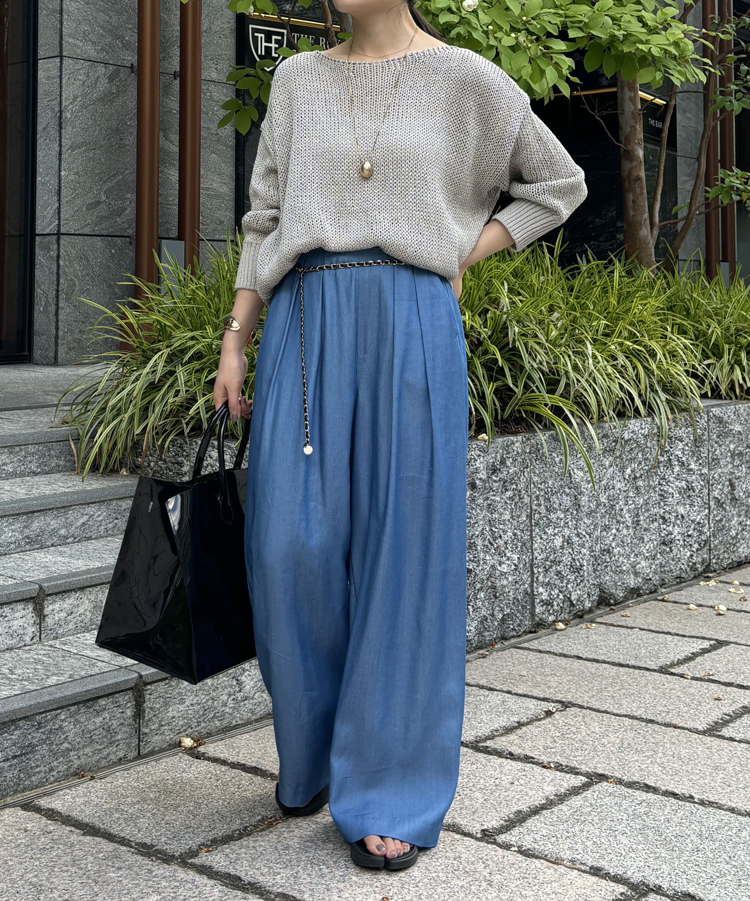 ベーシックで使いやすいカラーのため、デニムやカラーのスカートまで幅広く合わせていただけますよ。