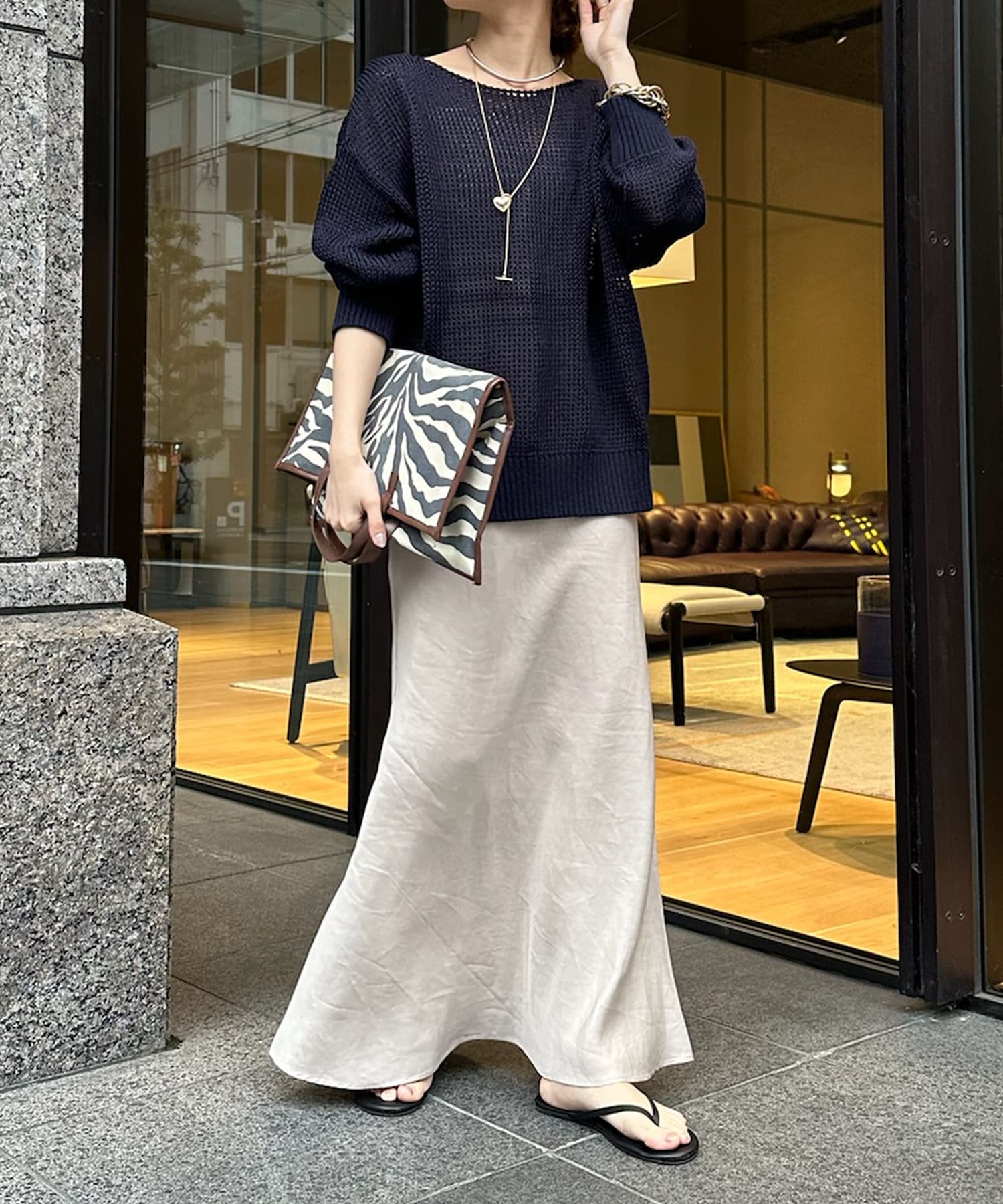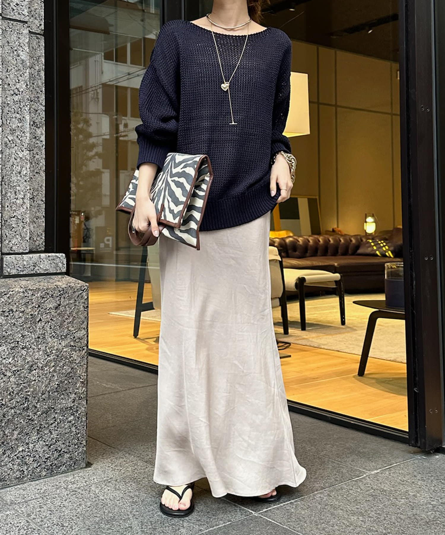 ネックラインは空き具合が絶妙で、お顔回りをすっきりと見せてくれます。