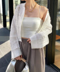 フロントボタンを開けて羽織りとして、または前を閉じてプルオーバー風な着こなしも素敵。