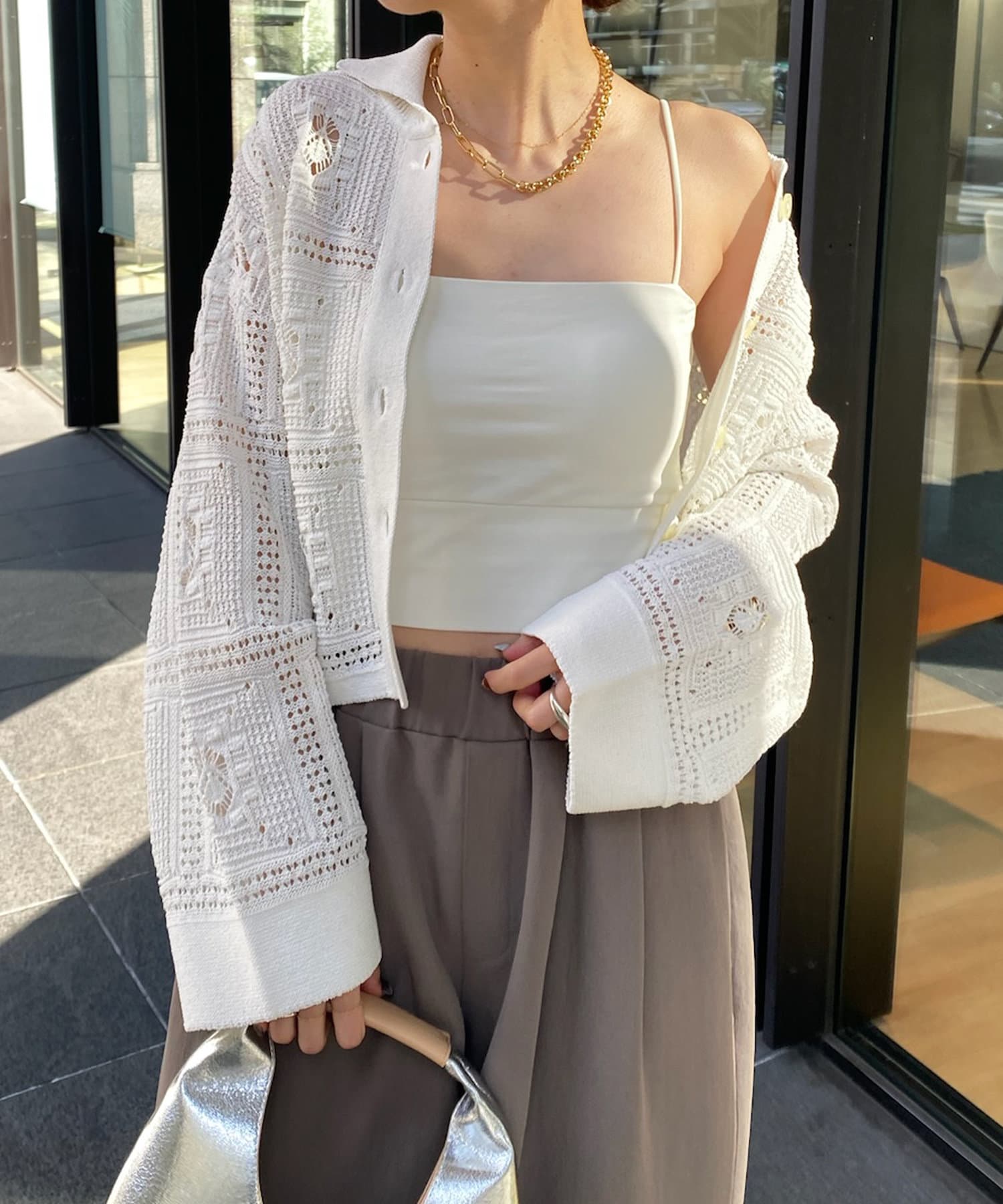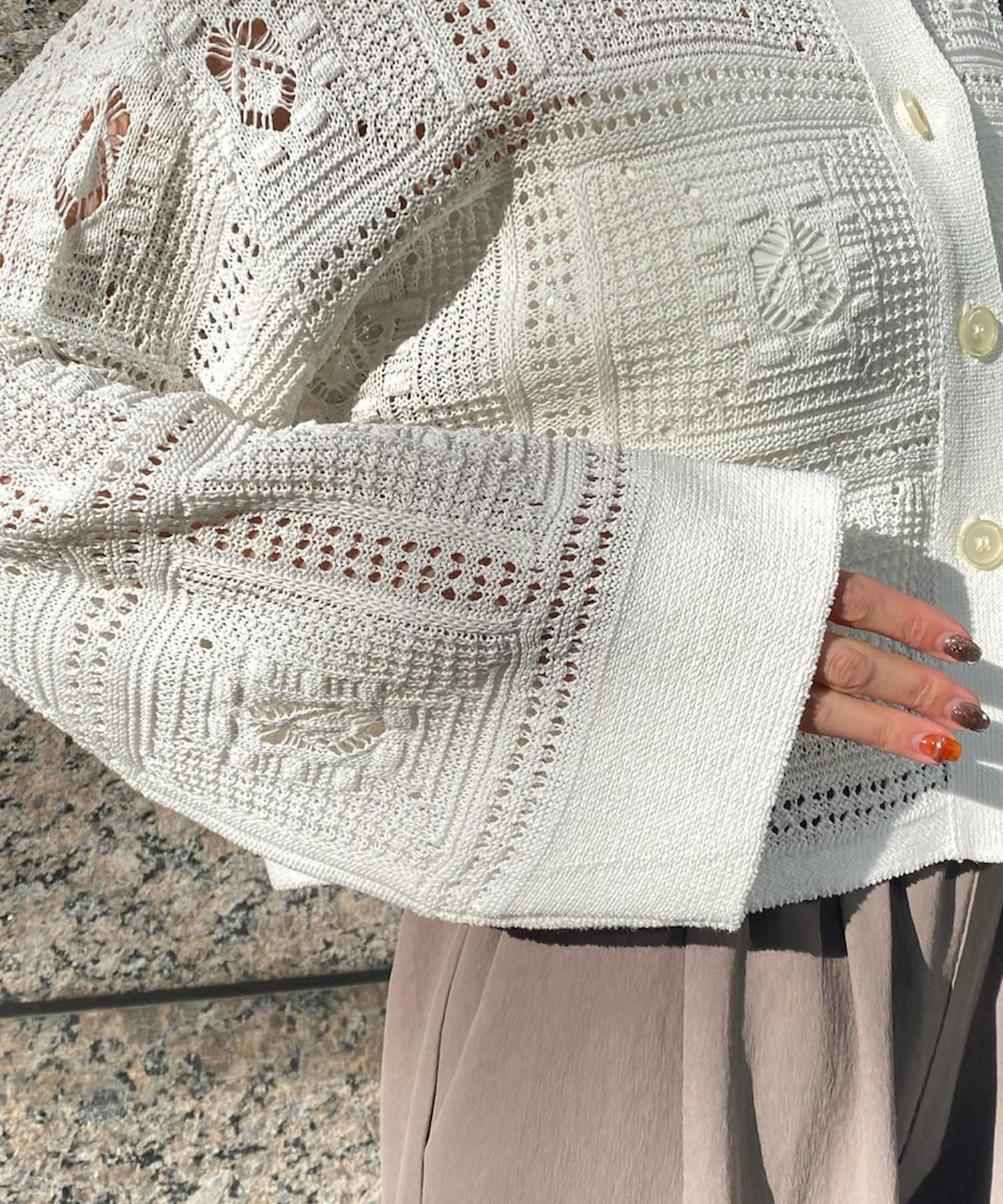 さっと着るだけで抜け感を演出できるカギ針デザイン