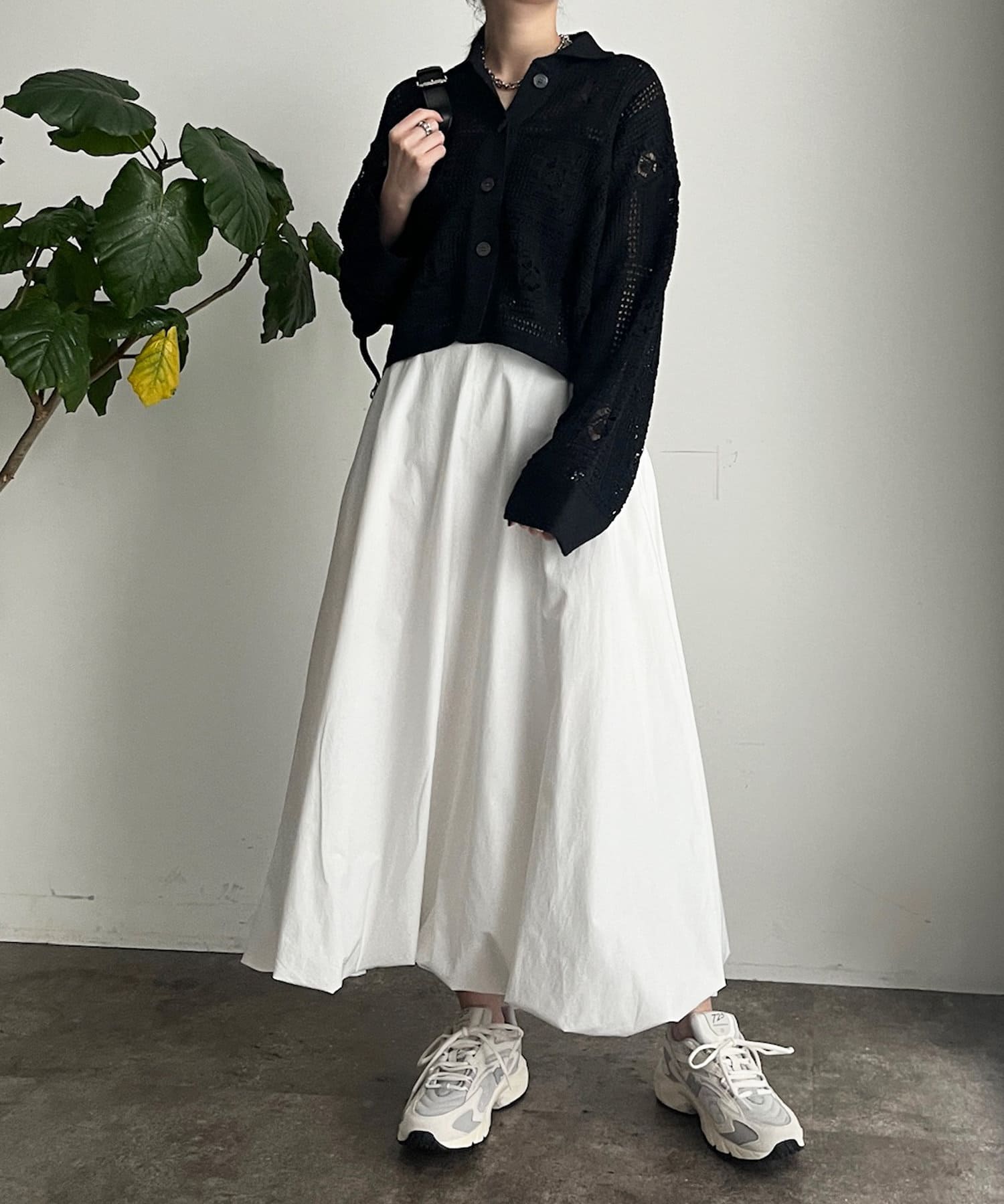 トレンドライクなカギ針のデザインでおしゃれに決まる1着。