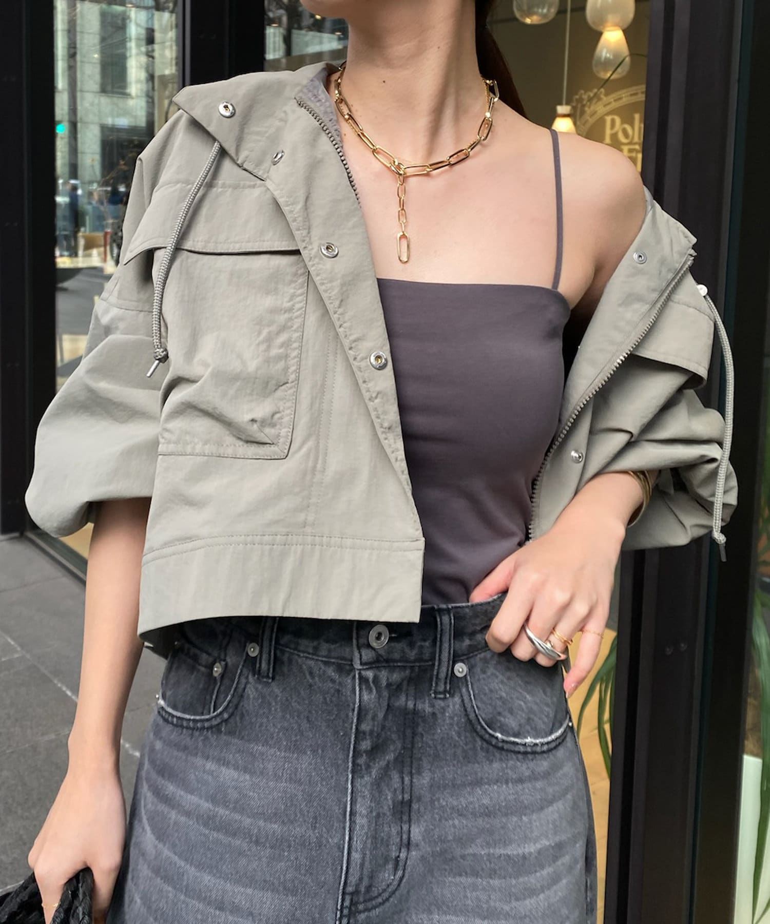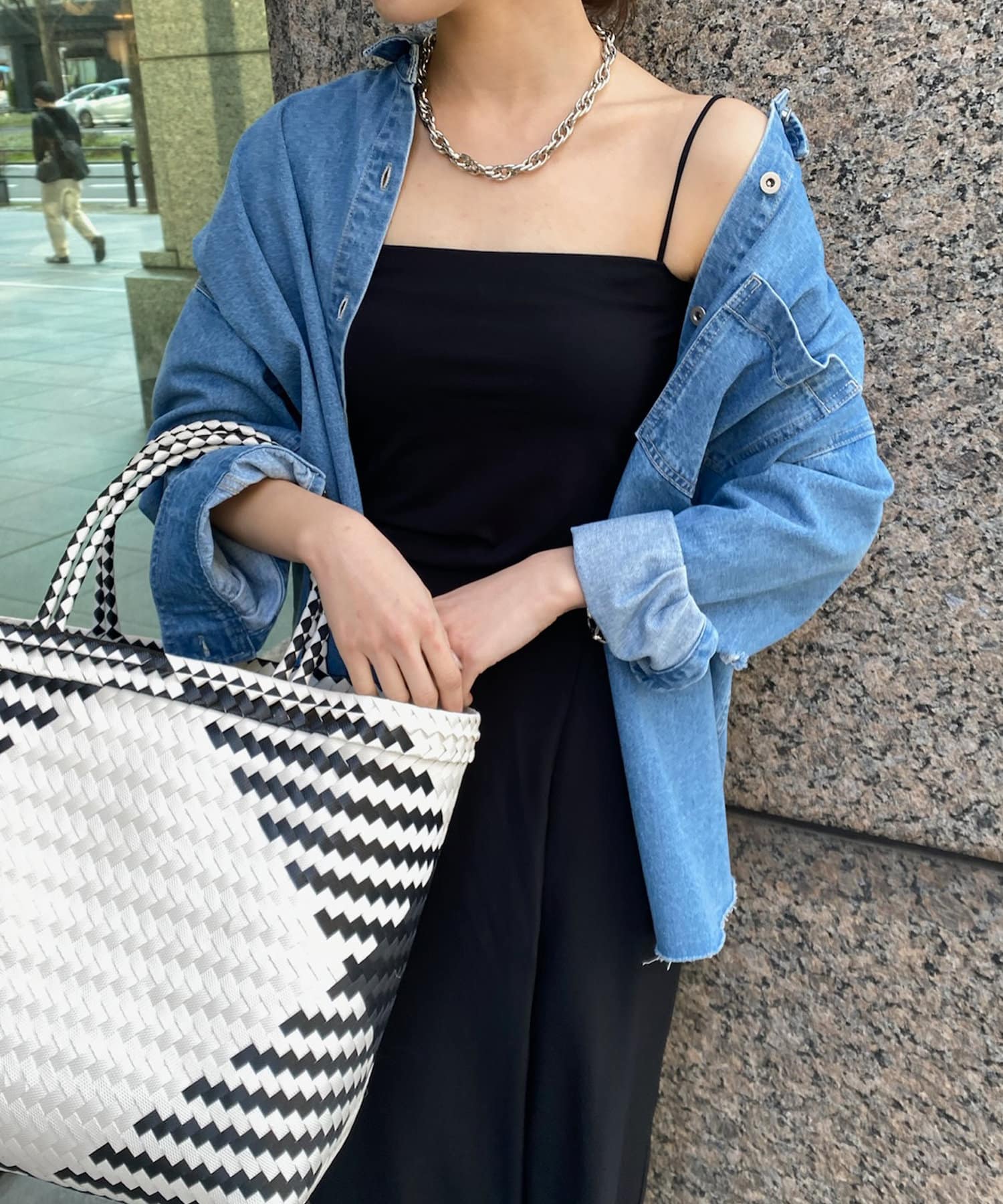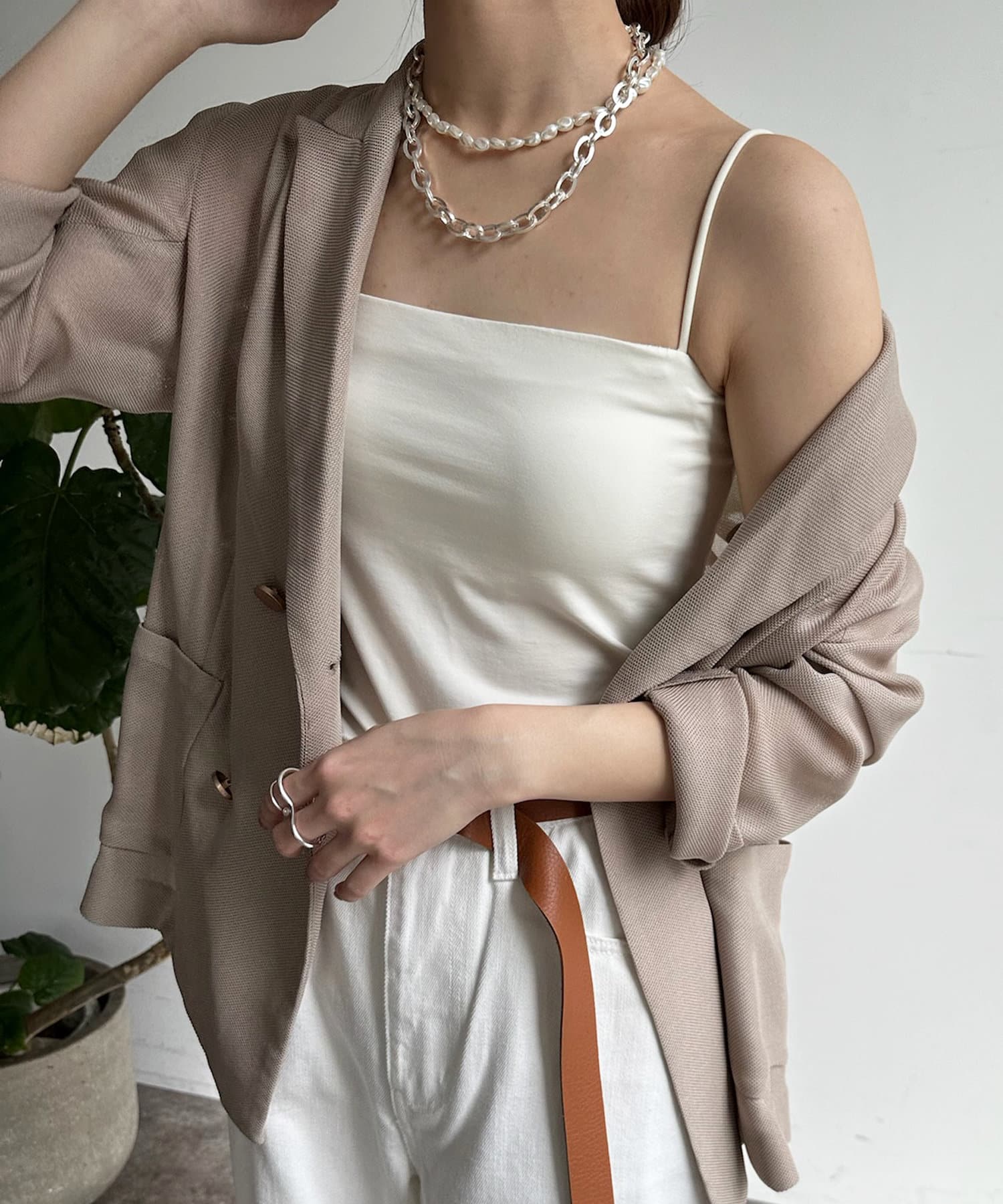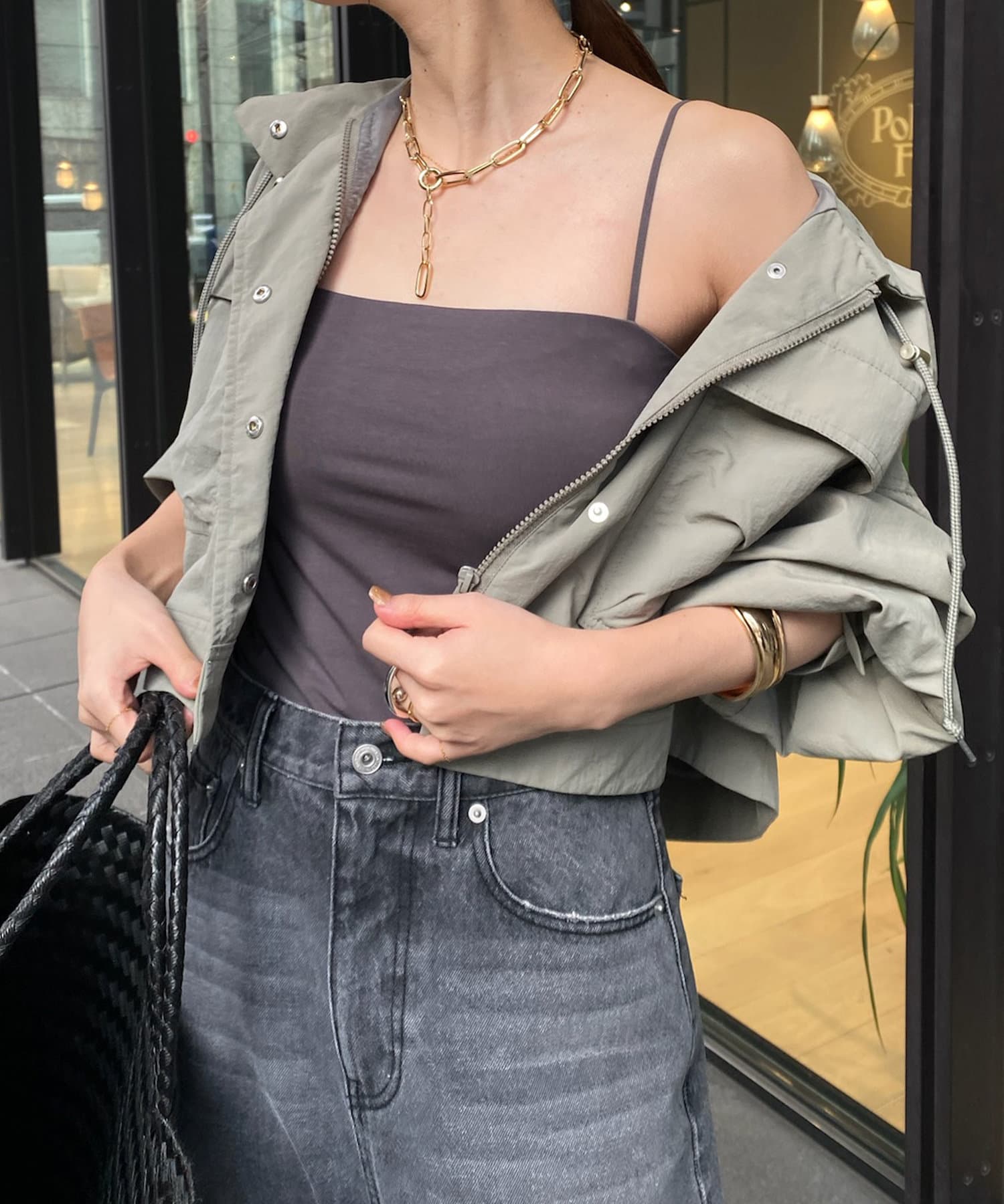 華奢な肩紐はおしゃれ感たっぷりの印象に。