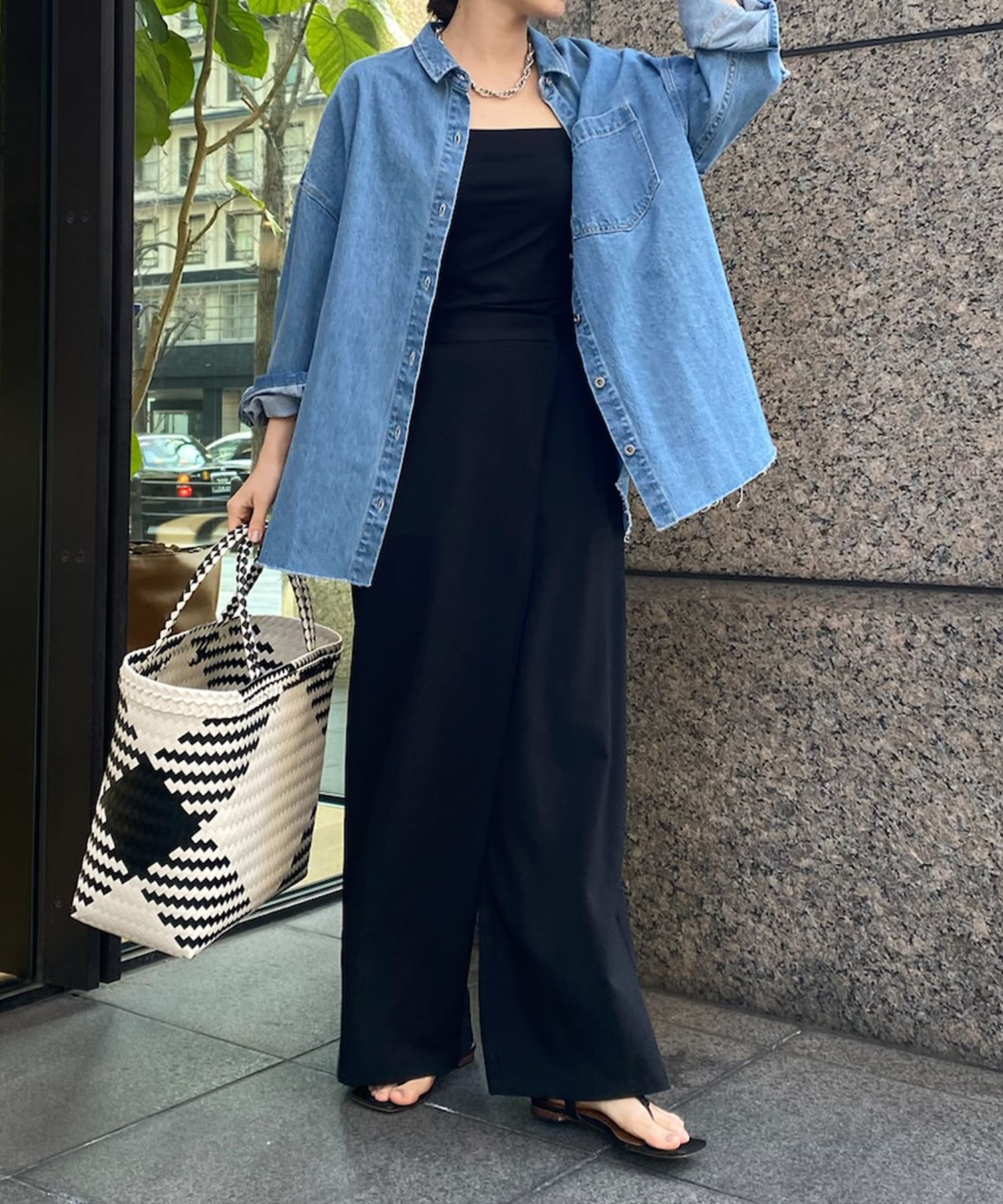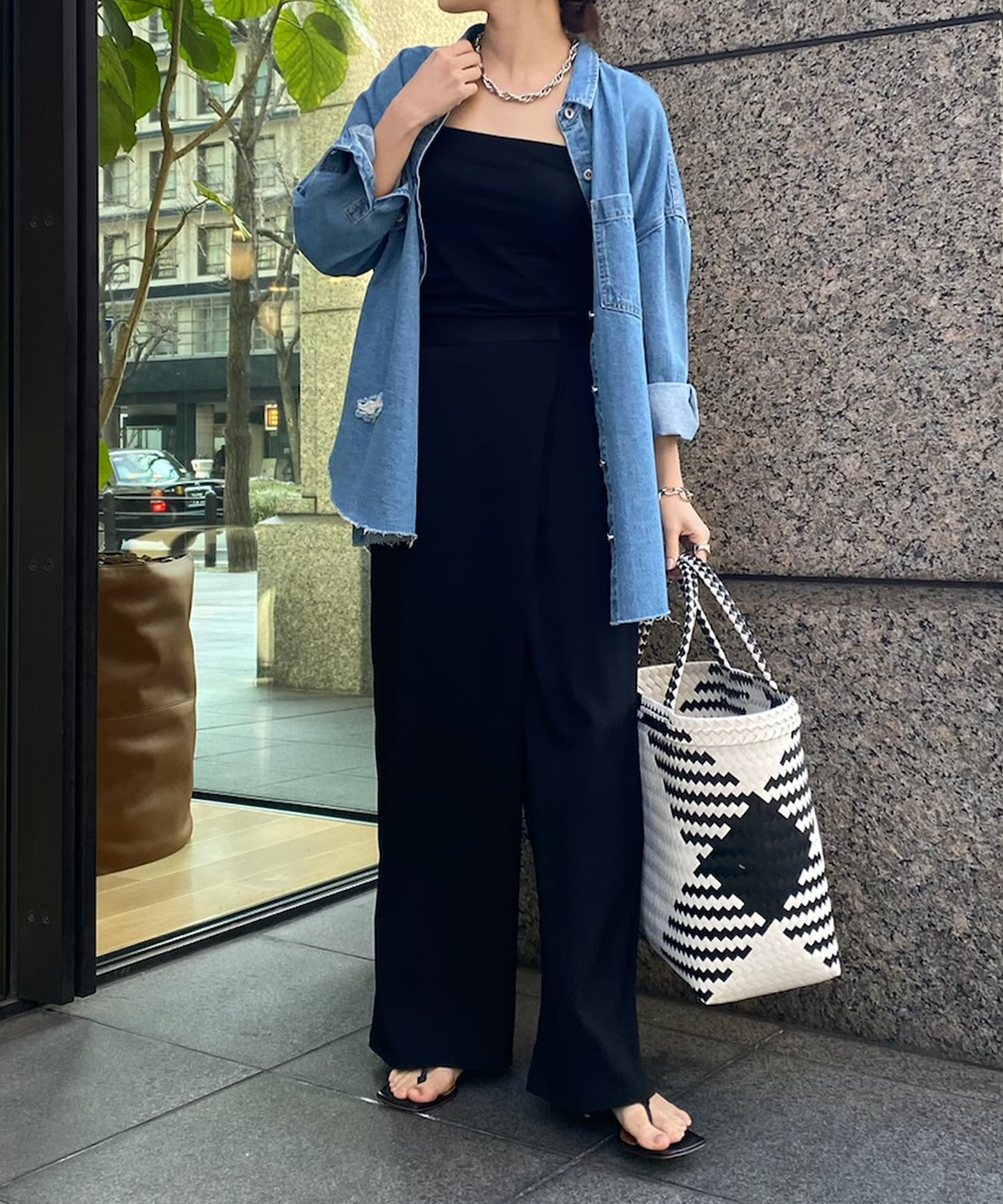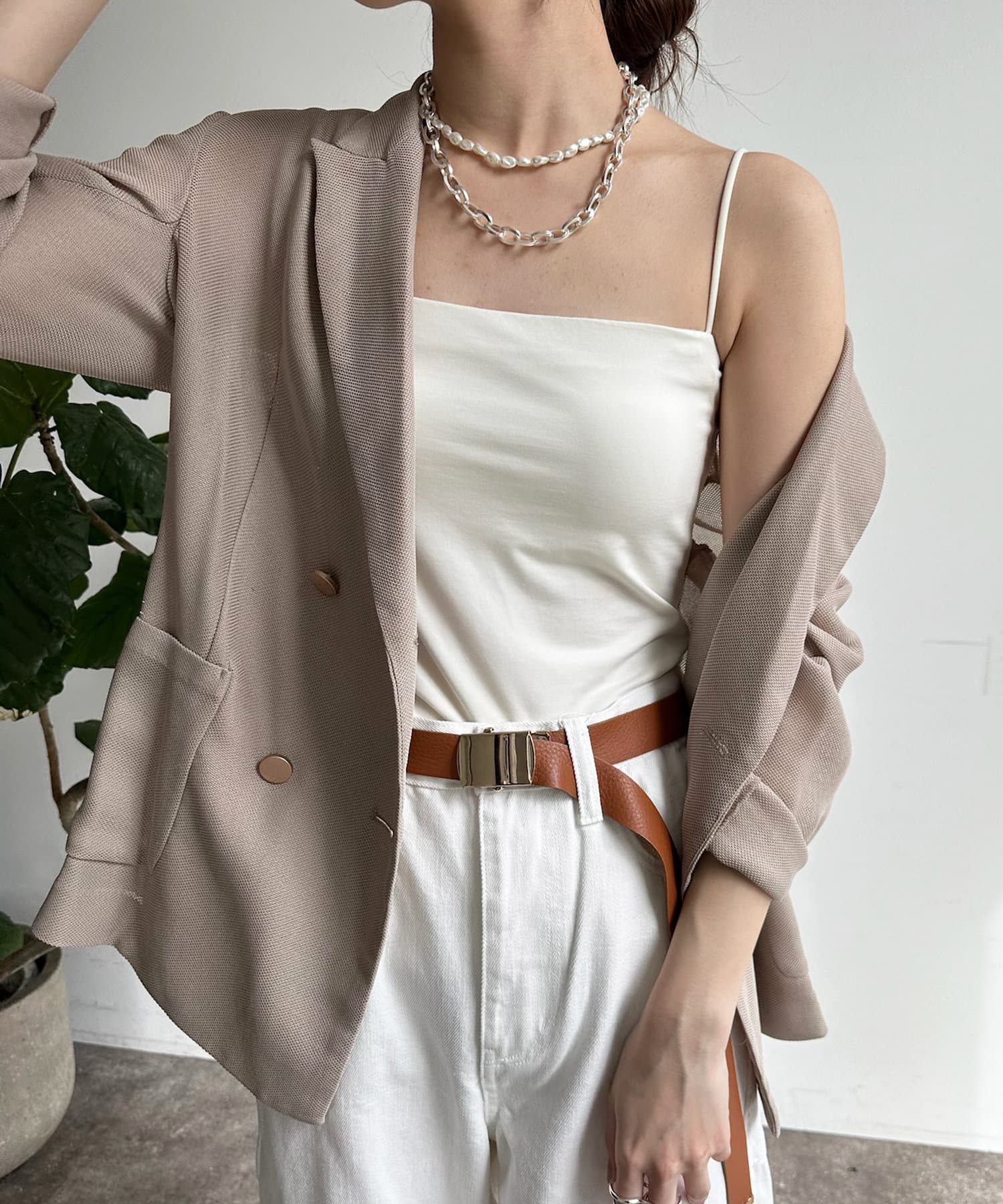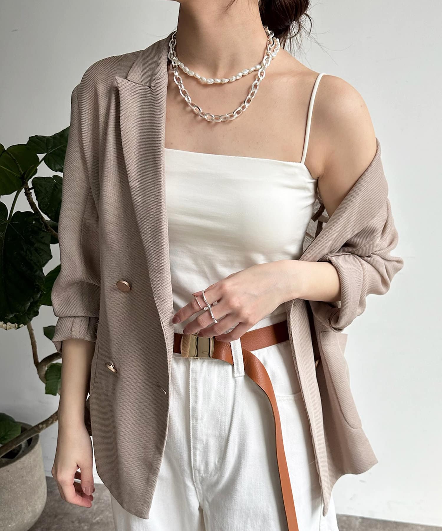 華奢な肩紐はおしゃれ感たっぷりの印象に。