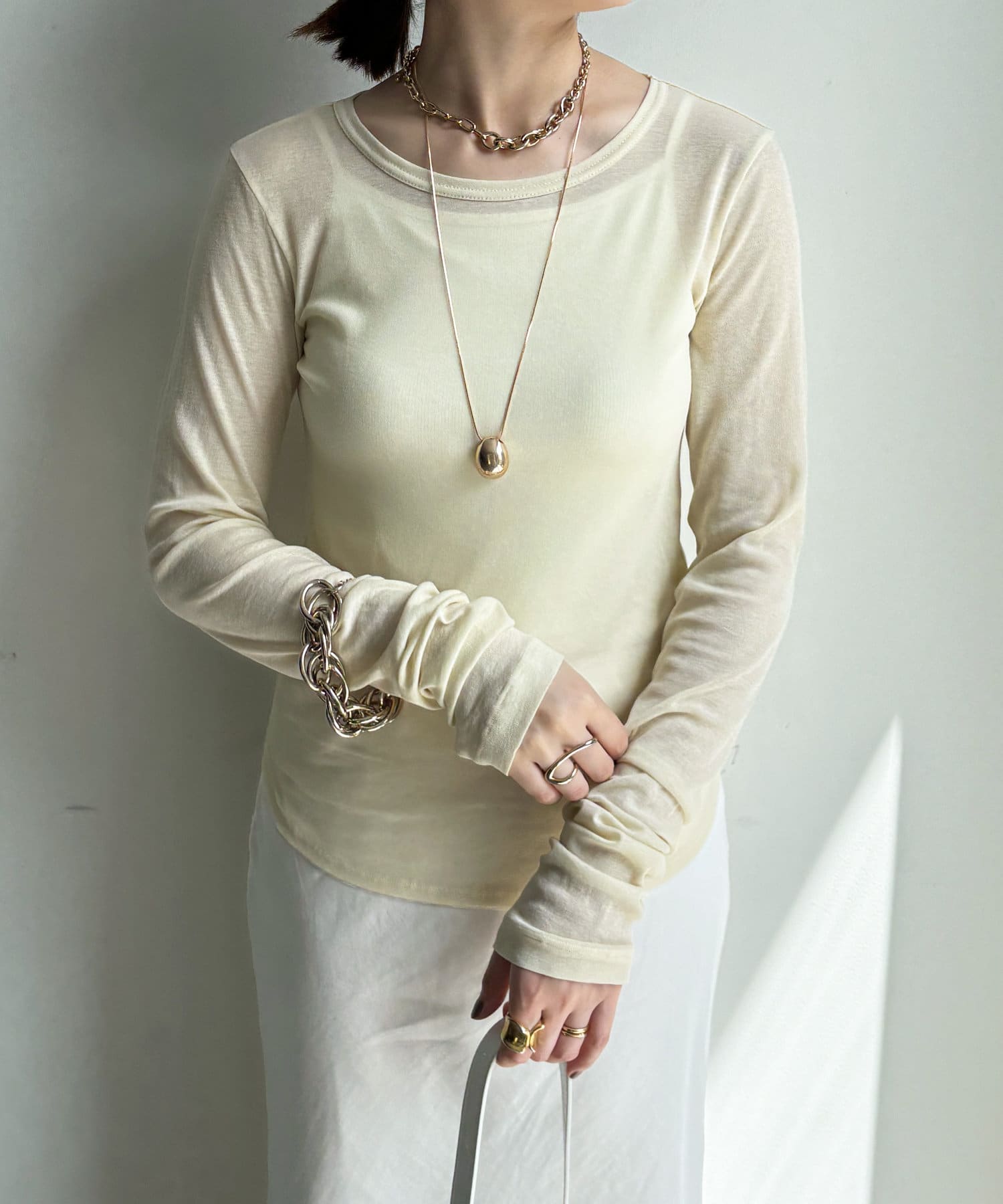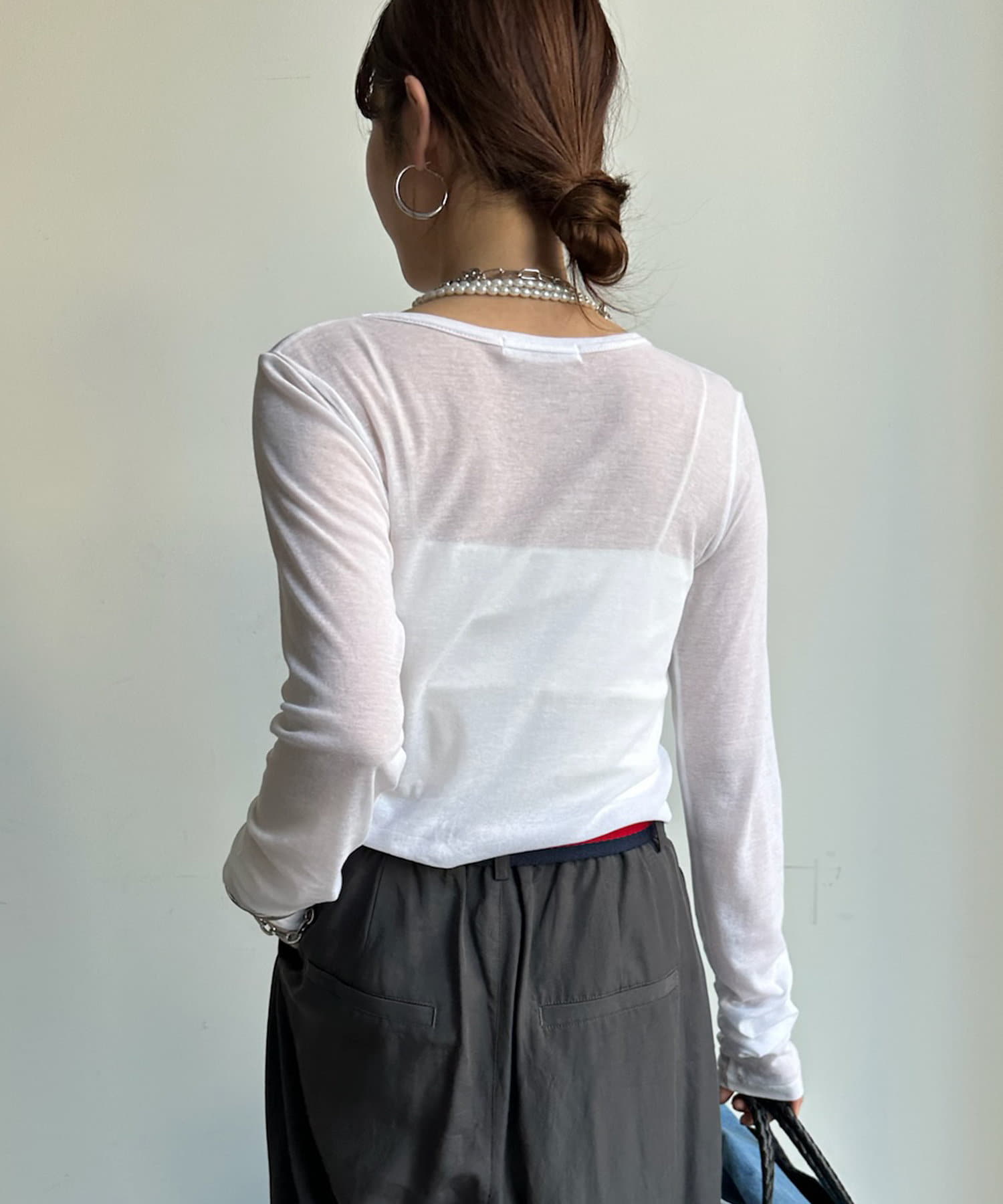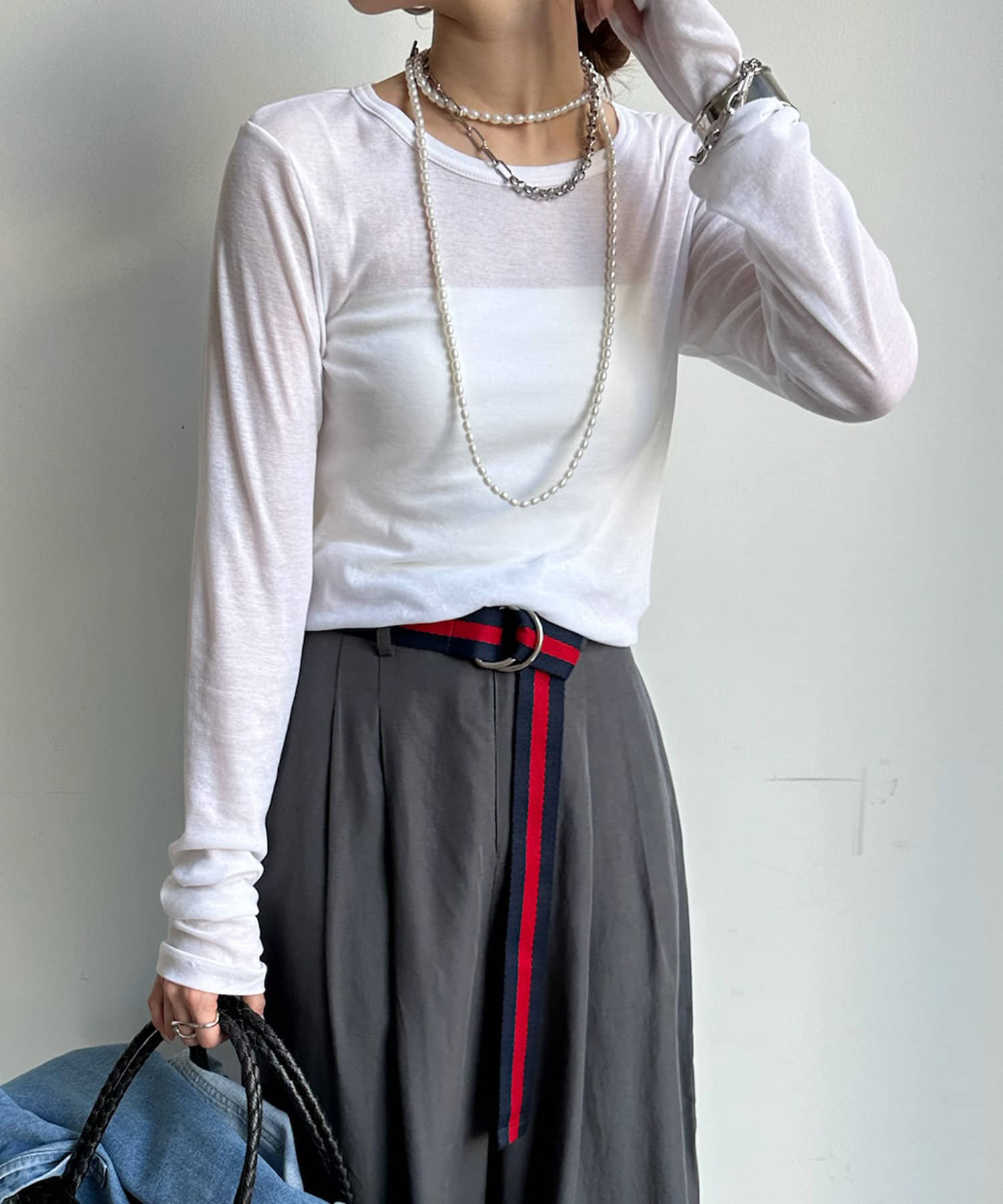 長めのお袖や上品なシアー感で抜け感のある印象に