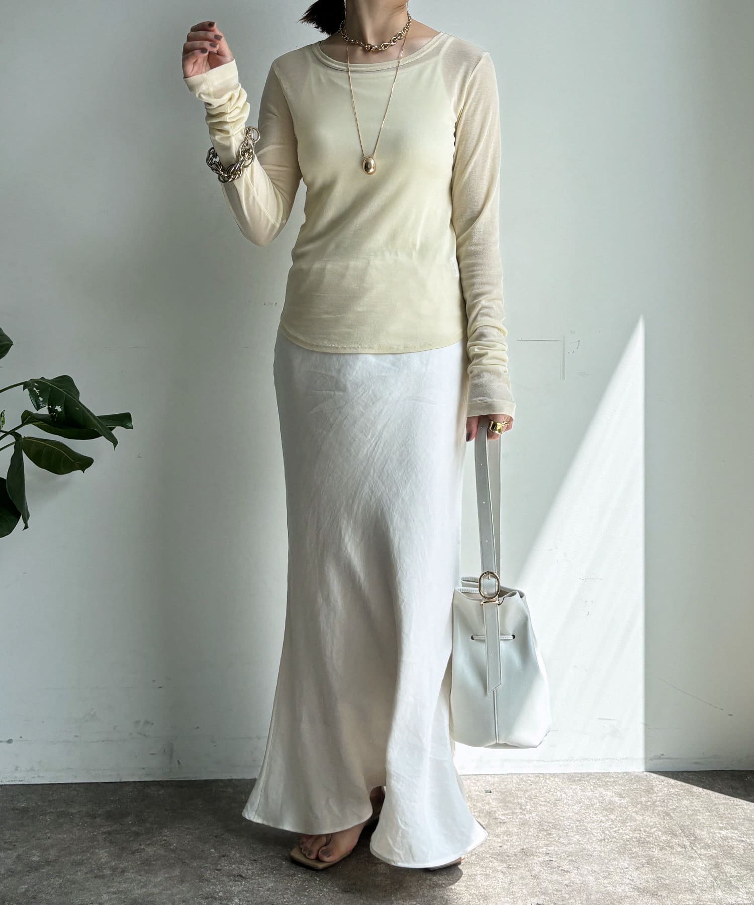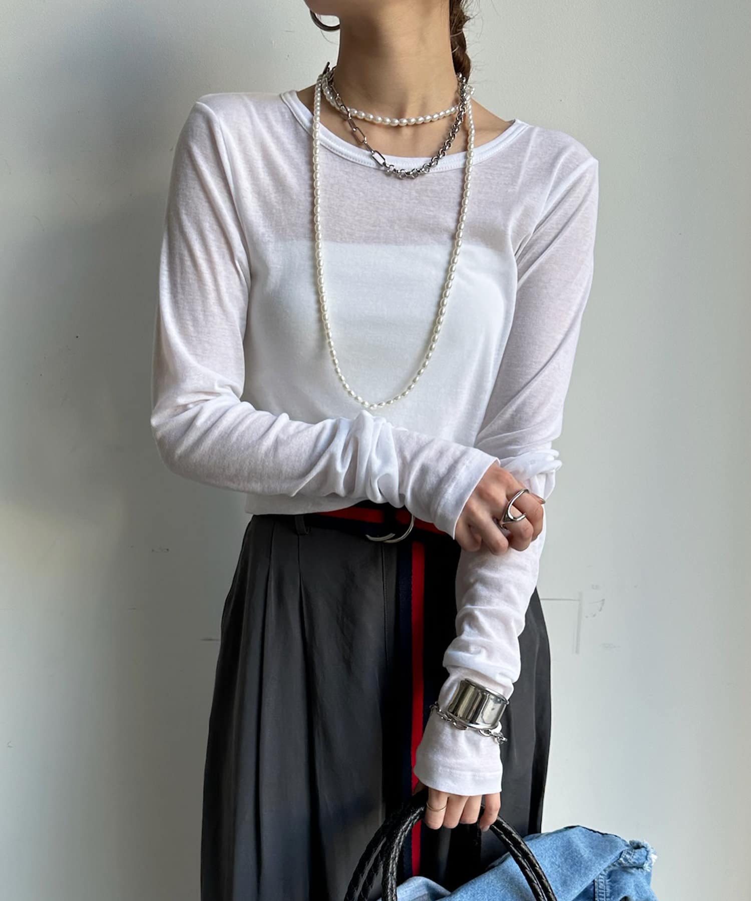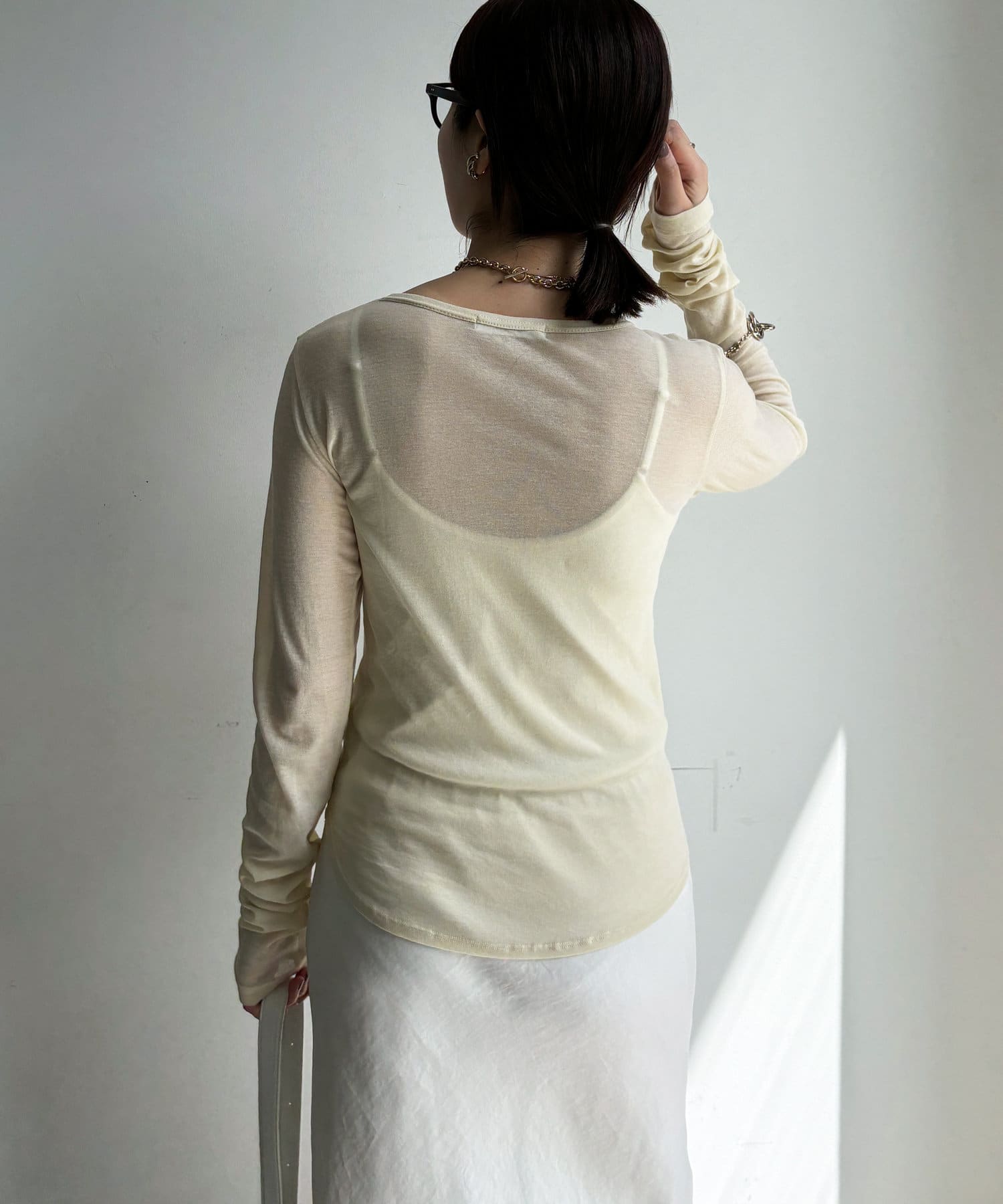 長めのお袖や上品なシアー感で抜け感のある印象に