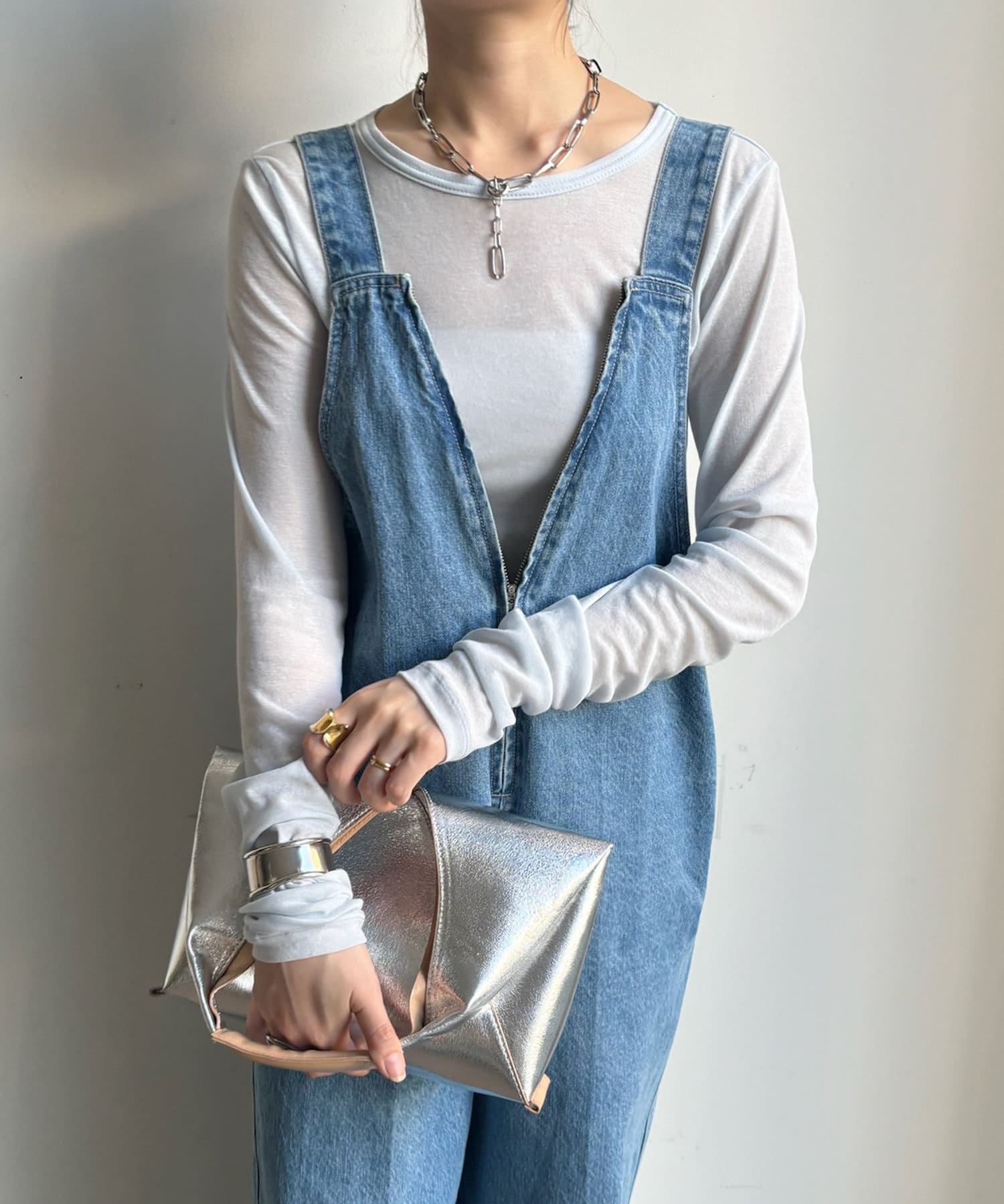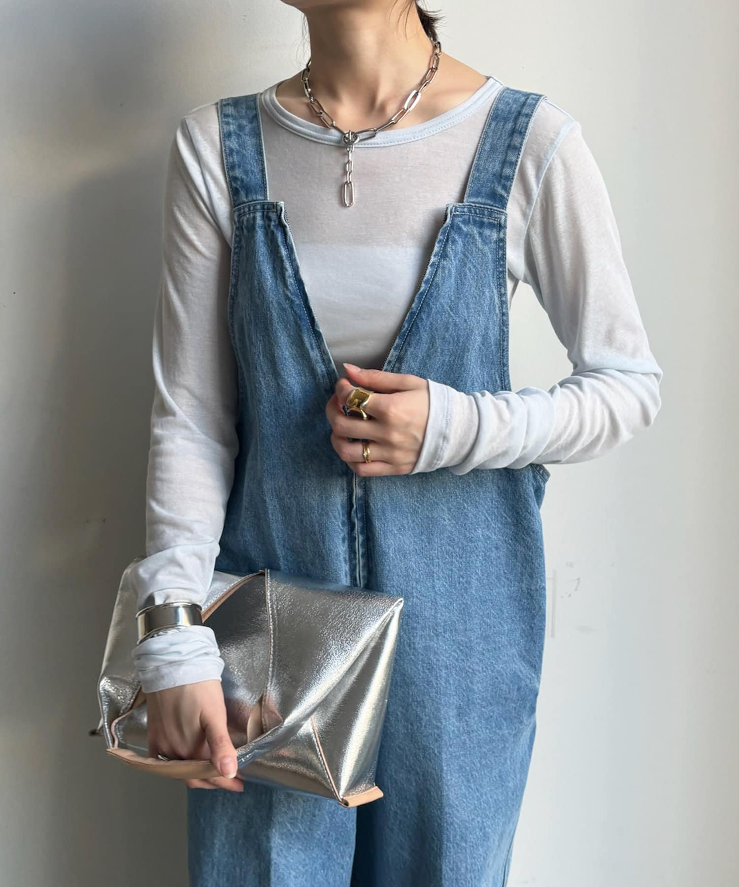 コンパクトめなサイズ感のため、羽織りアイテムのインナーやサロペットとの合わせなど、幅広いコーデに着まわしていただけますよ。