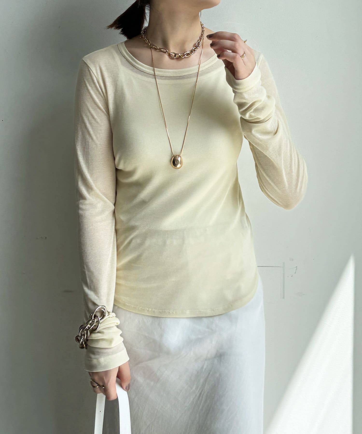 程よいシアー感がきれいで、1枚着としてもレイヤードとしても活躍してくれます。