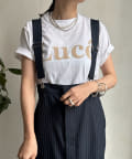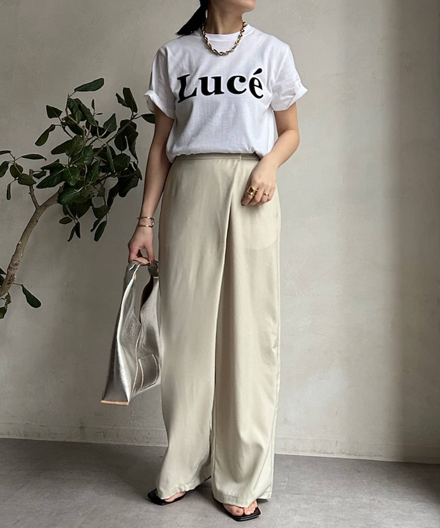 インパクトのあるロゴが、コーディネートのアクセントになり、大人なスタイリングにもマッチして着ていただけます。