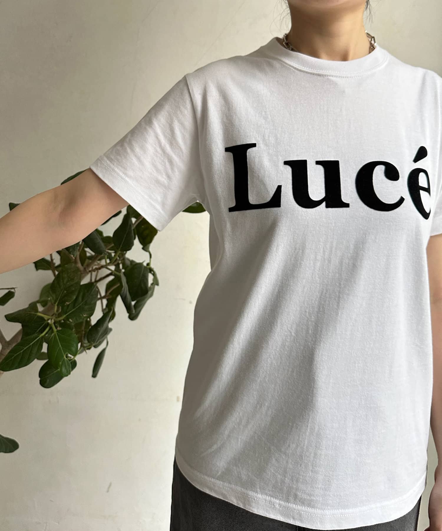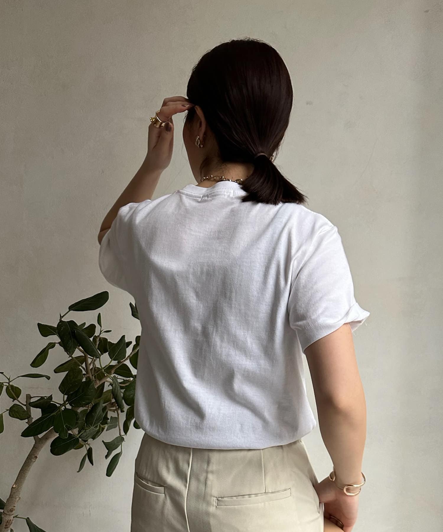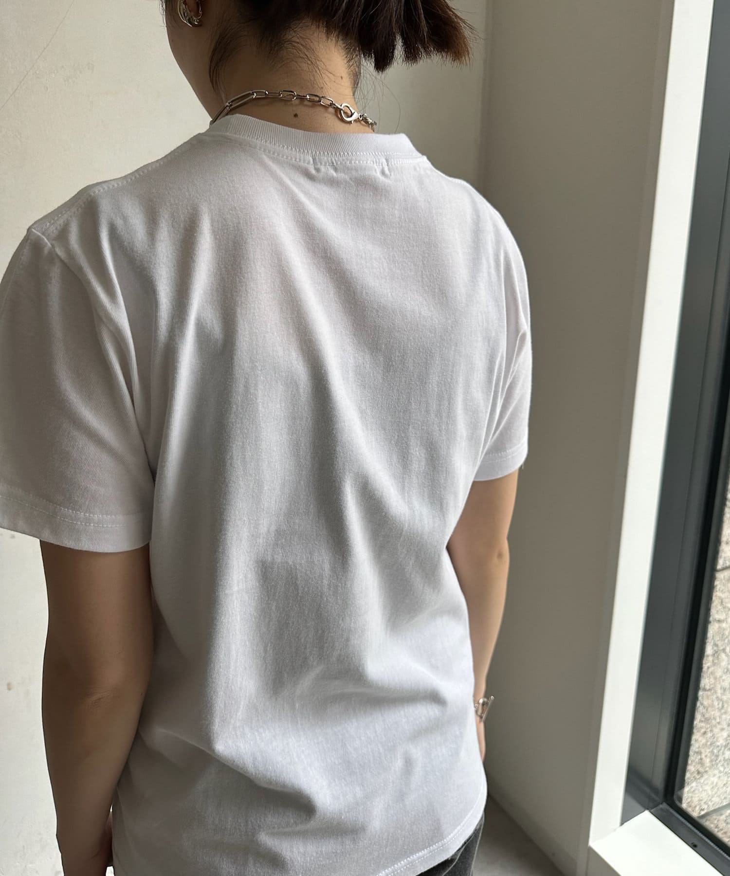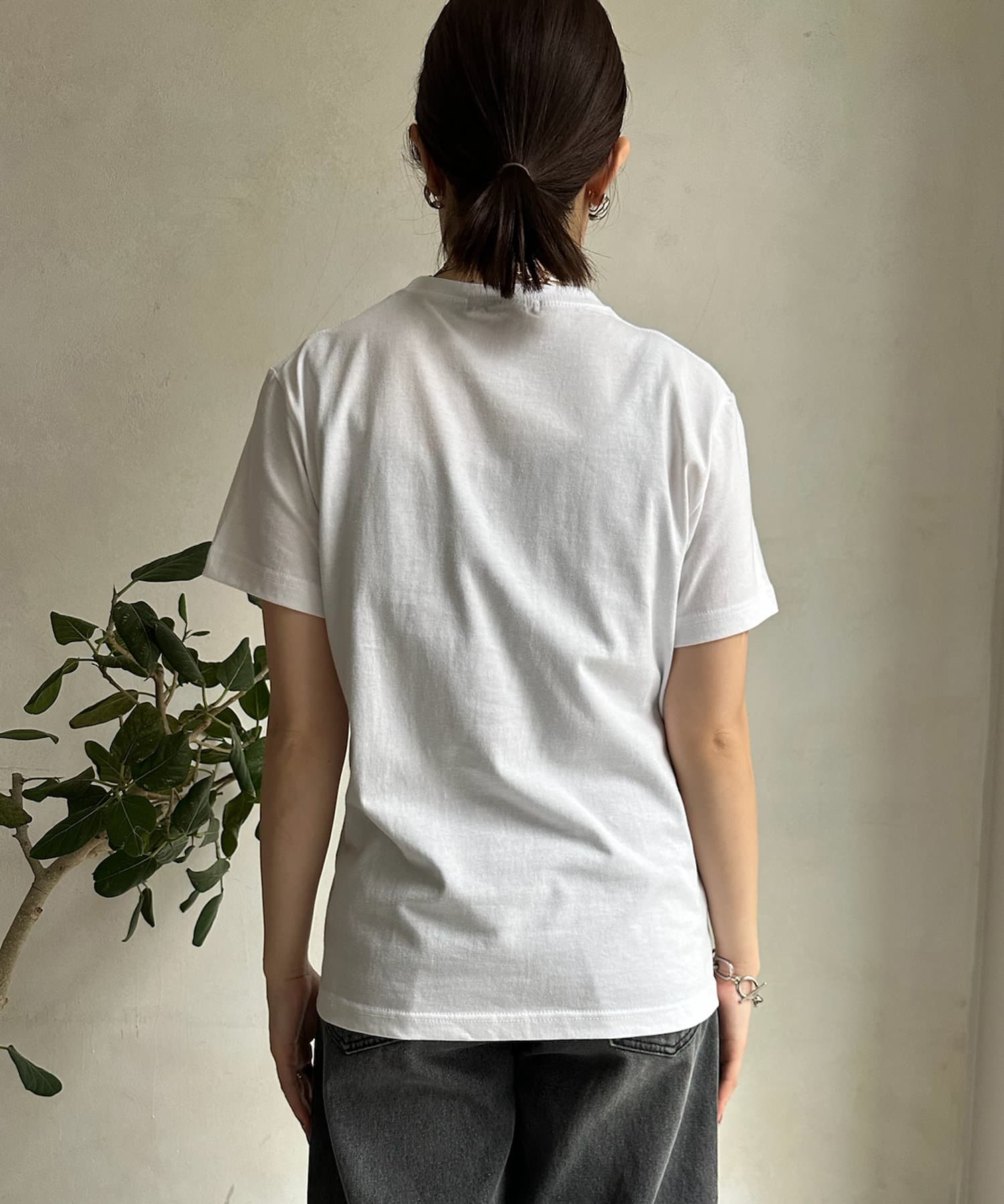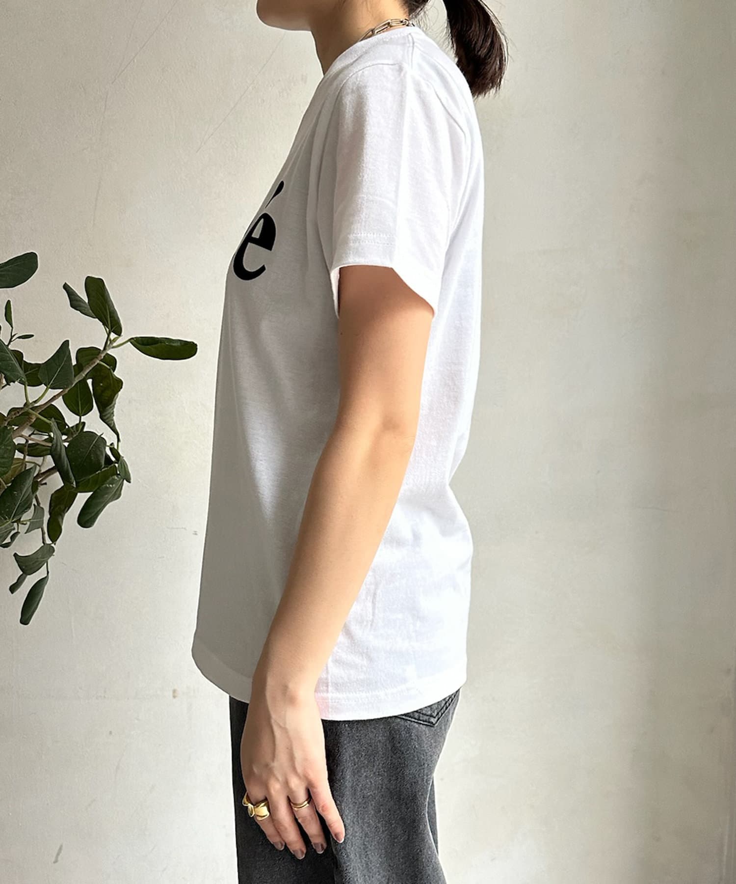 表面感のあるフロッキーロゴがアクセントのシンプルTシャツ。