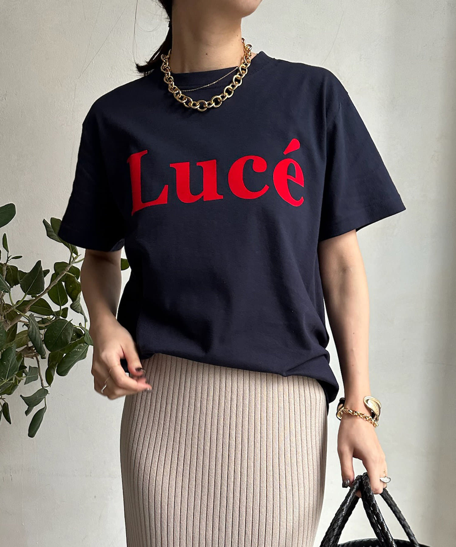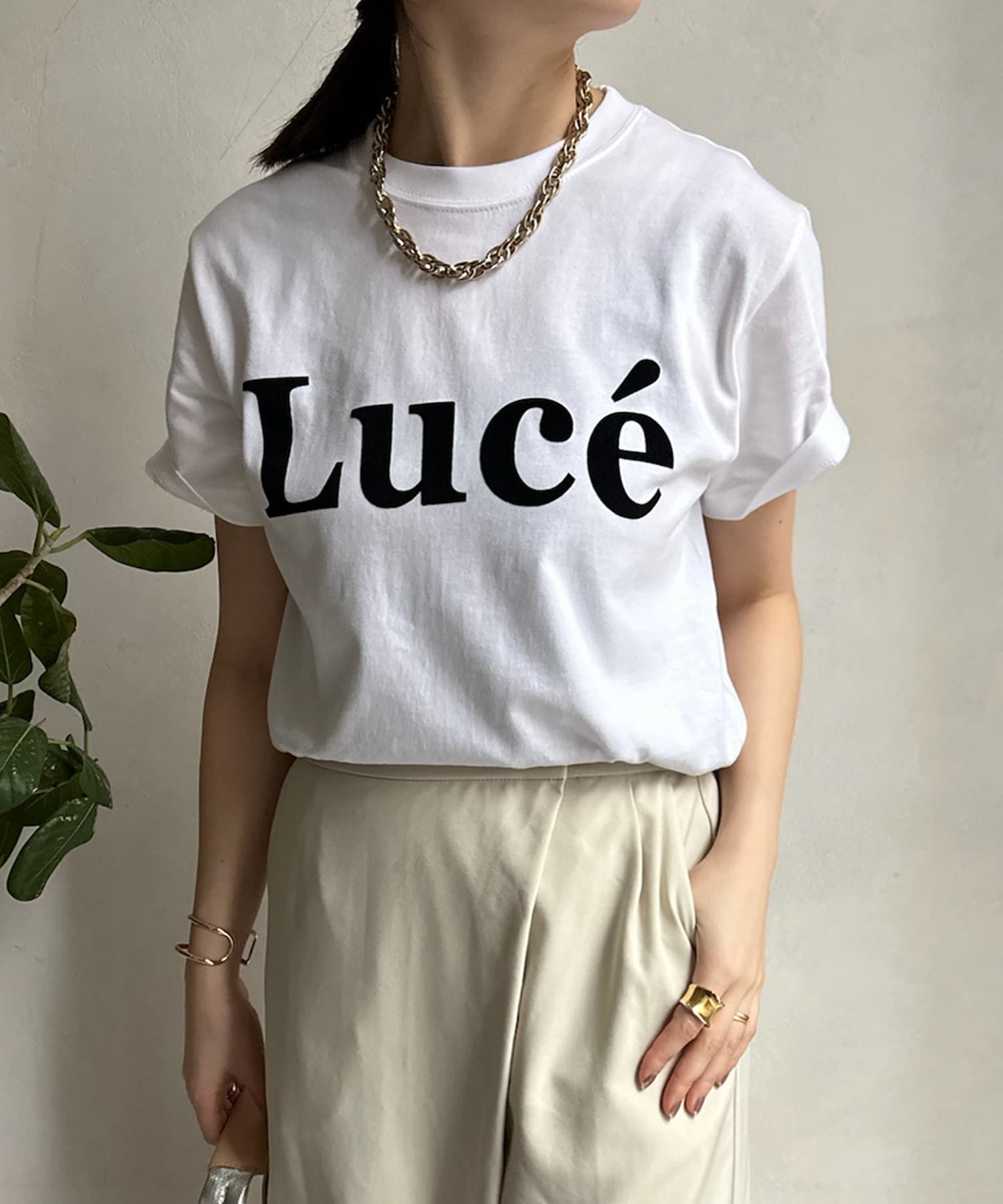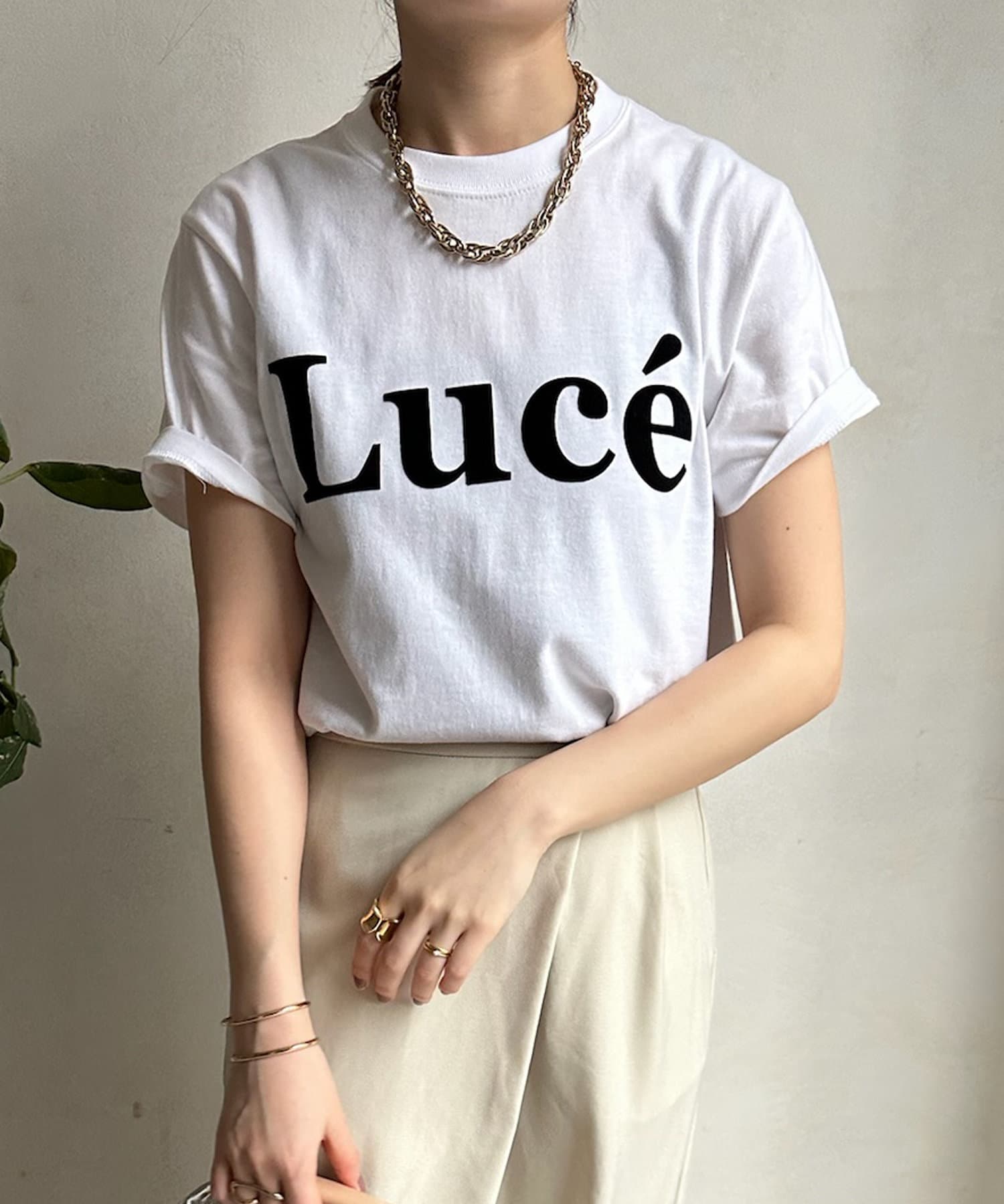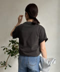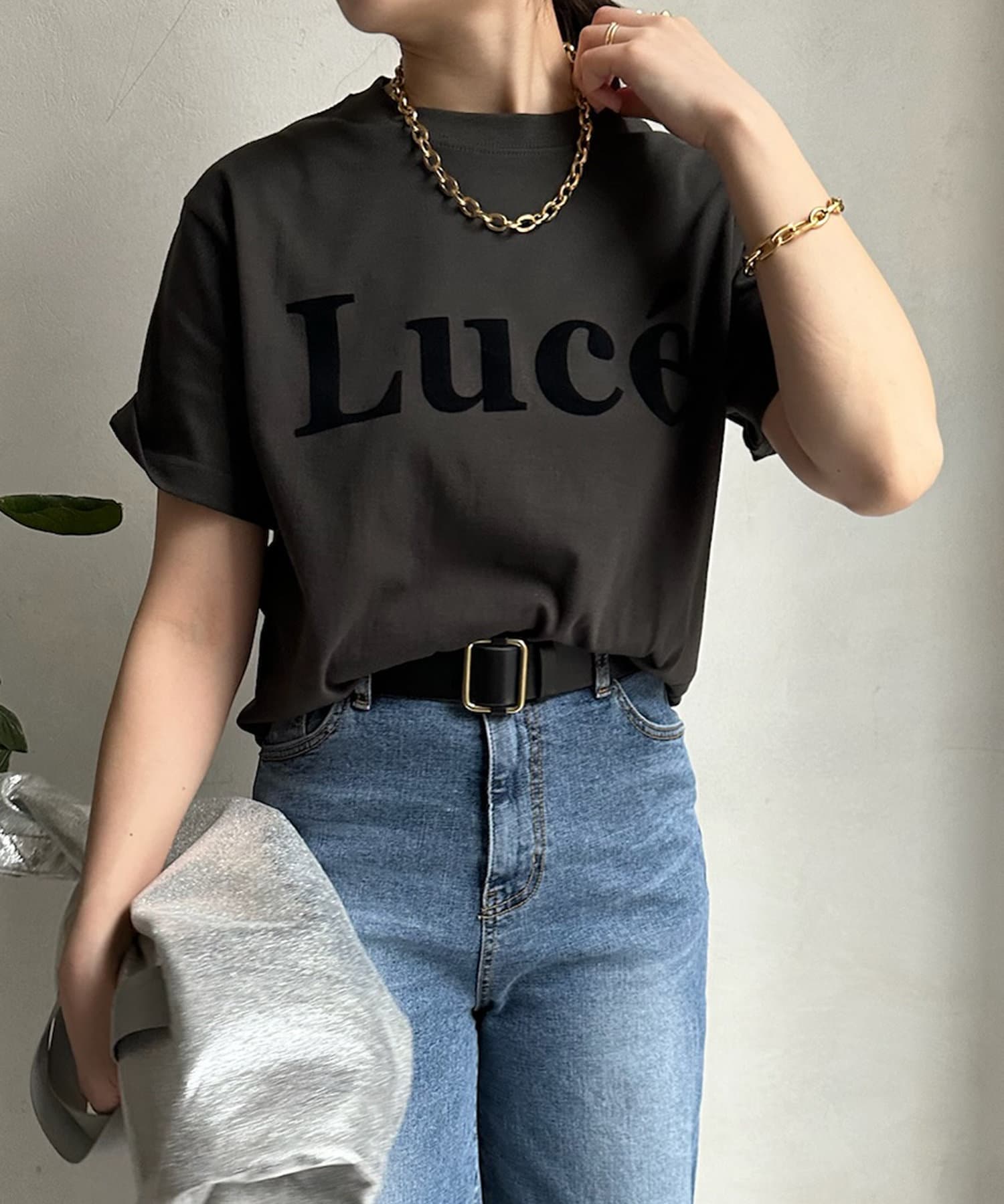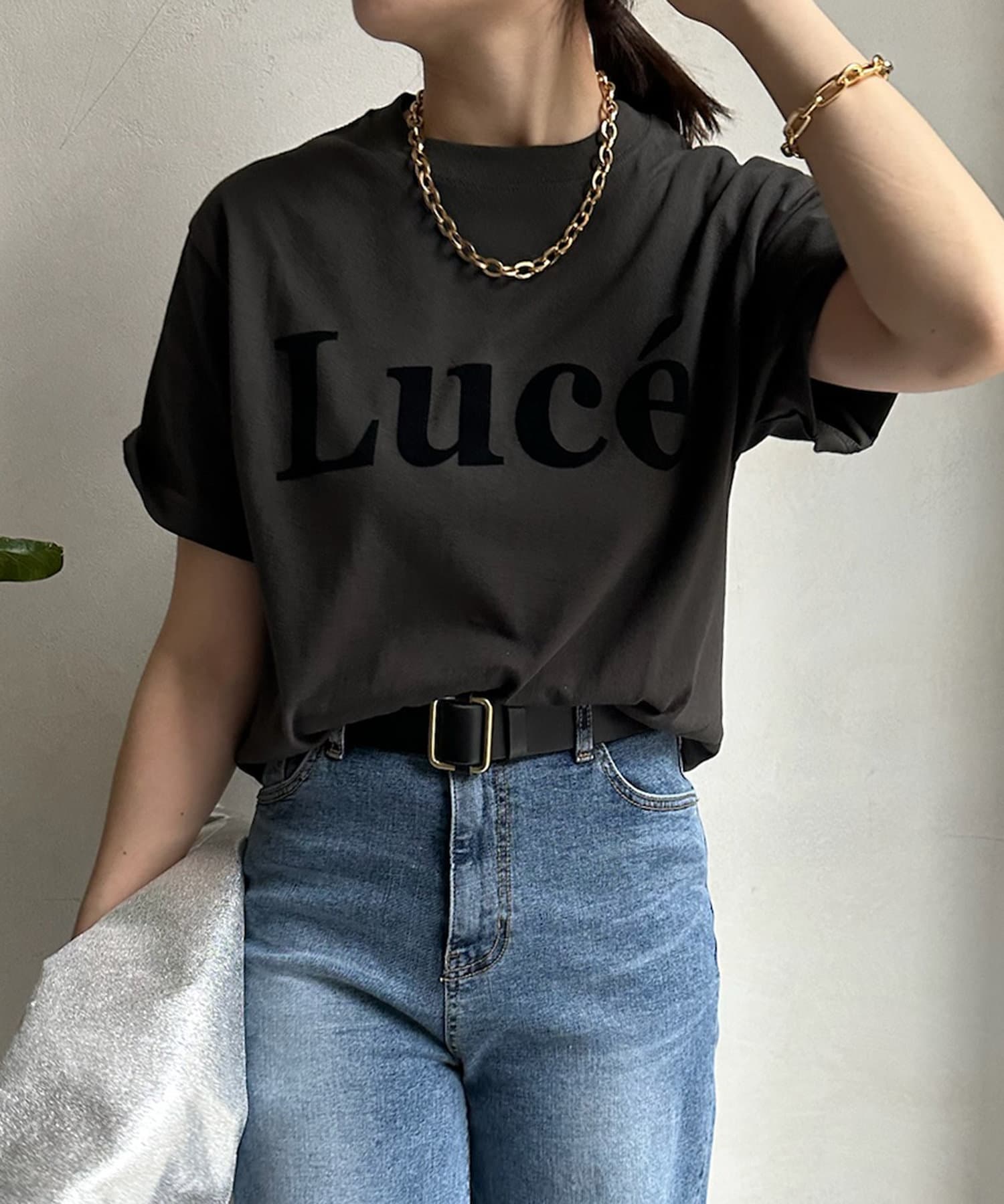 表面感のあるフロッキーロゴがアクセントのシンプルTシャツ。