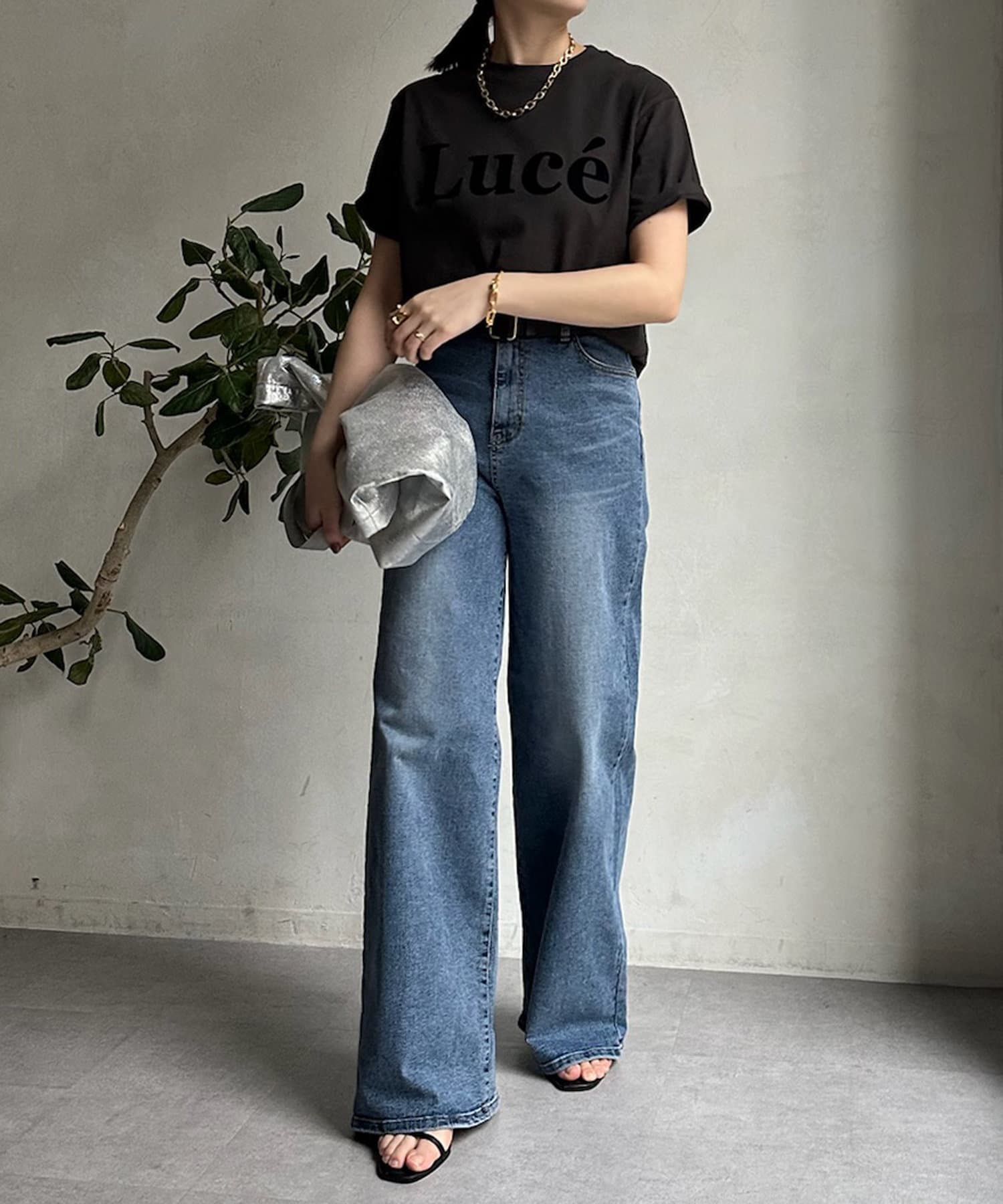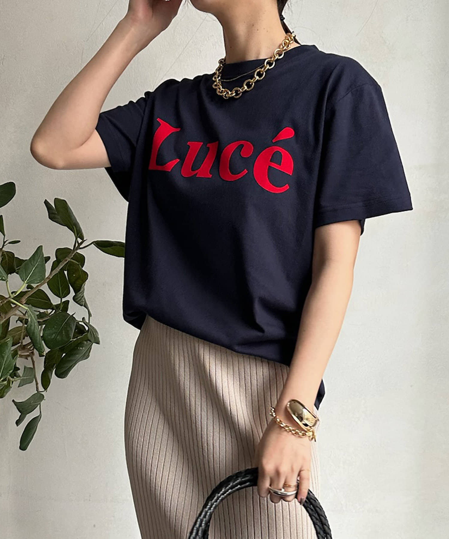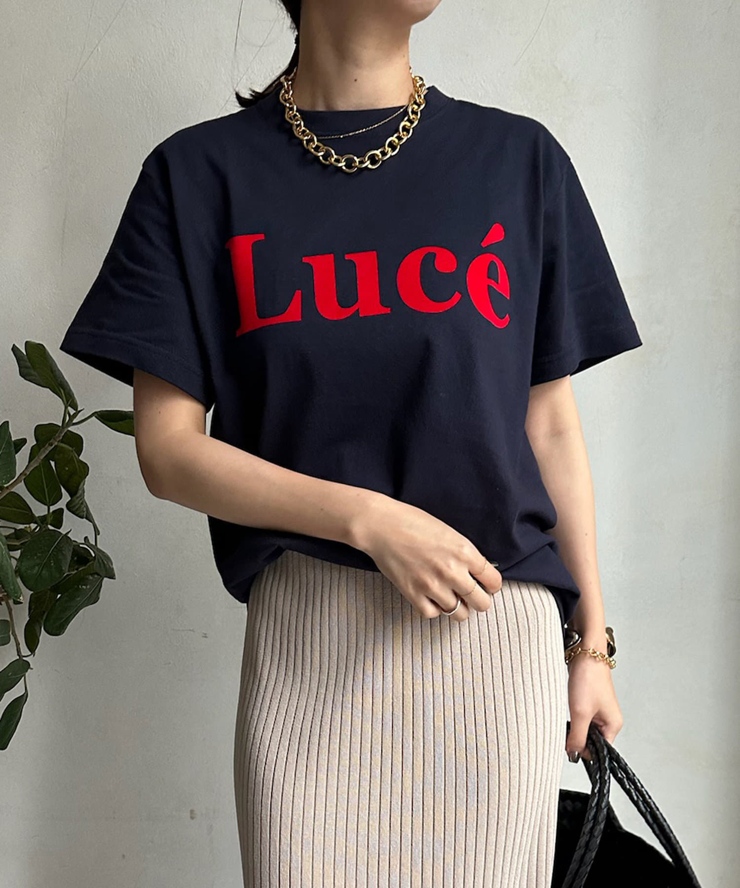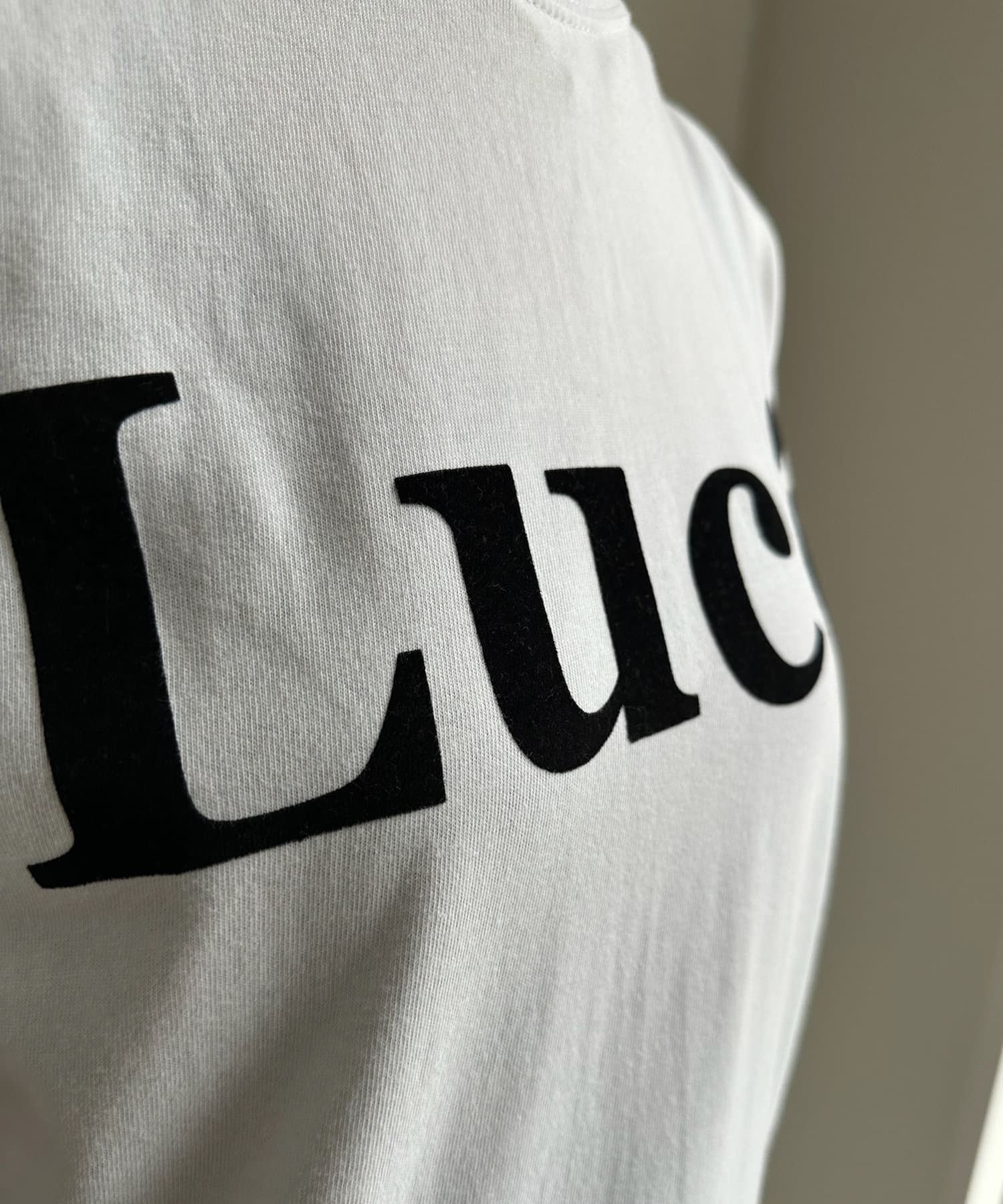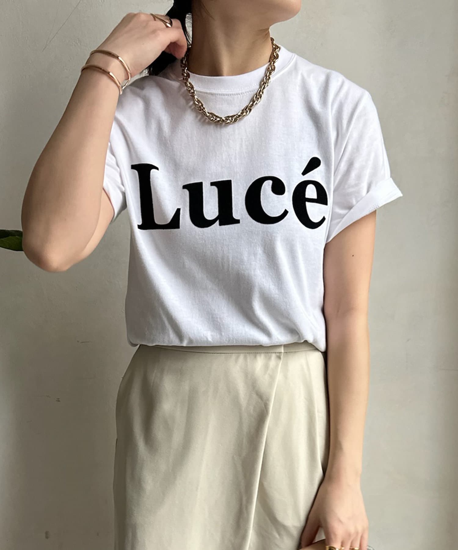 表面感のあるフロッキーロゴがアクセントのシンプルTシャツ。