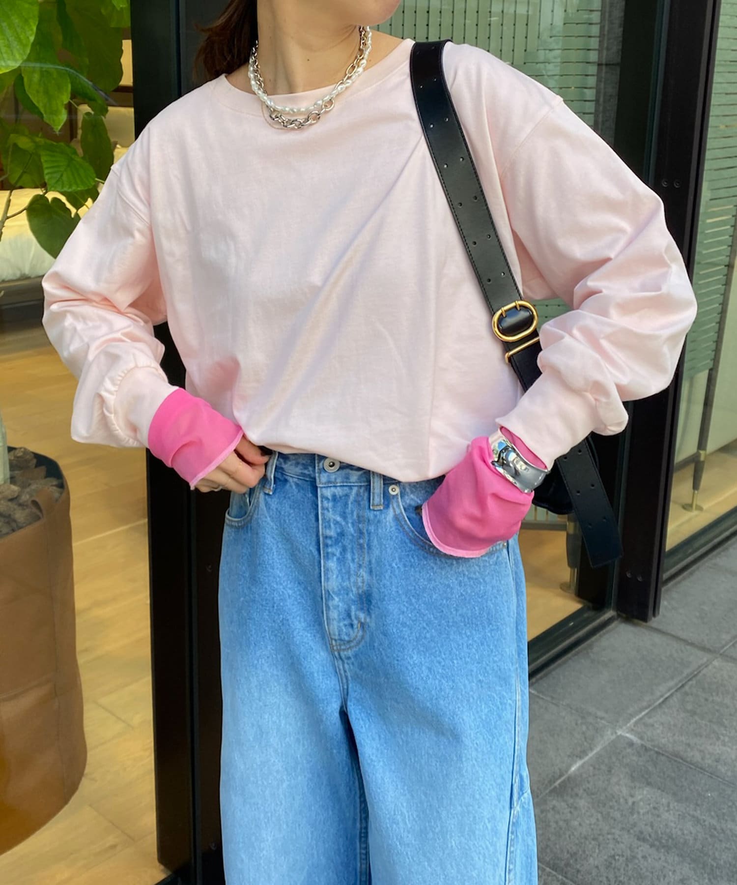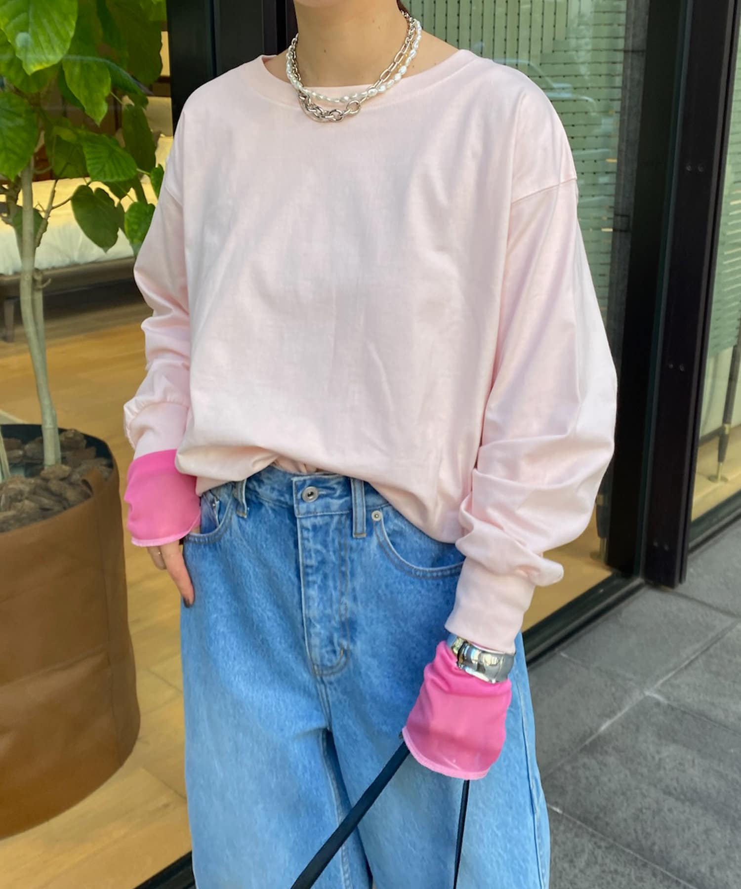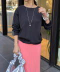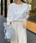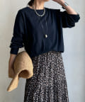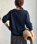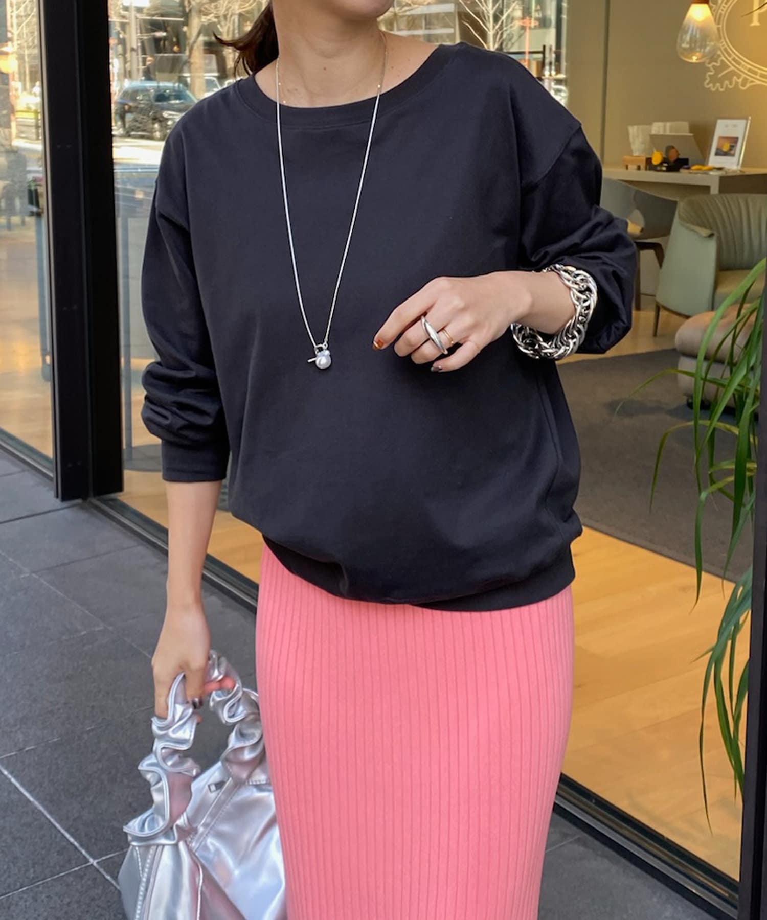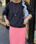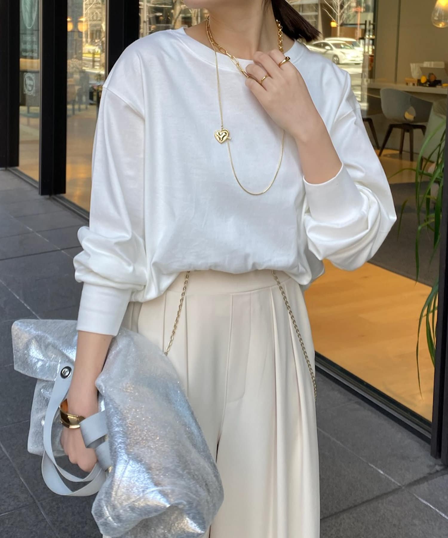 すっきりと綺麗見えする、ネックラインのデザインが大人らしいロンtee。