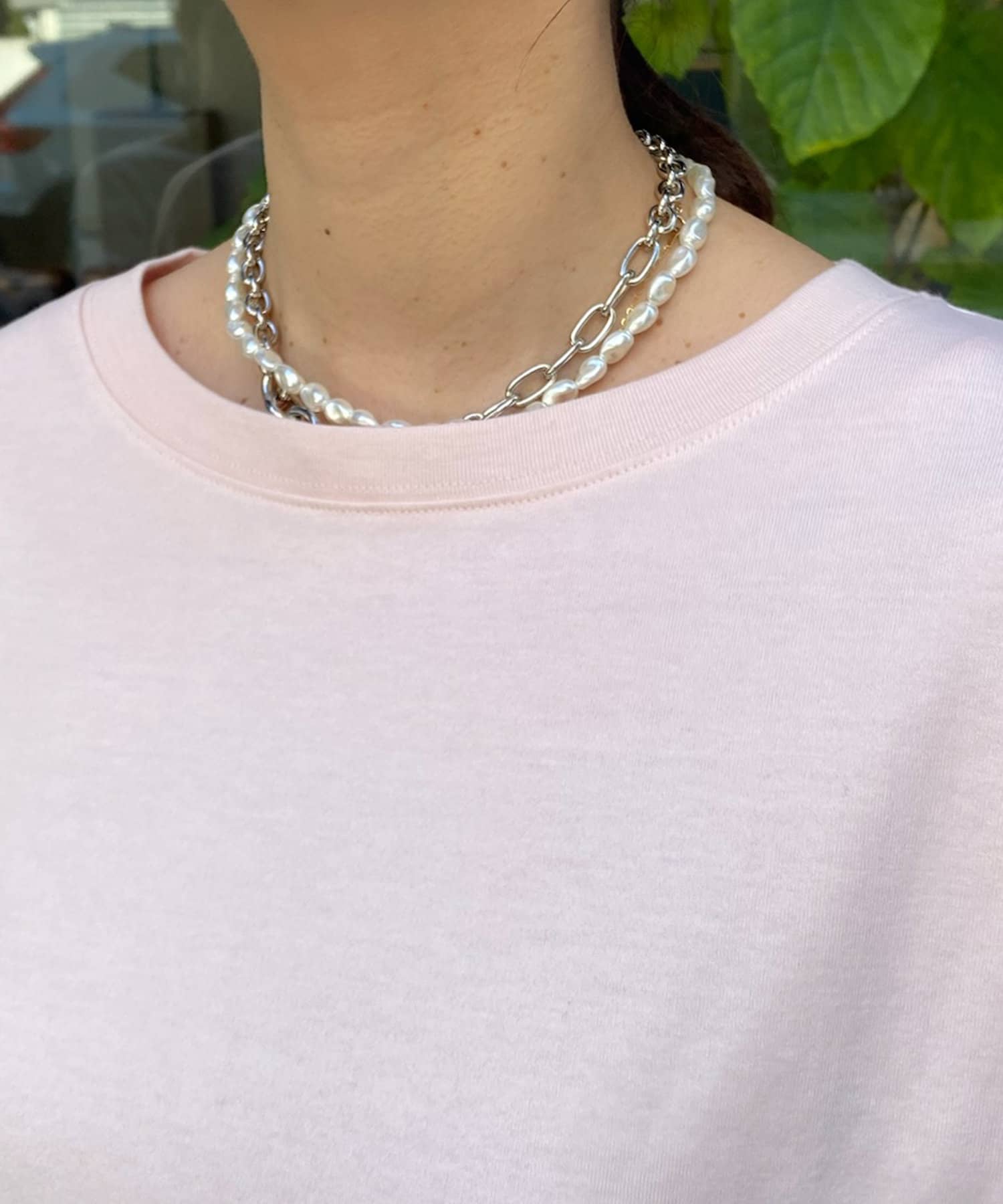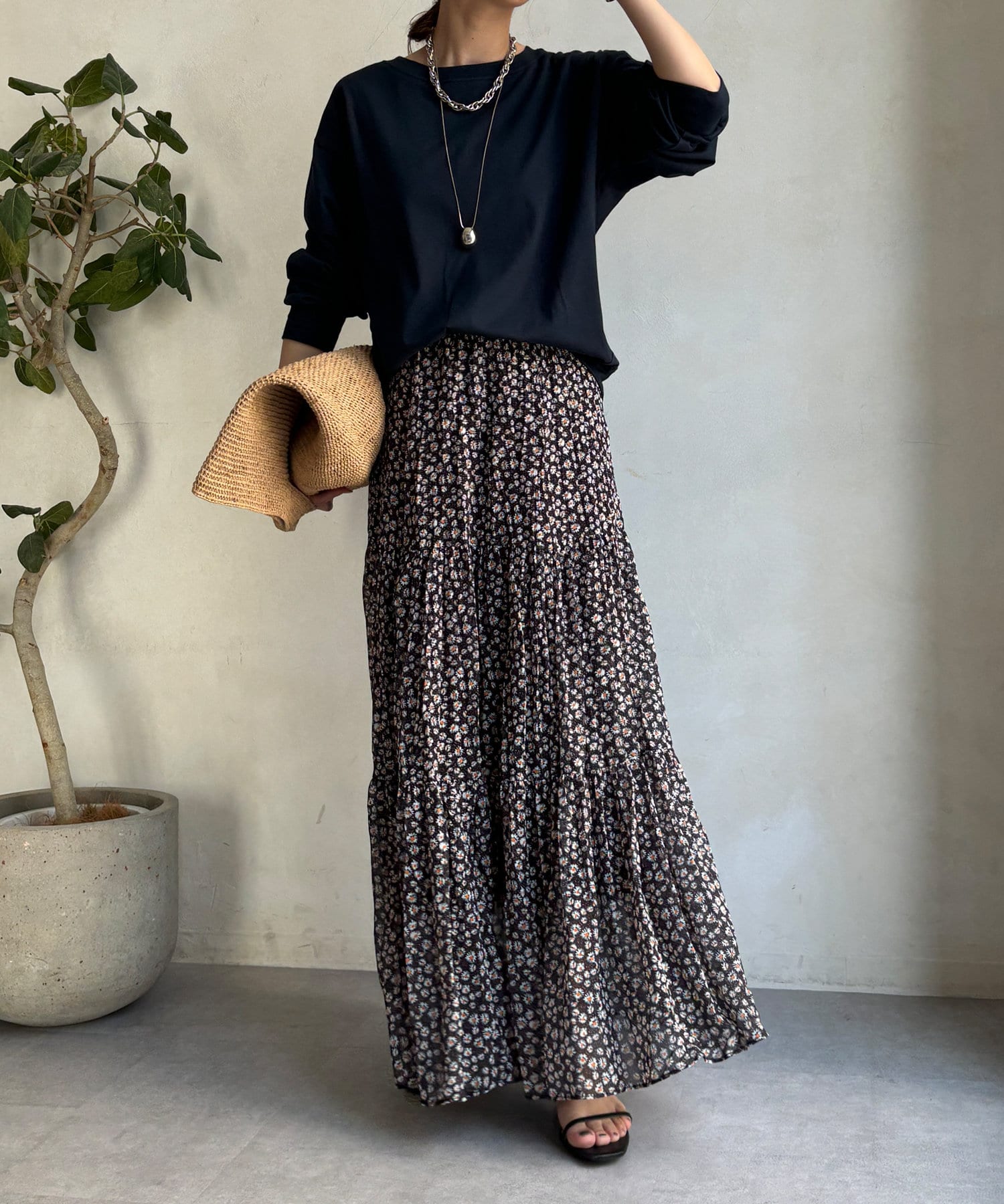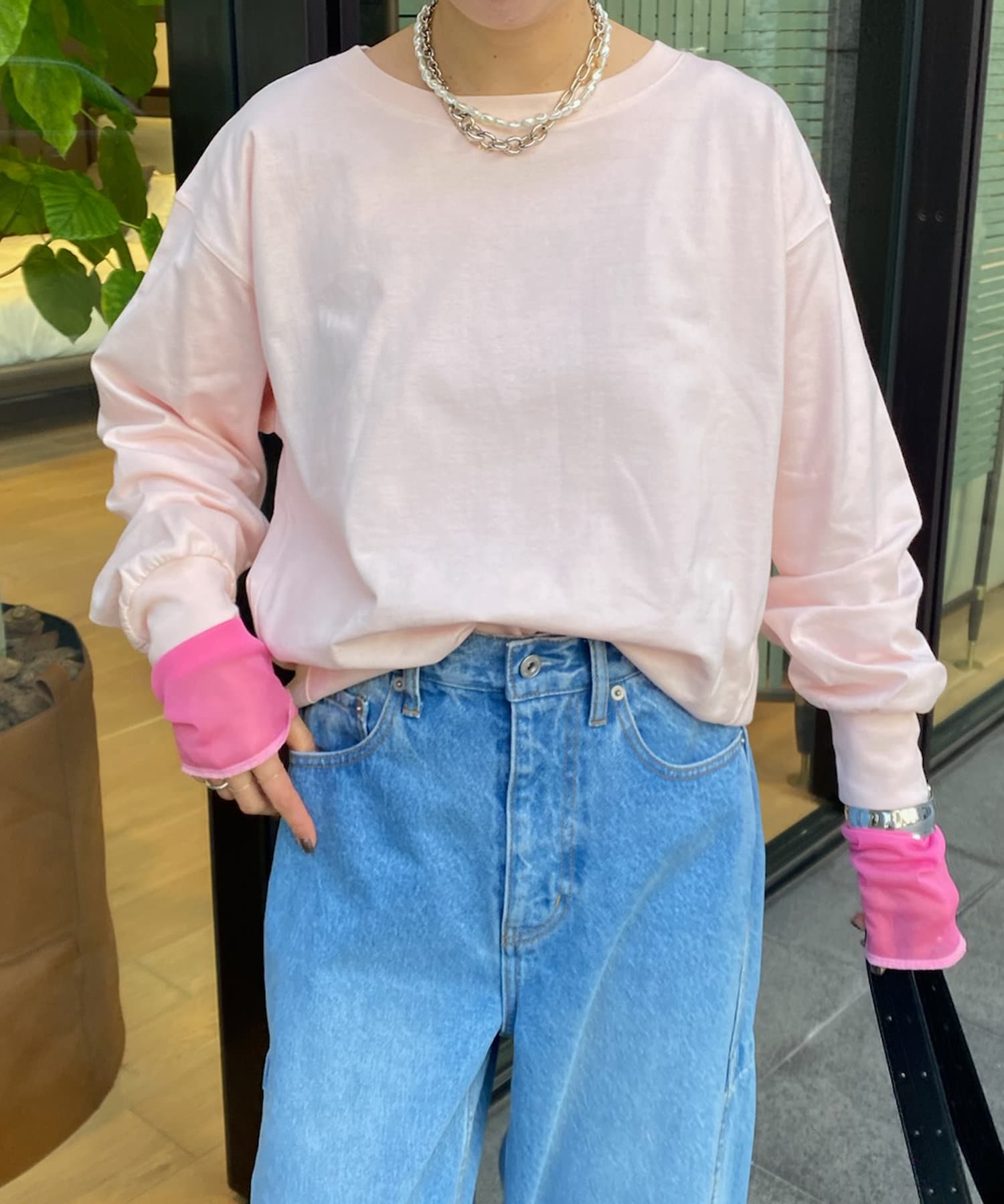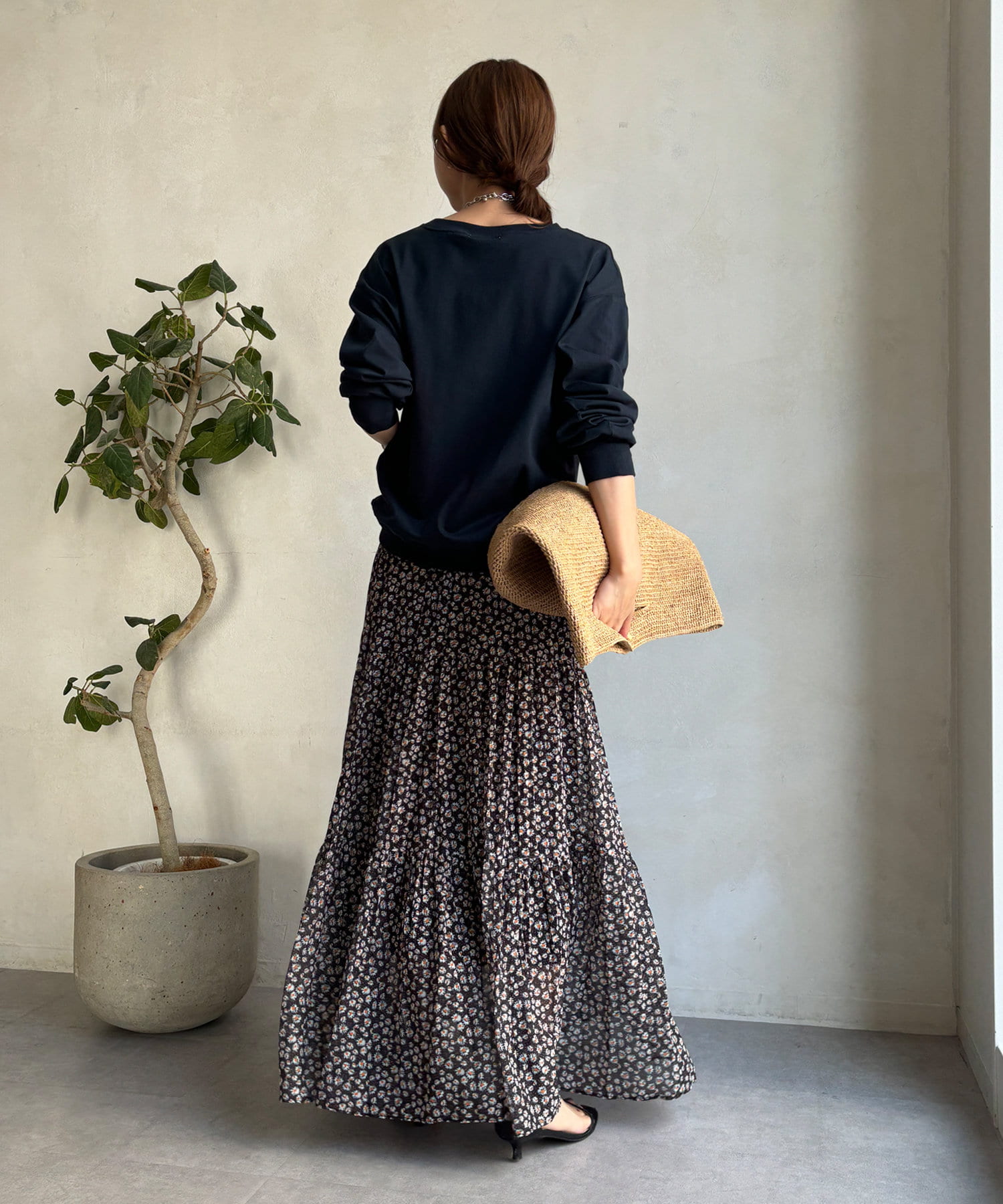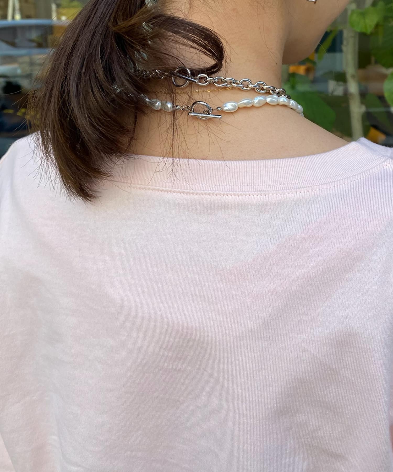 すっきりと綺麗見えする、ネックラインのデザインが大人らしいロンtee。