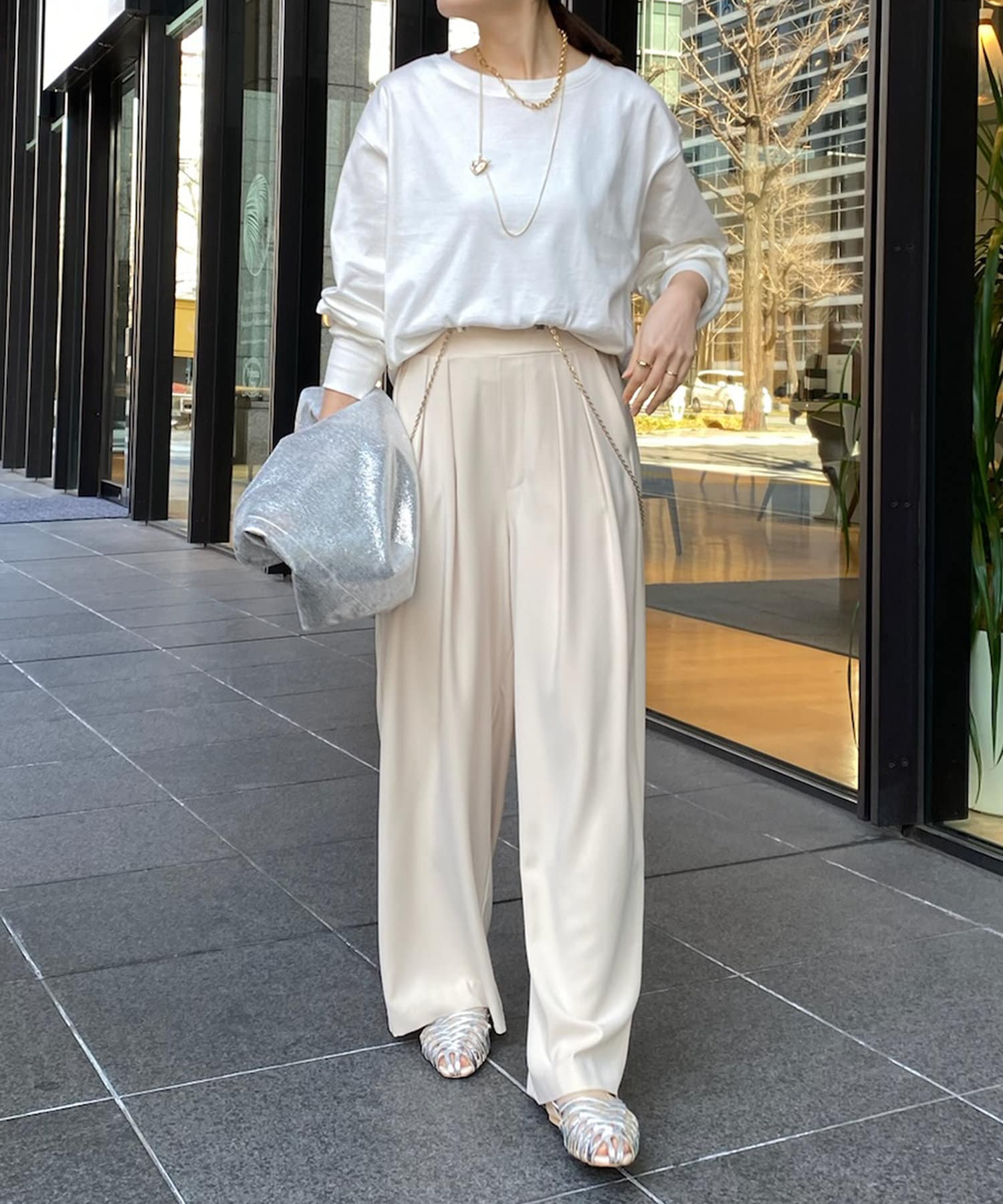 拘りのシルエットが、シンプルさの中におしゃれさを見せつけるポイントになってくれます。