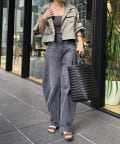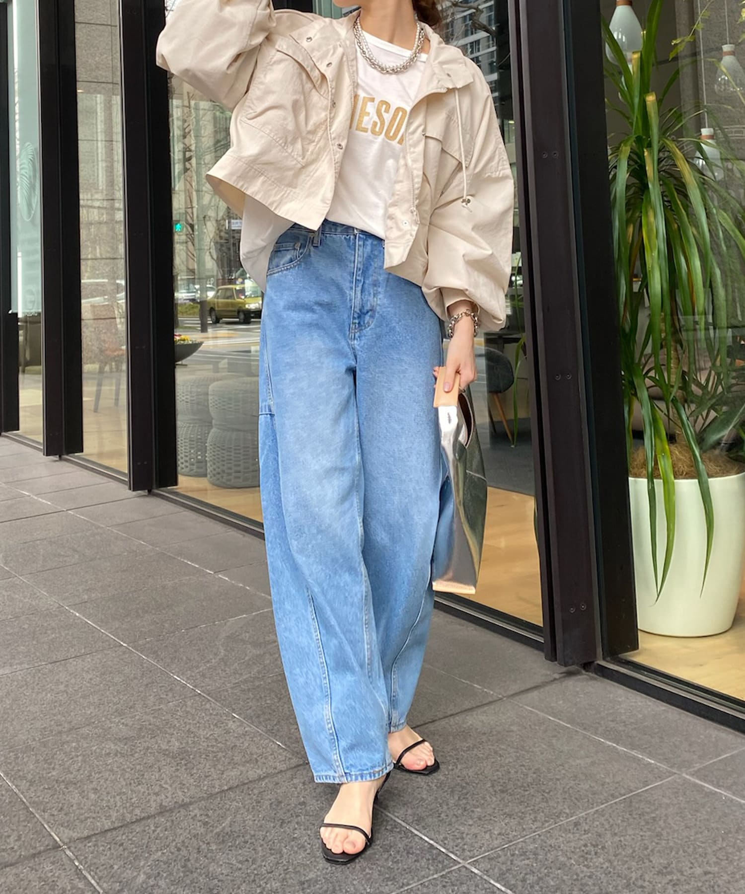 ゆったりとした身幅と、やや後ろ下がりのシルエットで