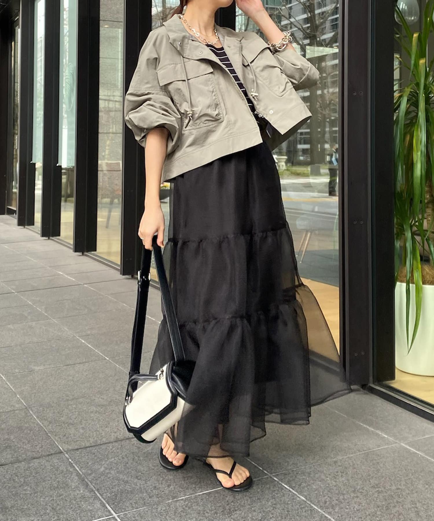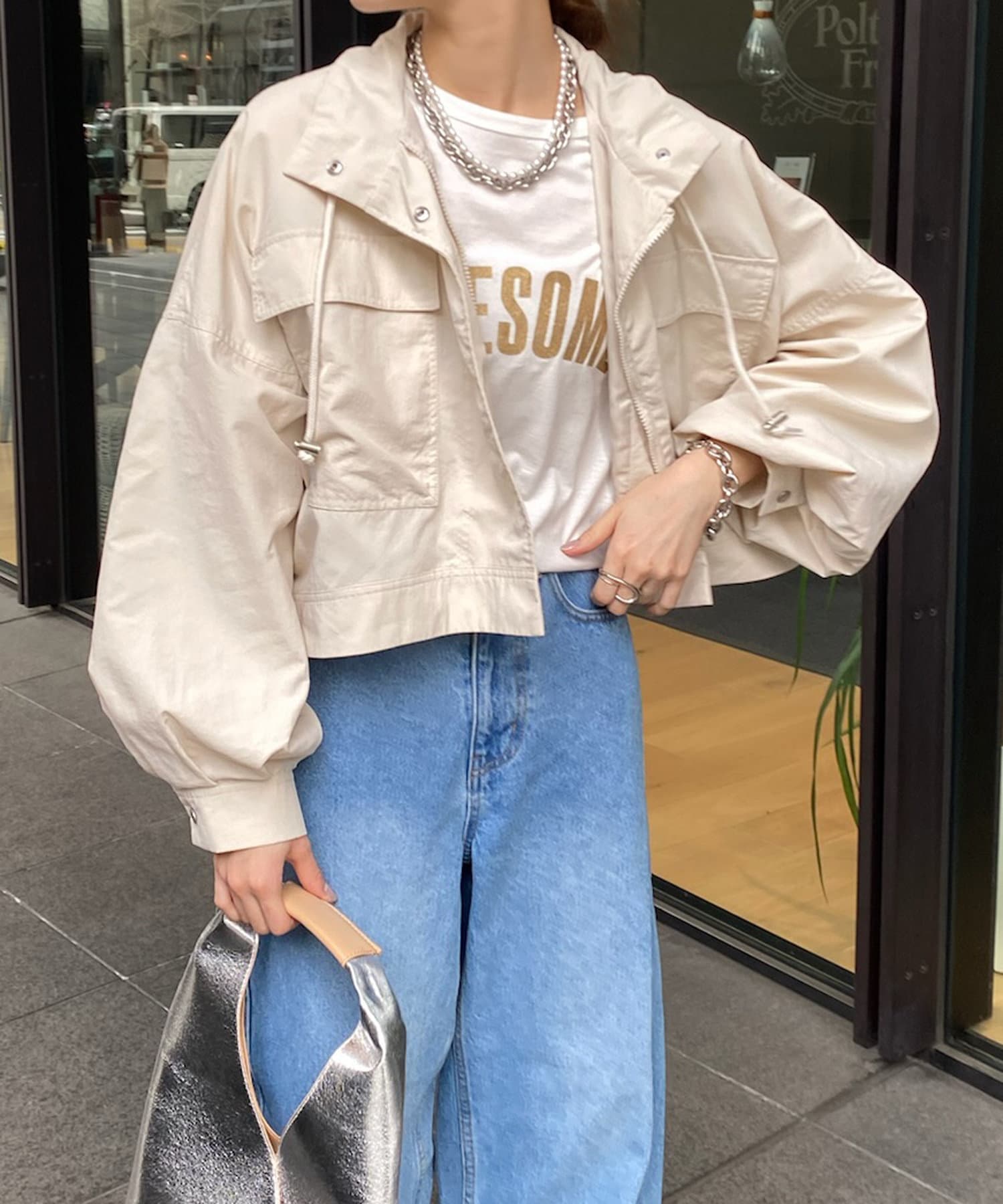 ボリュームのある袖もくしゅっと捲し上げて抜け感をプラスしてみてください◎