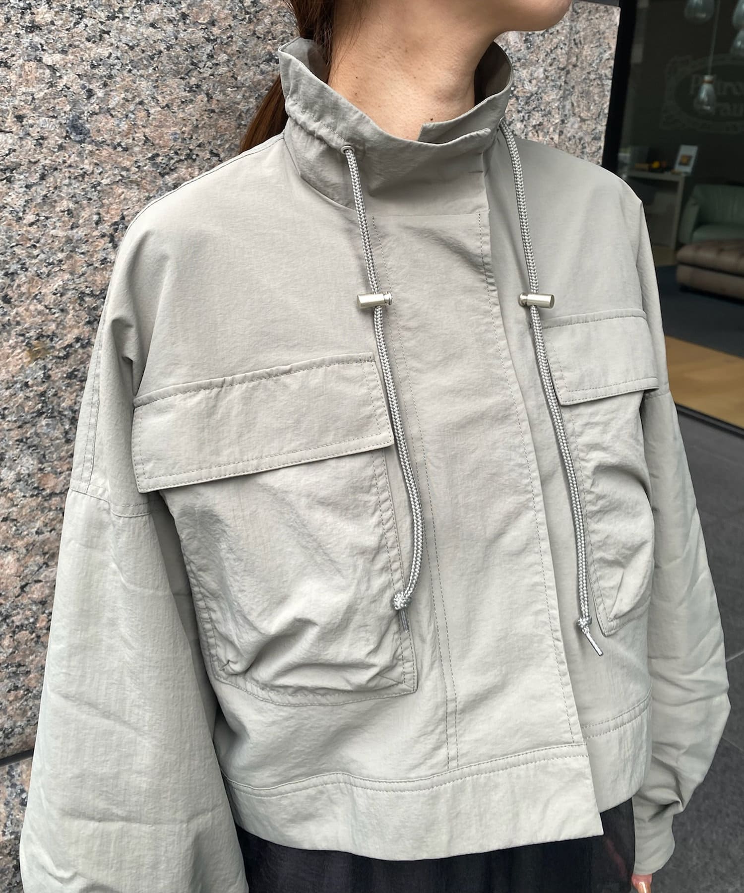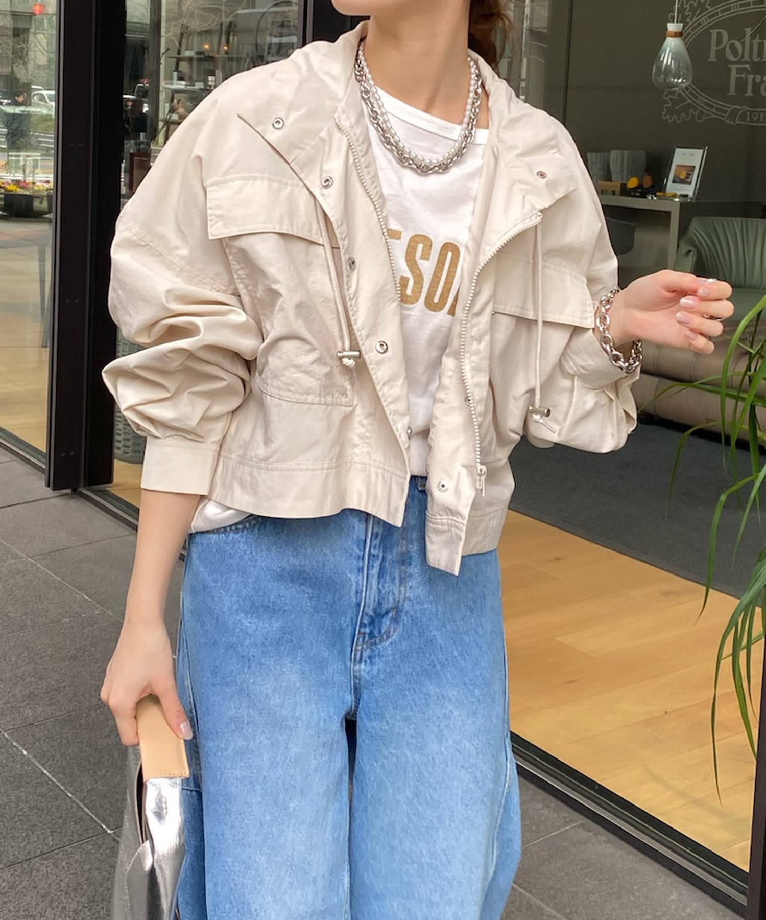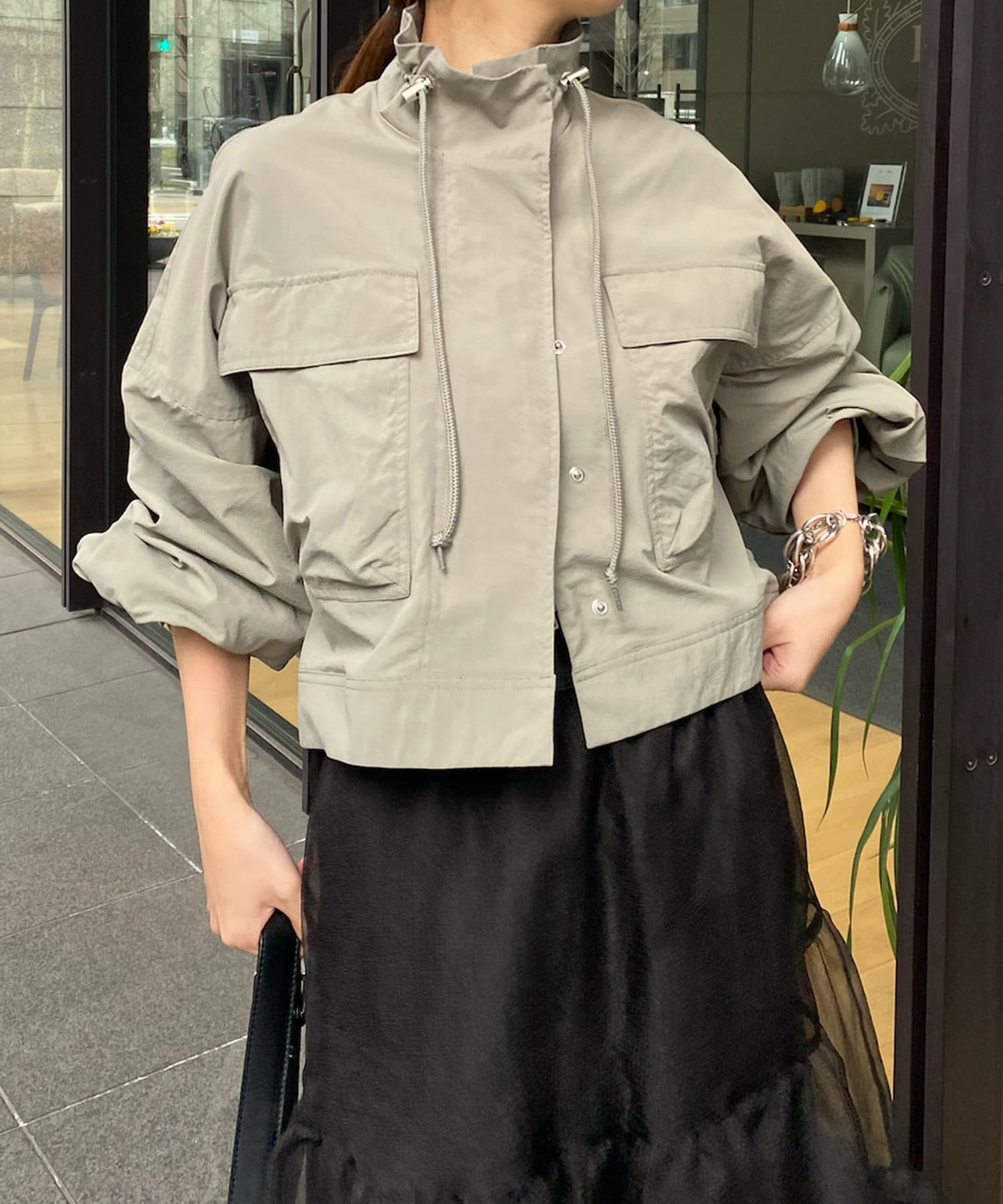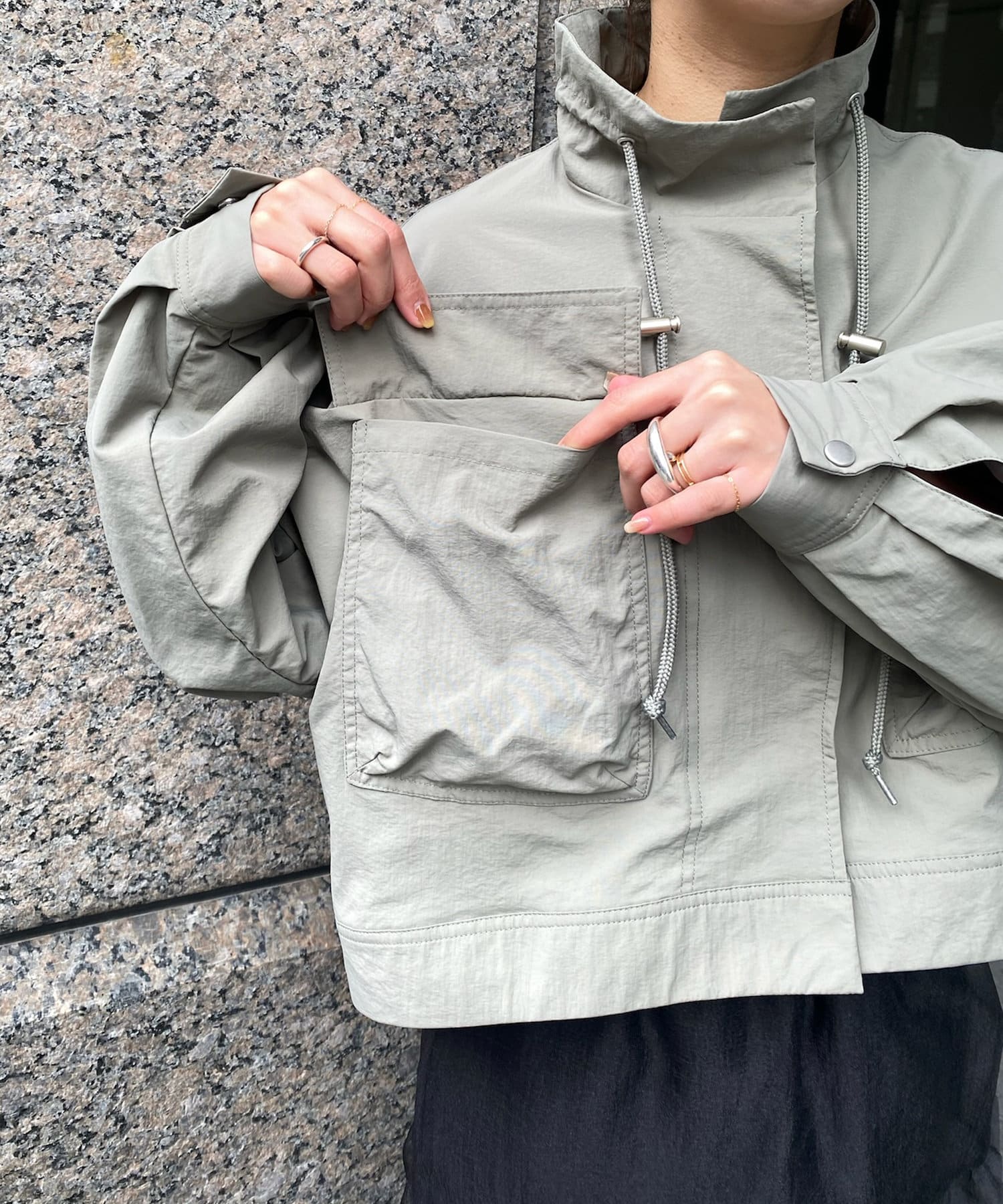 BIGポケットと首元の紐がアクセントになり、襟を立てて着るのも雰囲気を変えることができておすすめです。