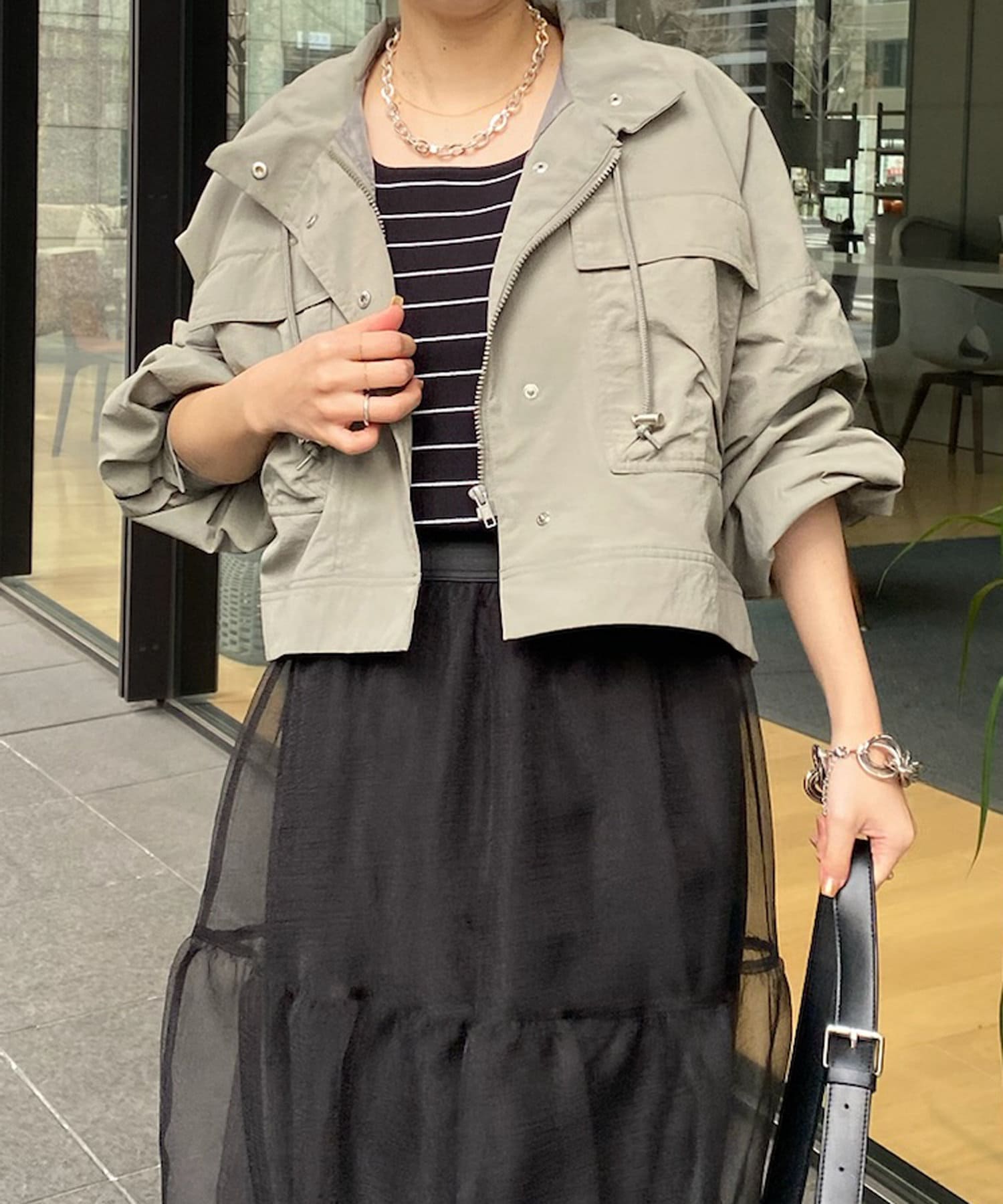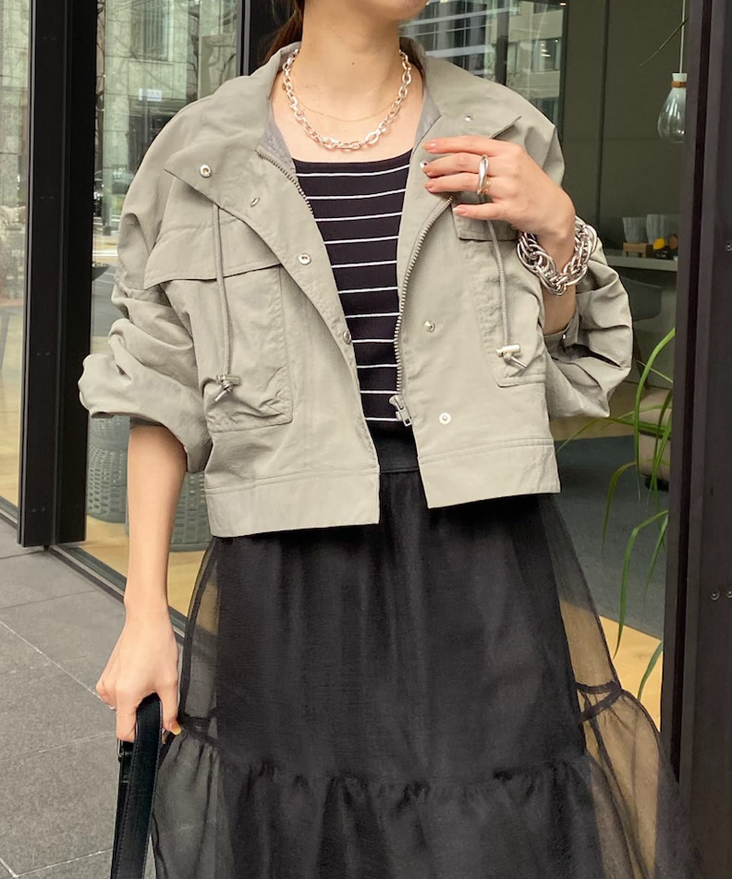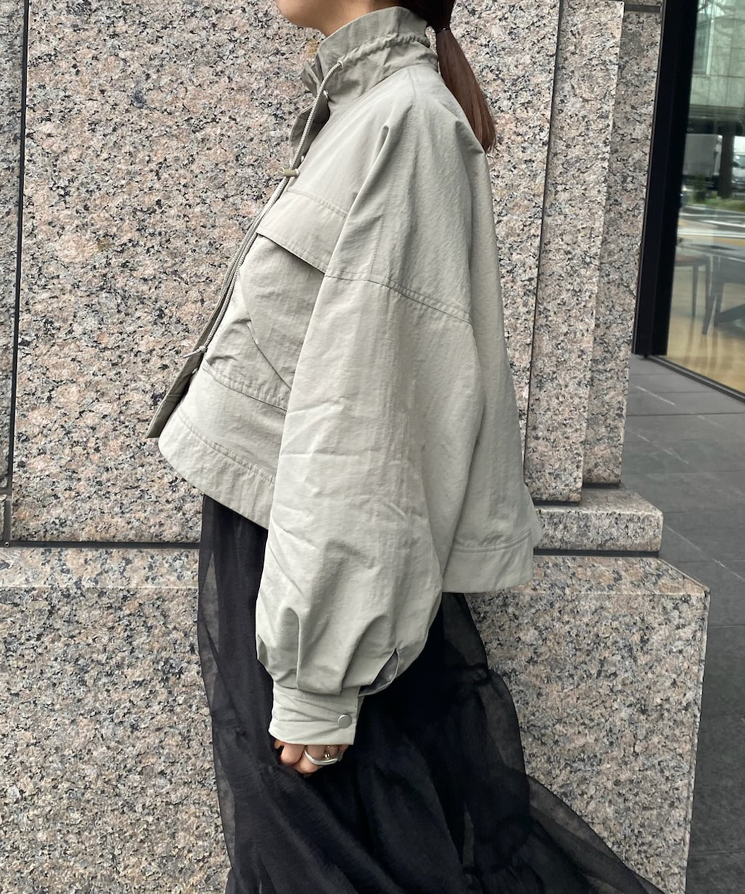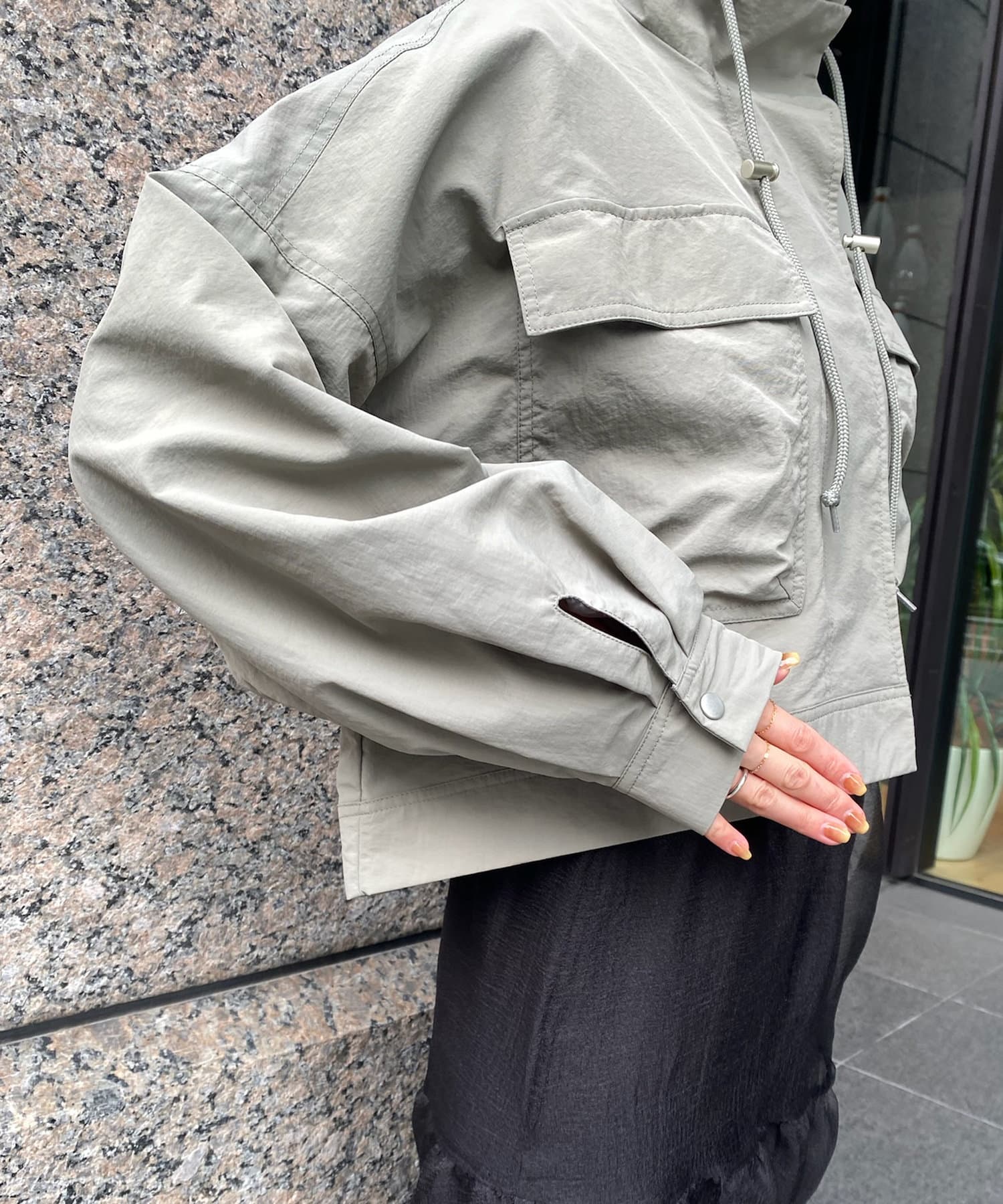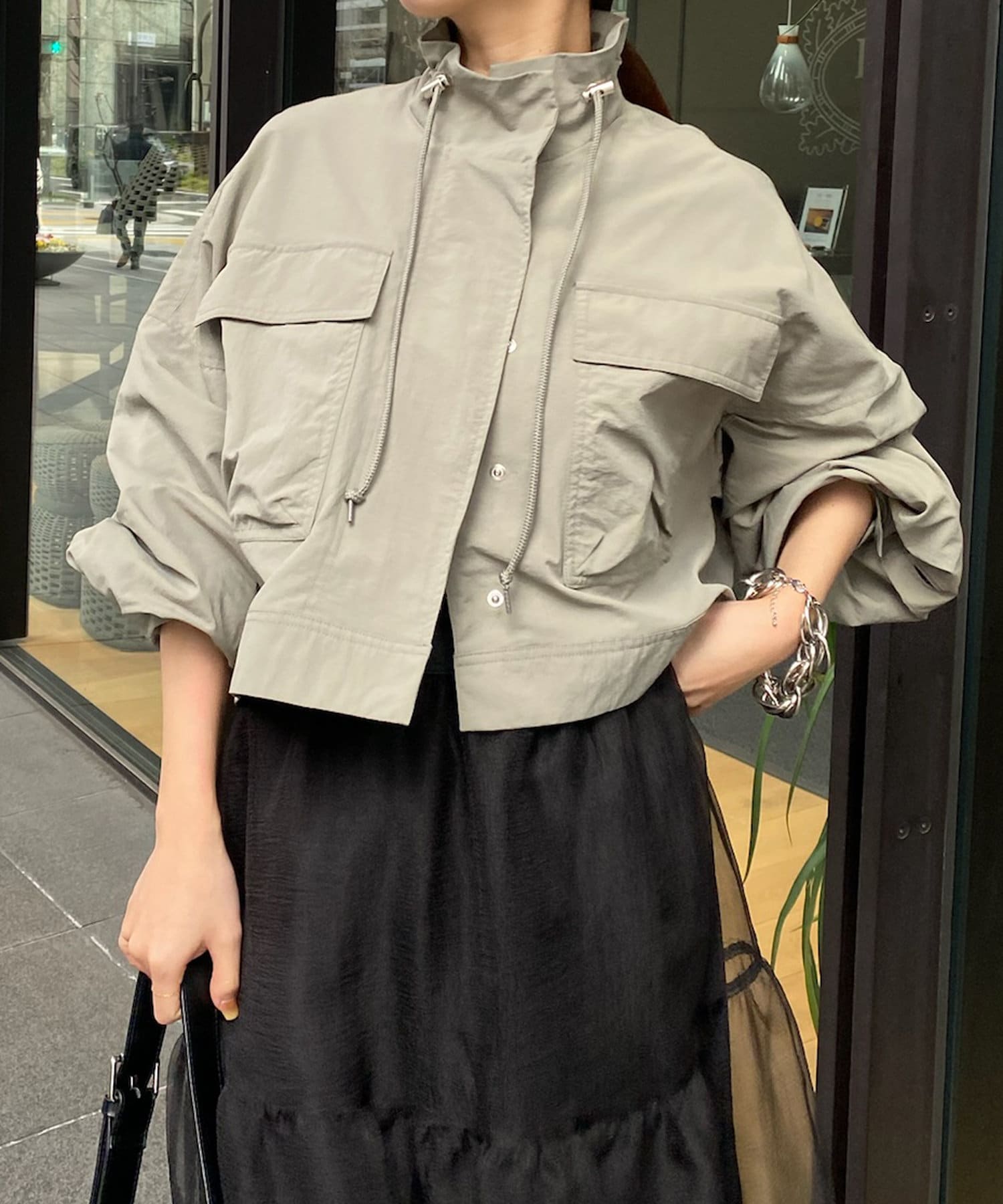BIGポケットと首元の紐がアクセントになり、襟を立てて着るのも雰囲気を変えることができておすすめです。