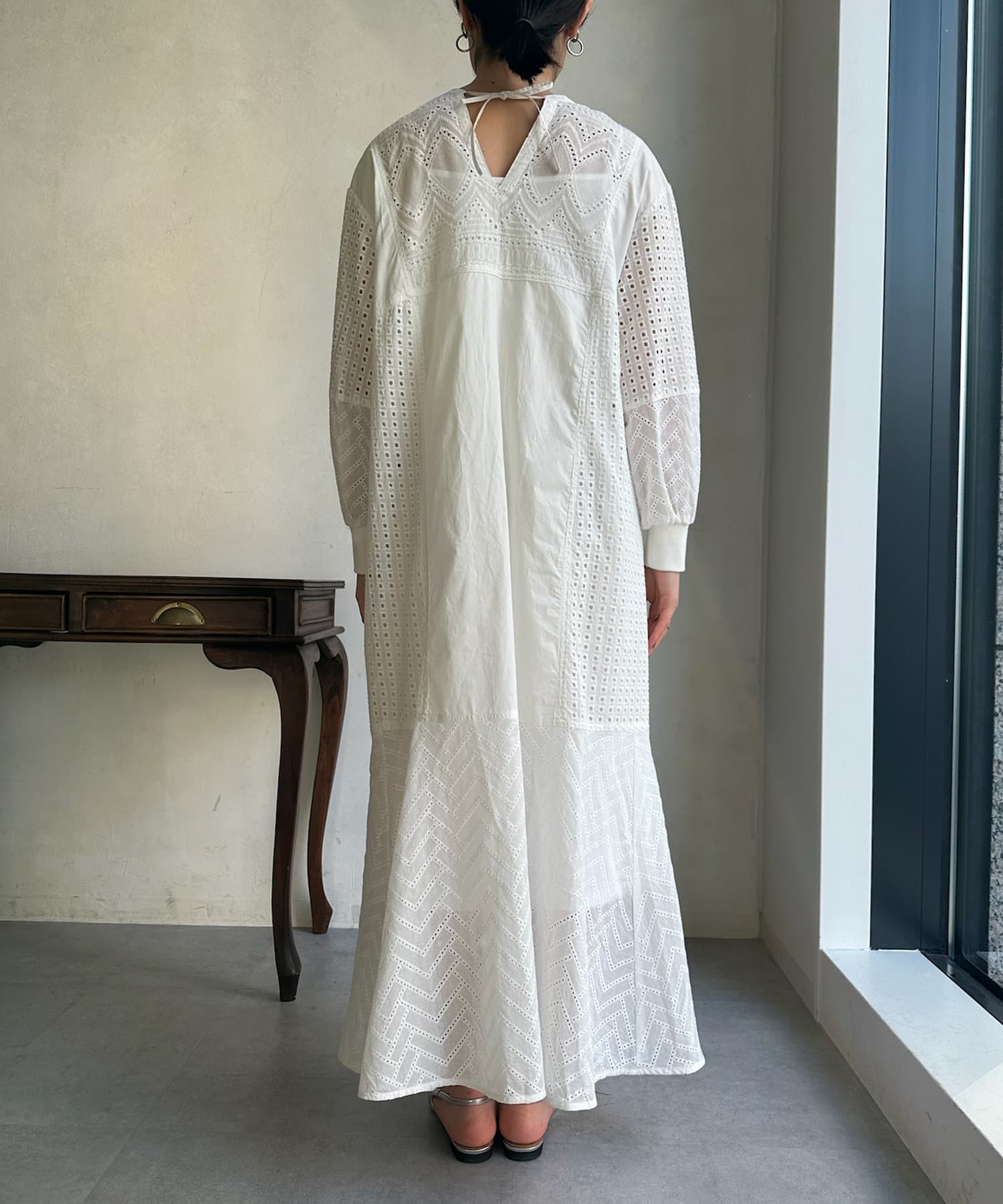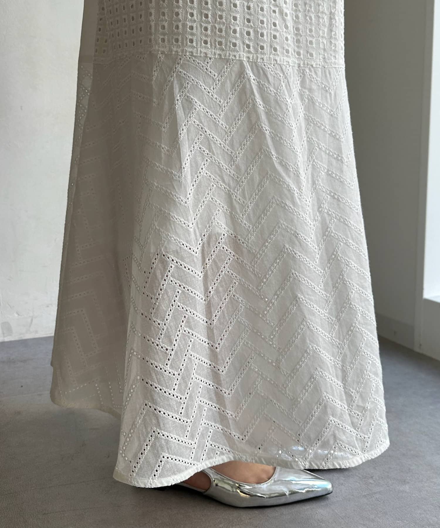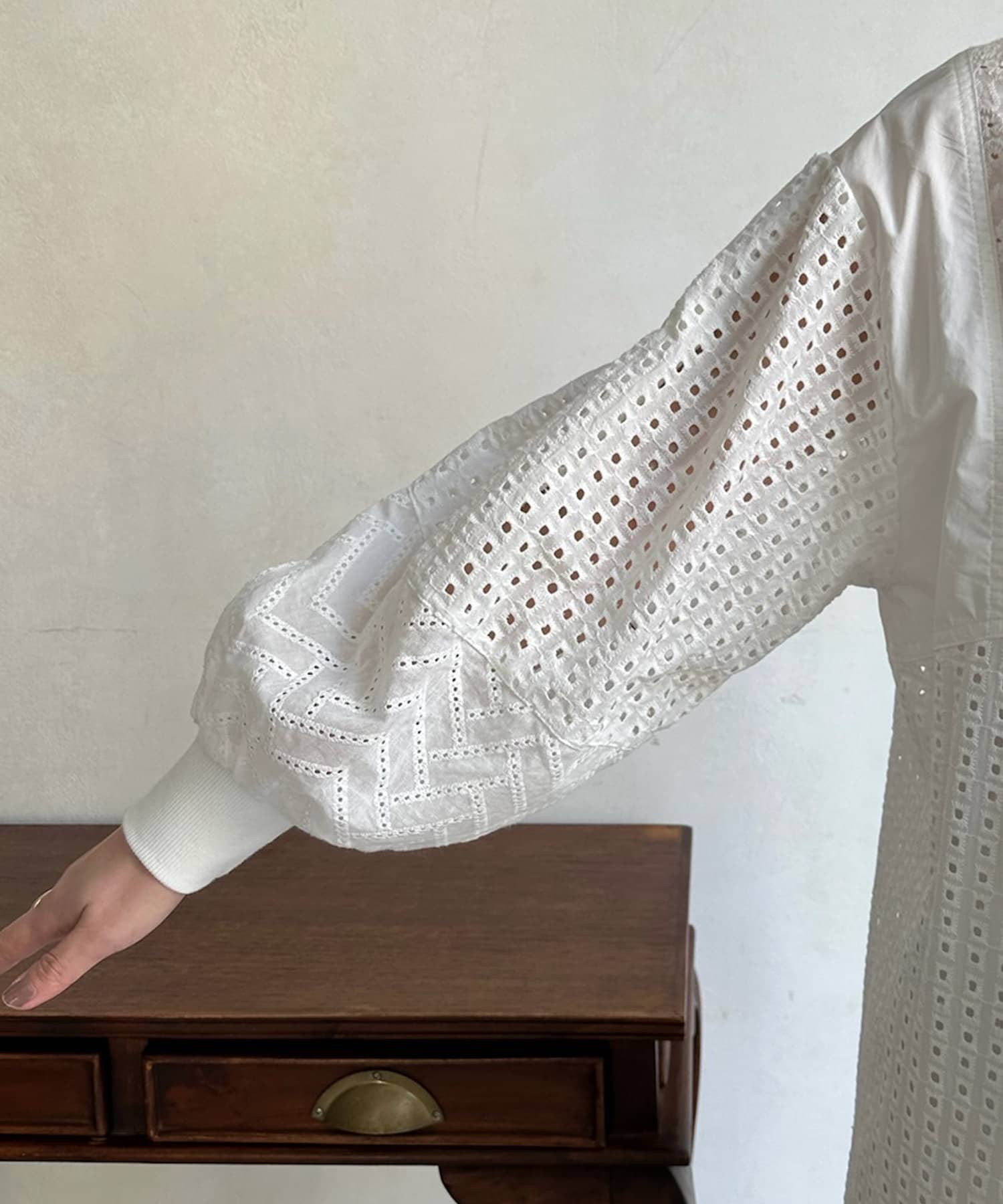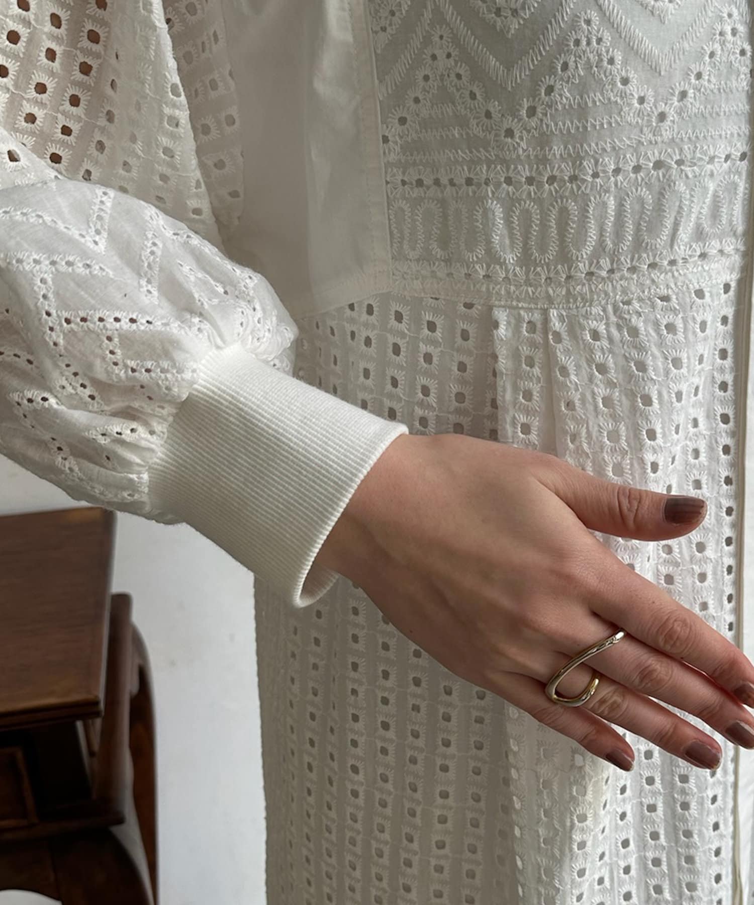 レースの柄を切り替え、表情感のある1着に仕上げました。