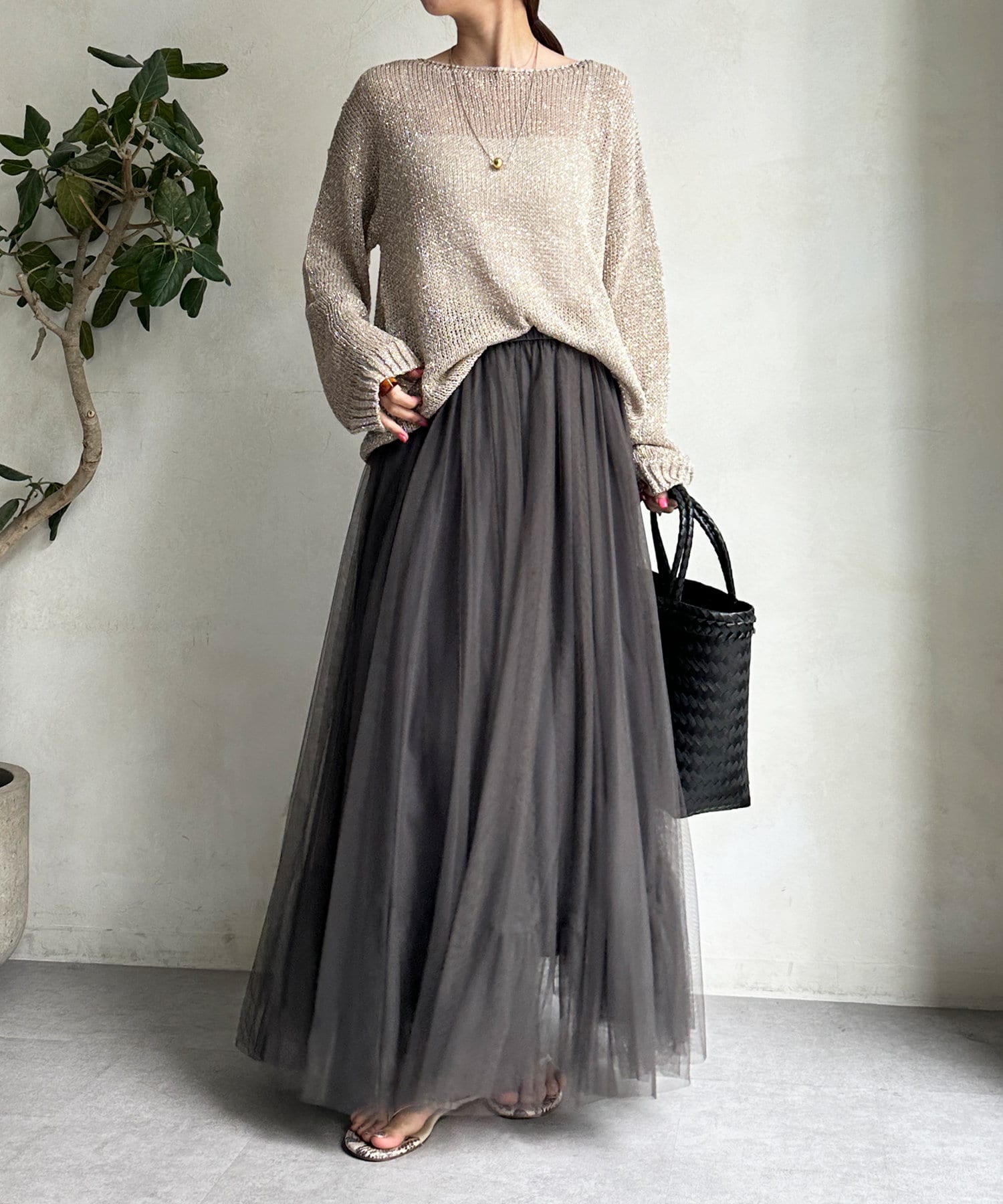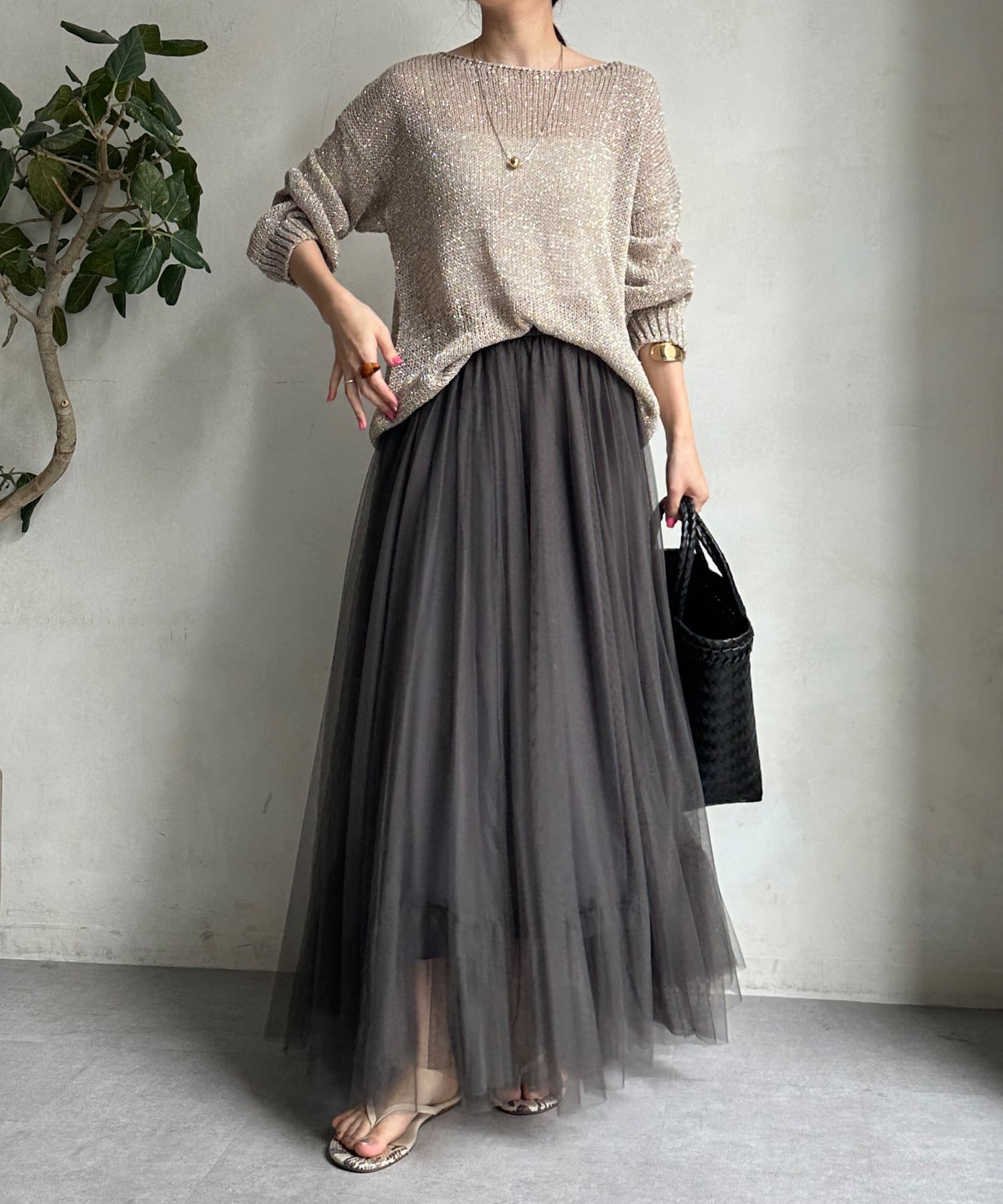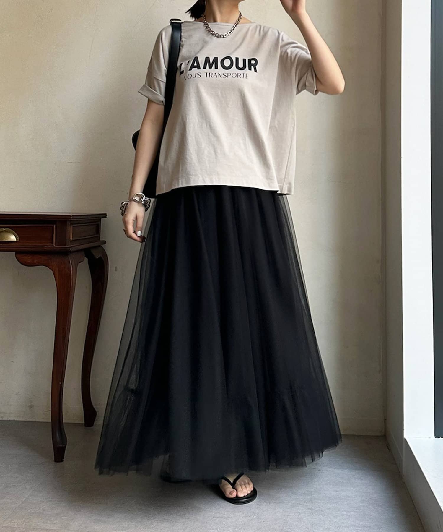 華やかに広がるチュールのスカート。