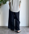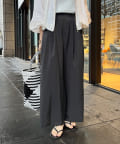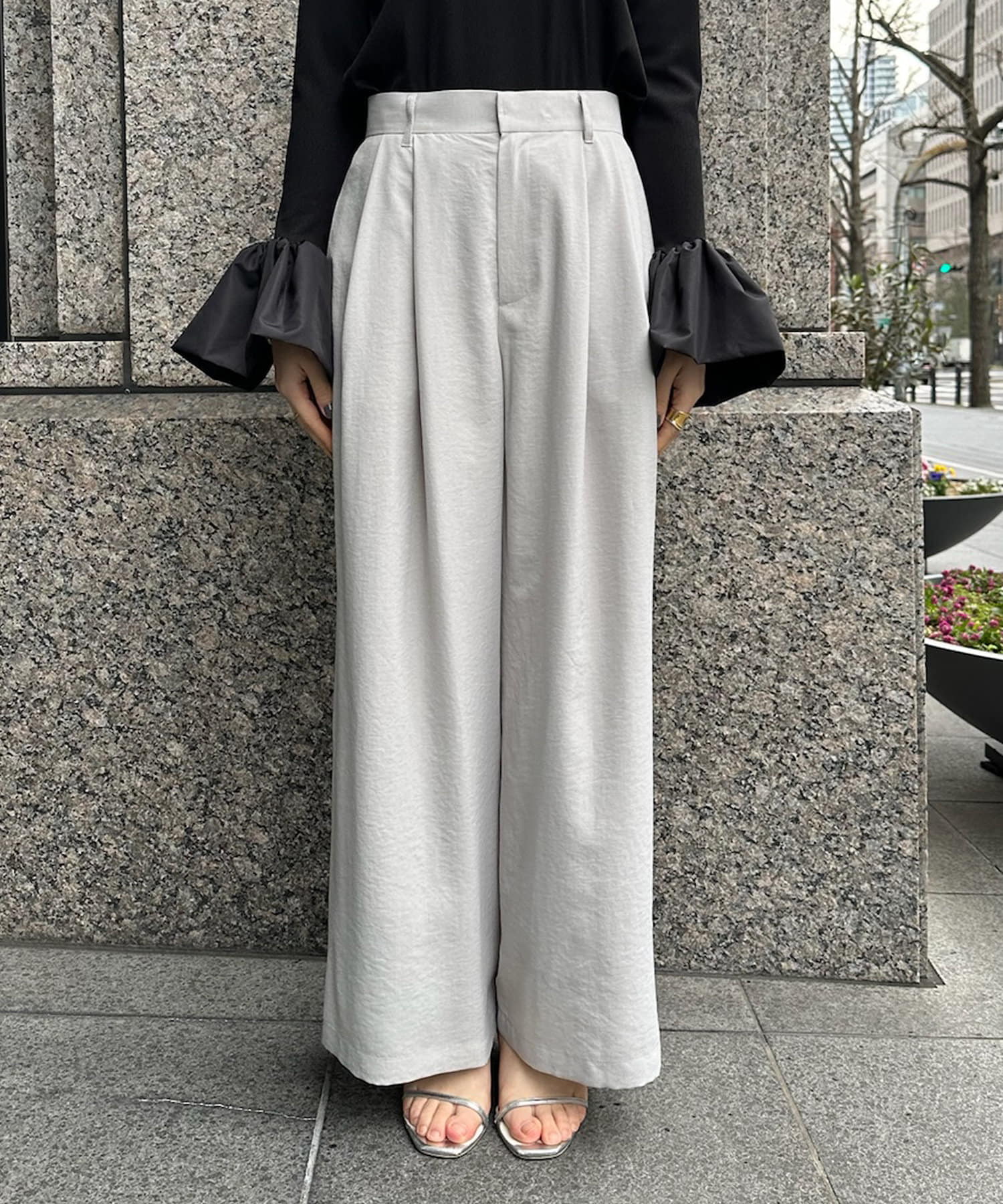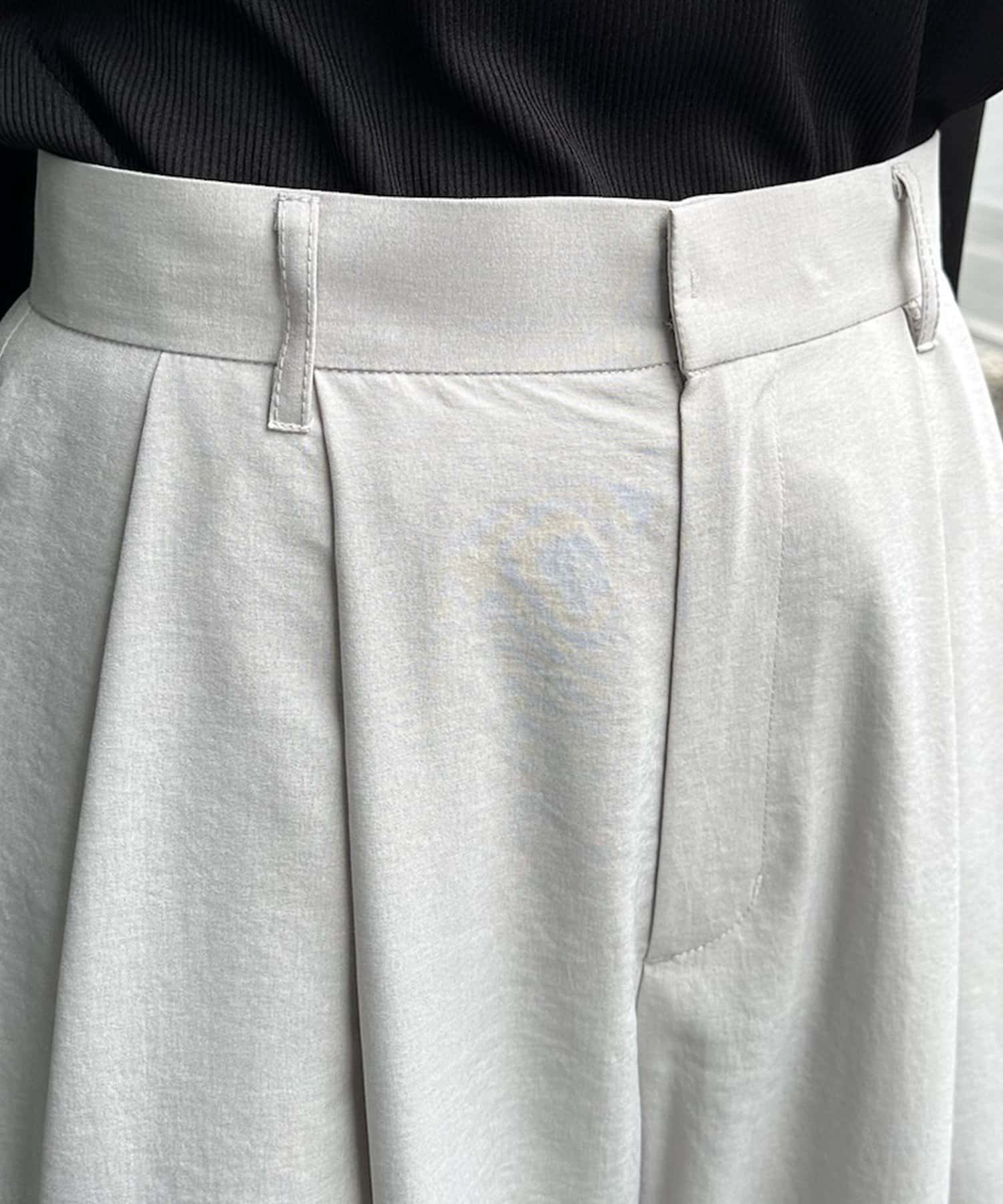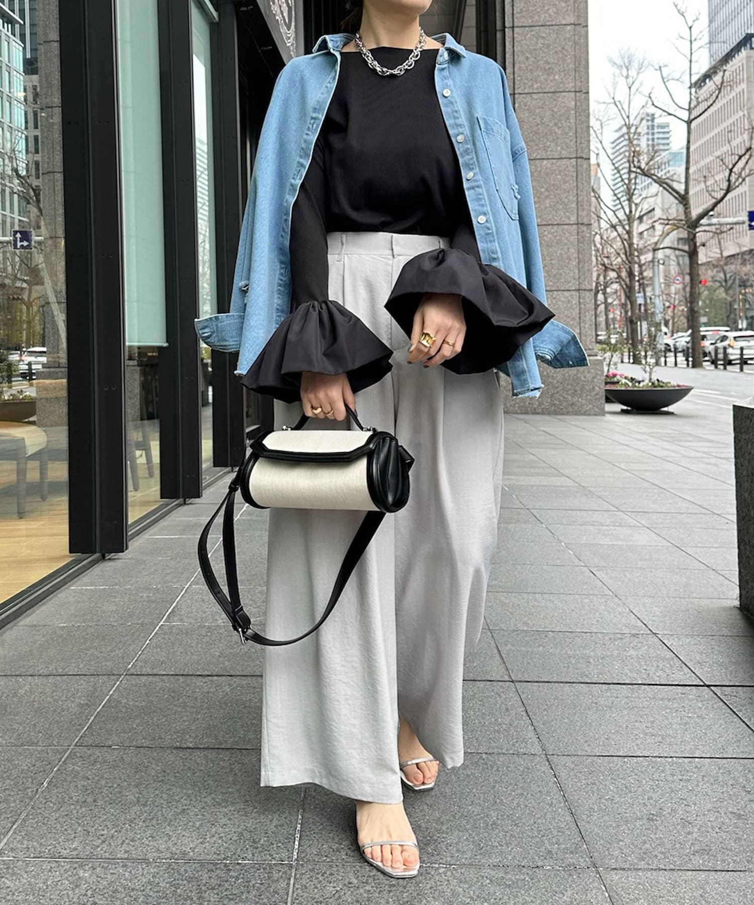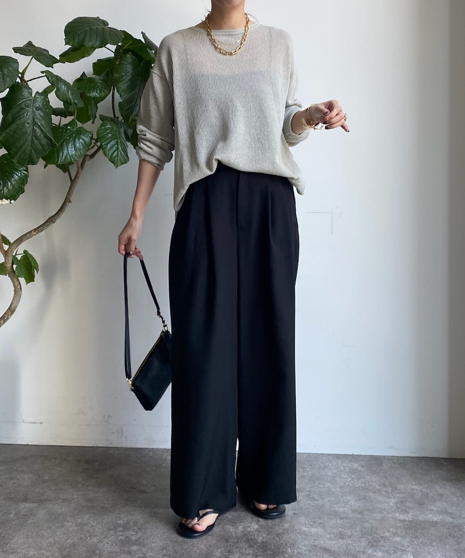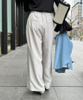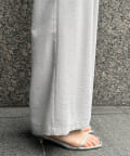 ワイドなシルエットは、脚のラインを拾わずイージー。