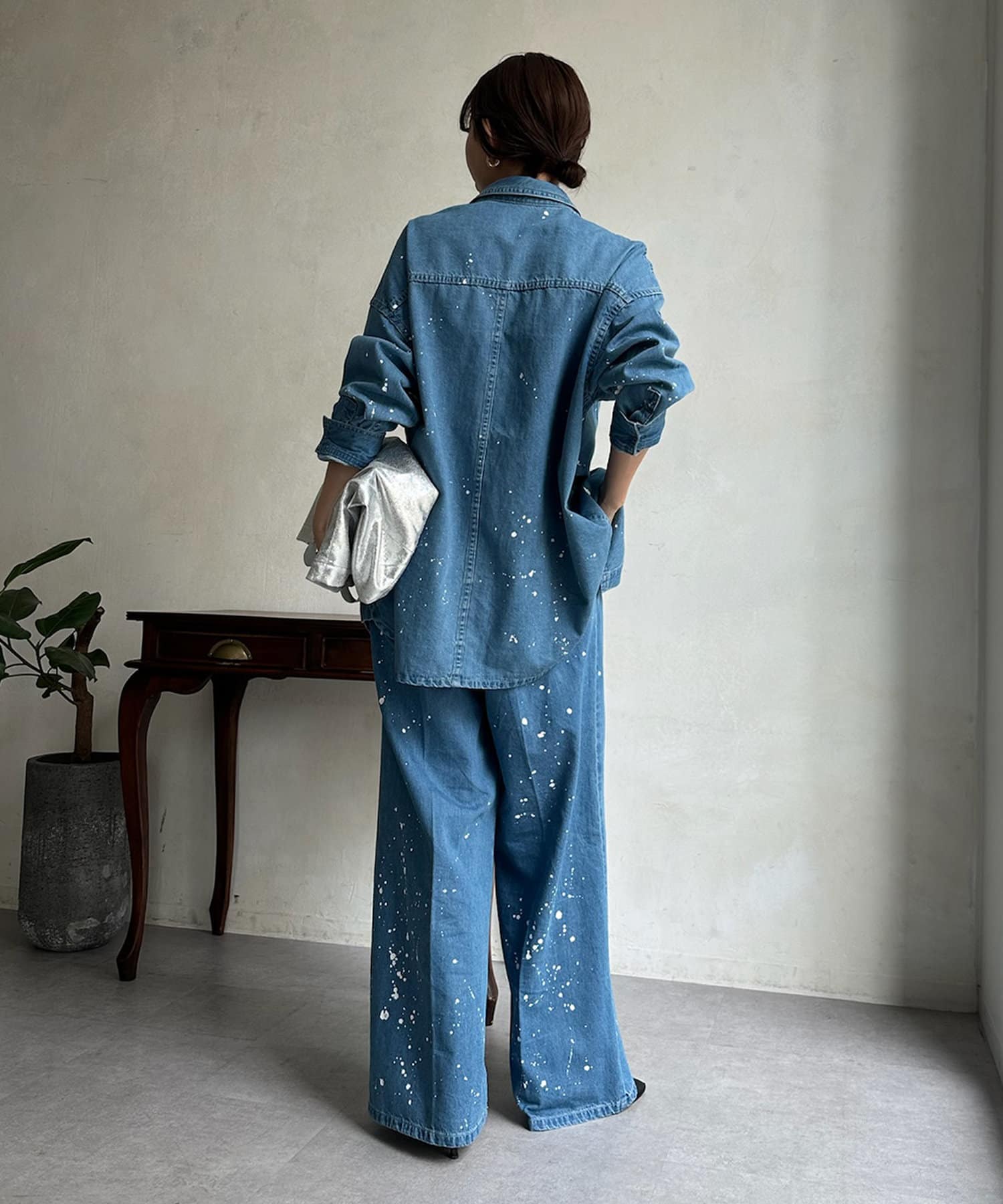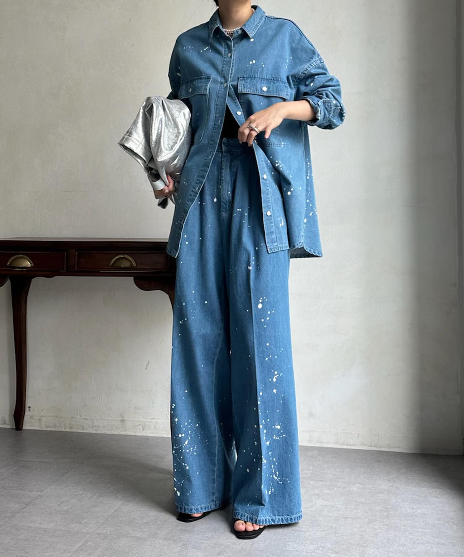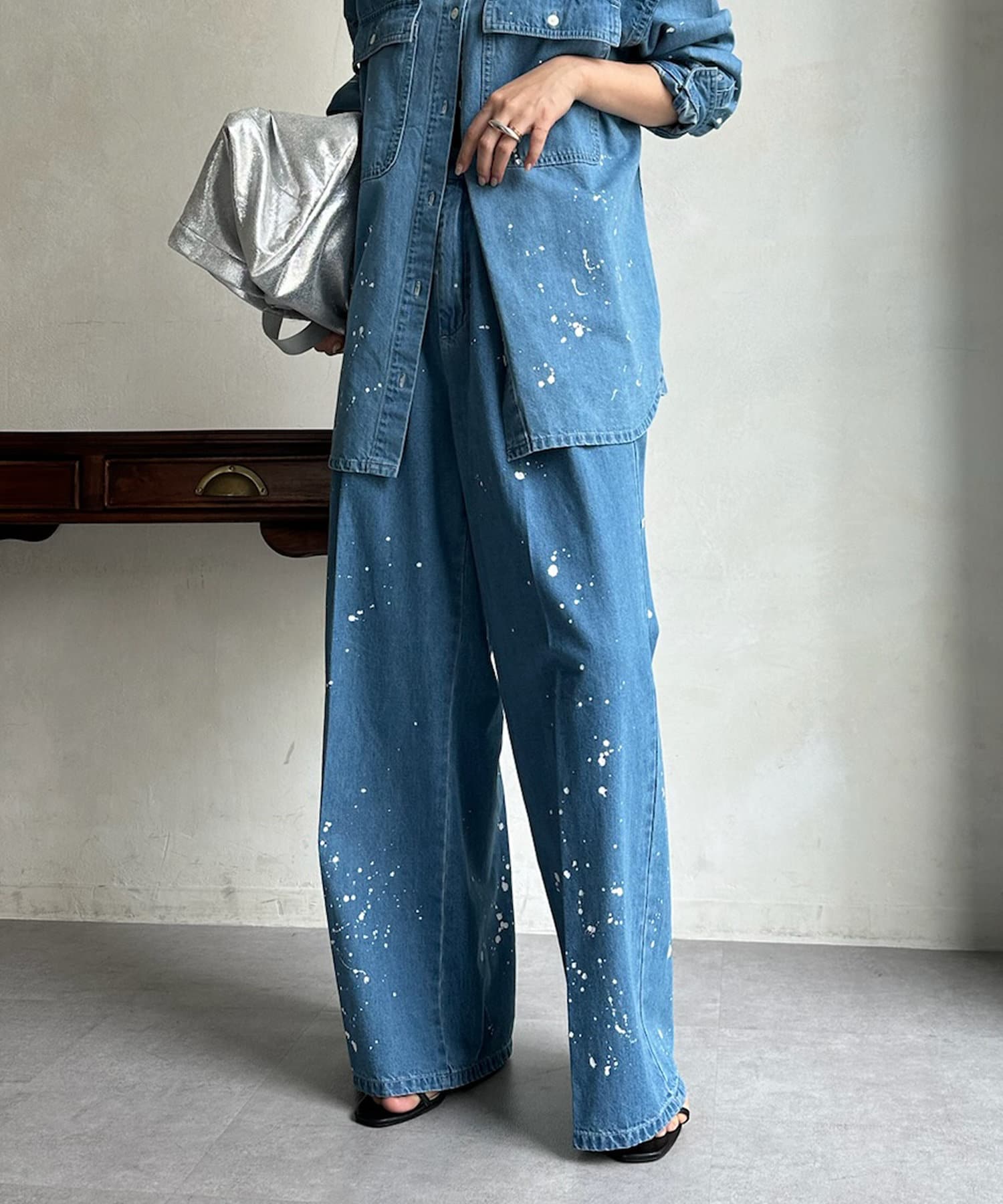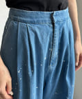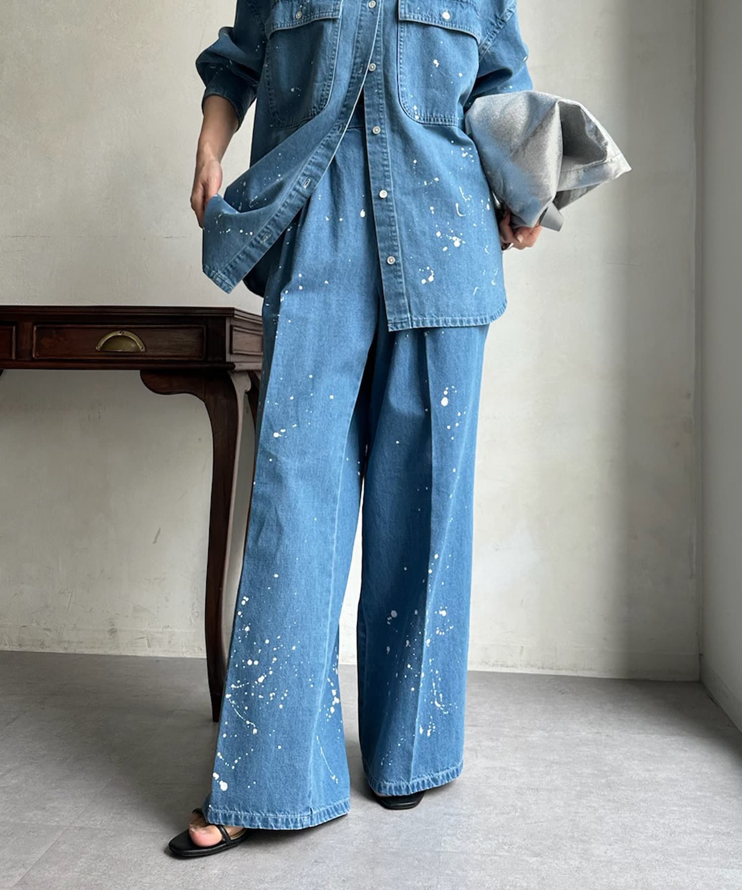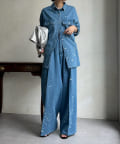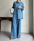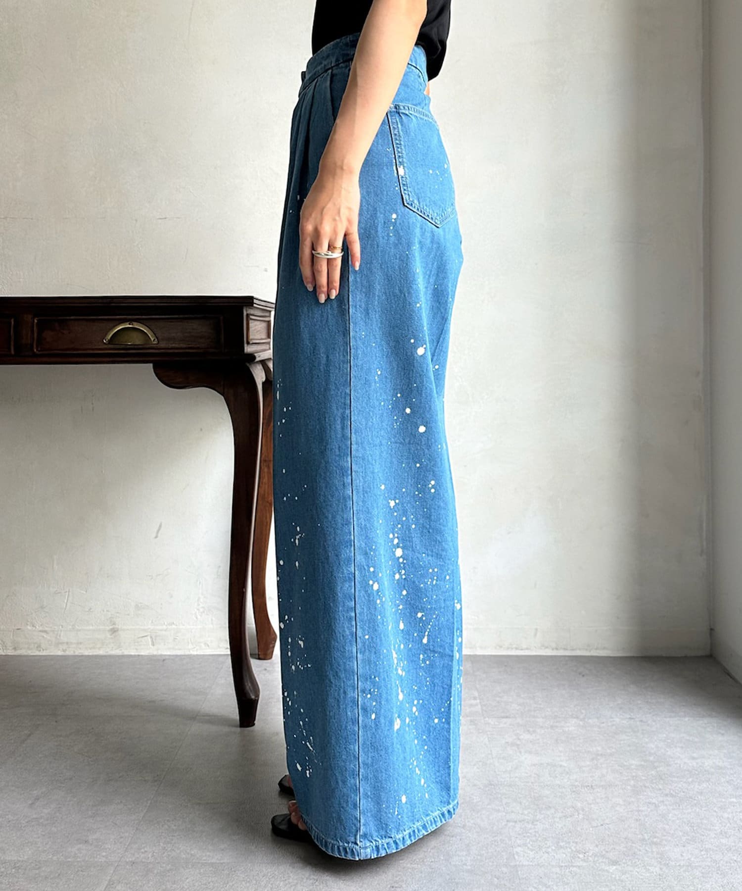 脚のラインを拾わず、ゆるやかに広がるワイドシルエットが魅力の1着です。
