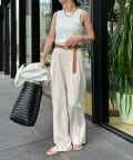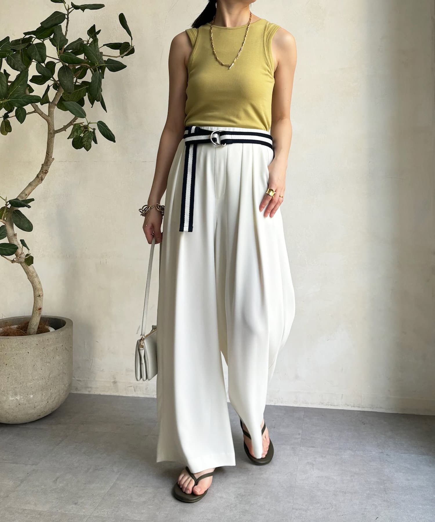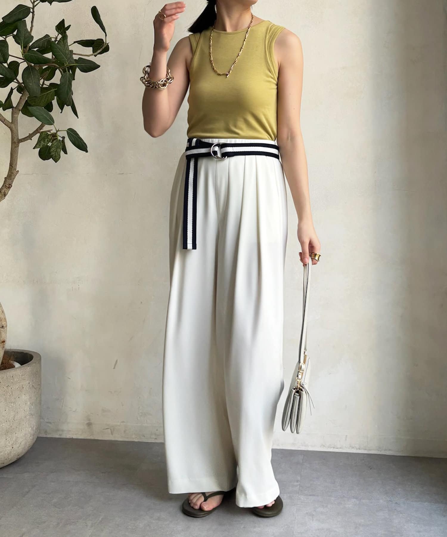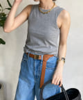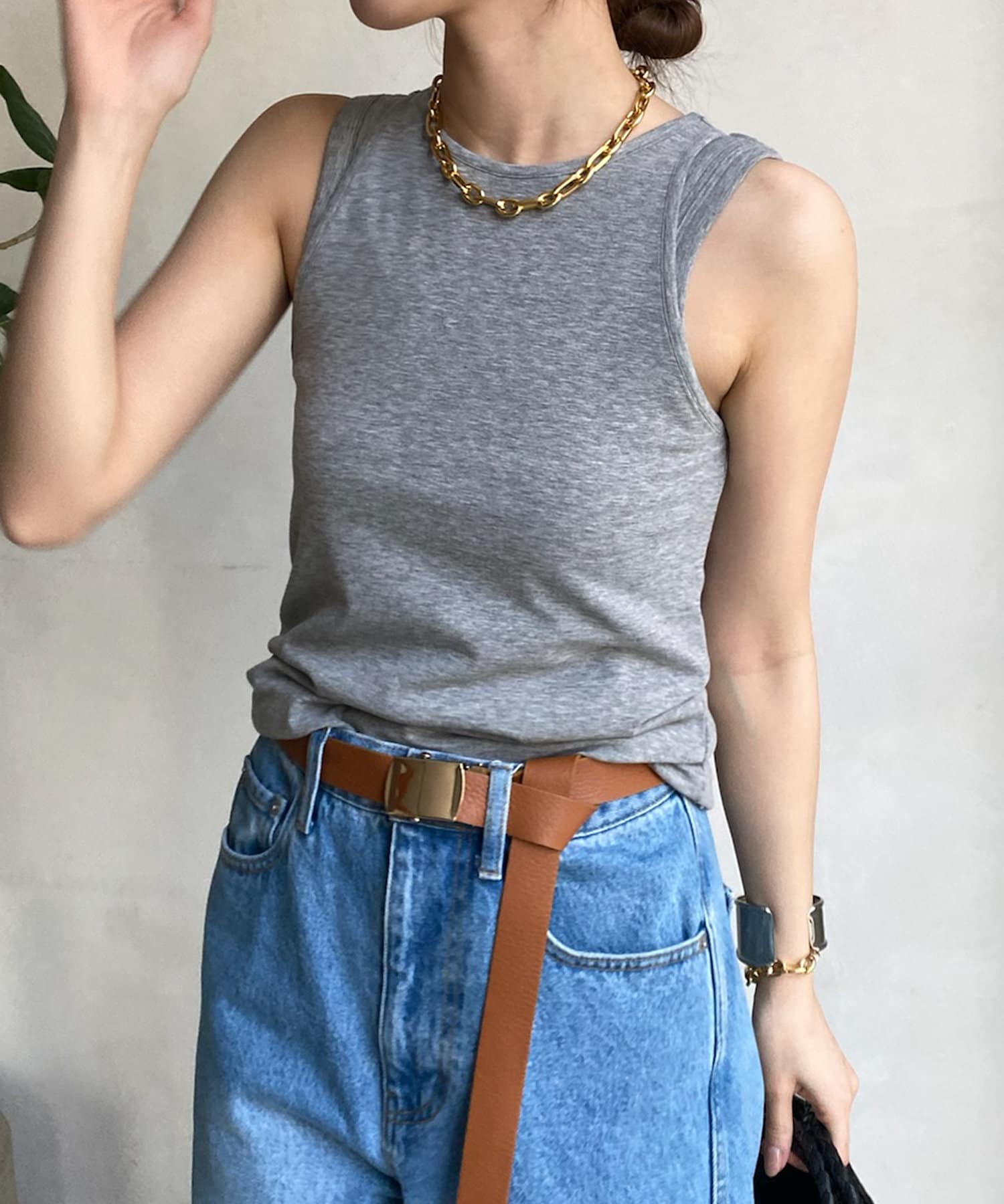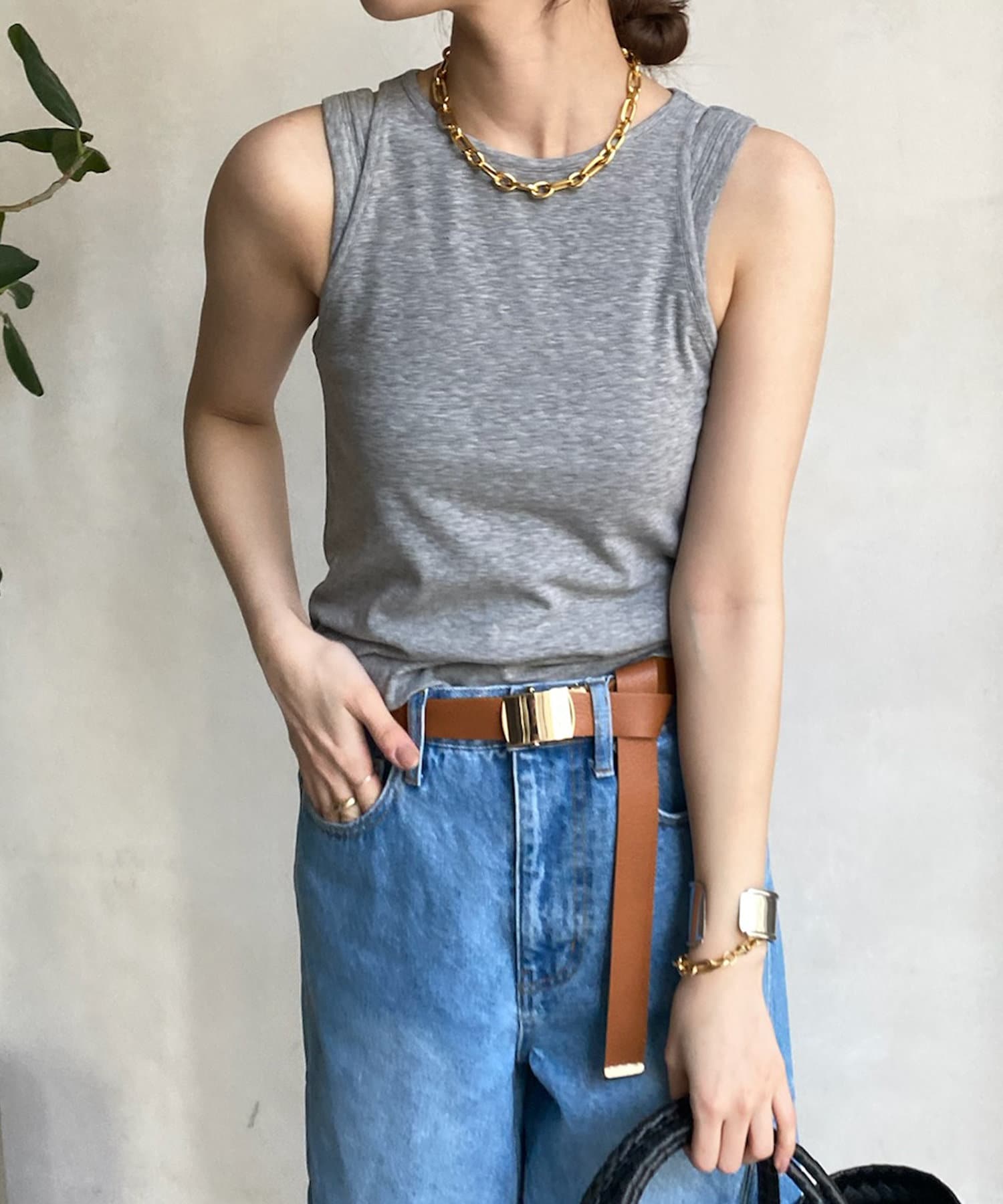 シャツやジャケットのインナー遣いにはもちろん、真夏にはヘルシーに1枚で着るのもとっても素敵です。
