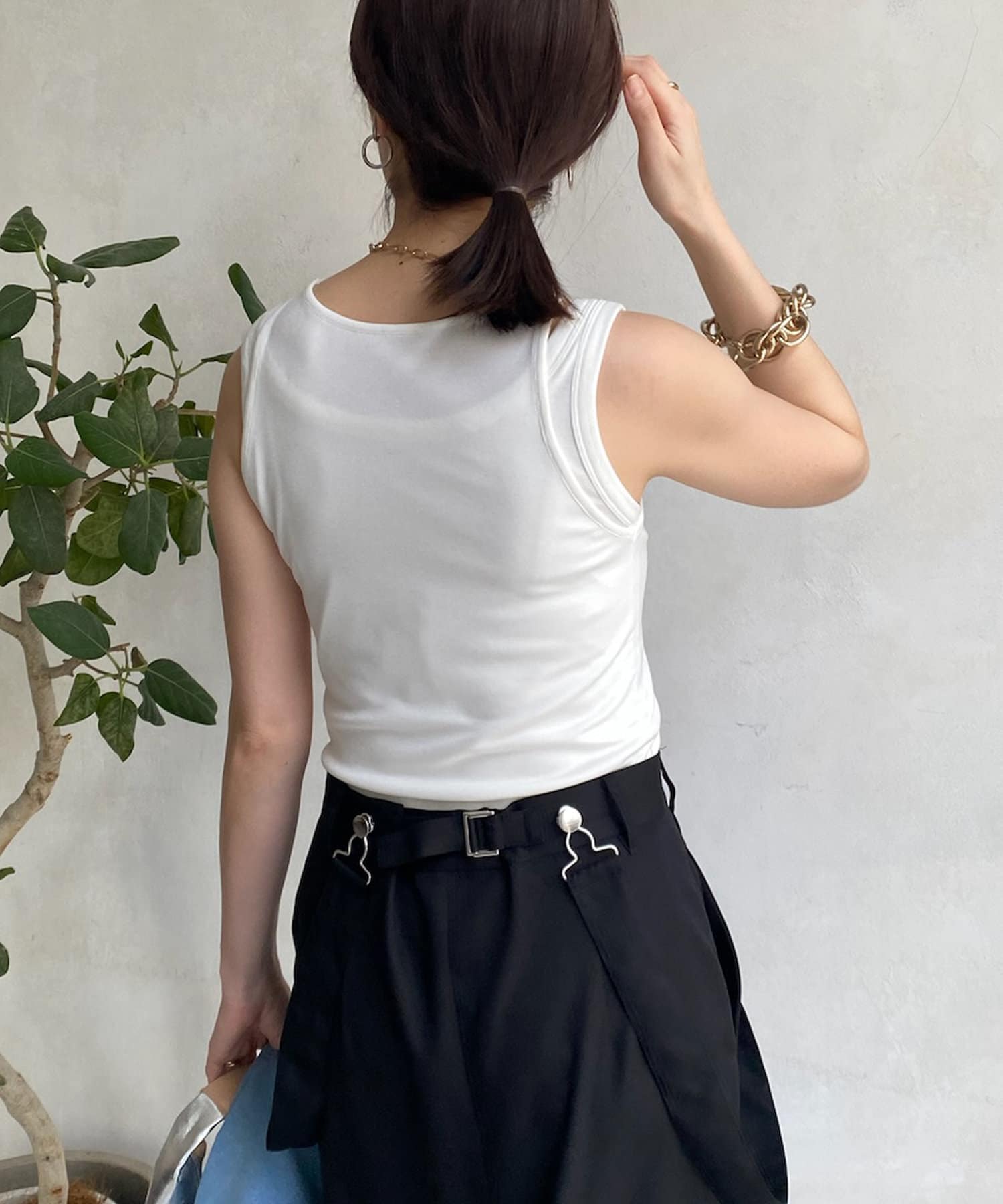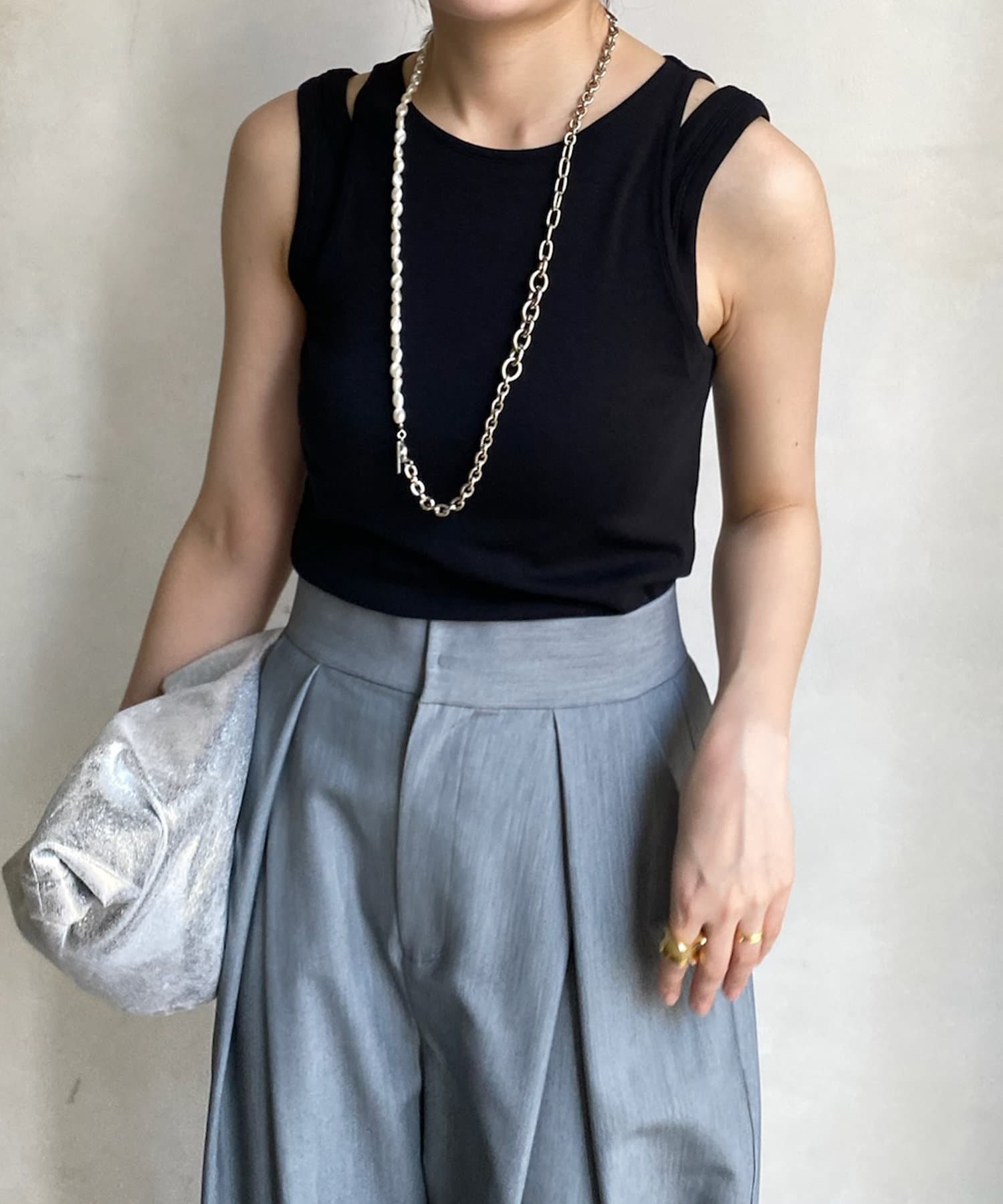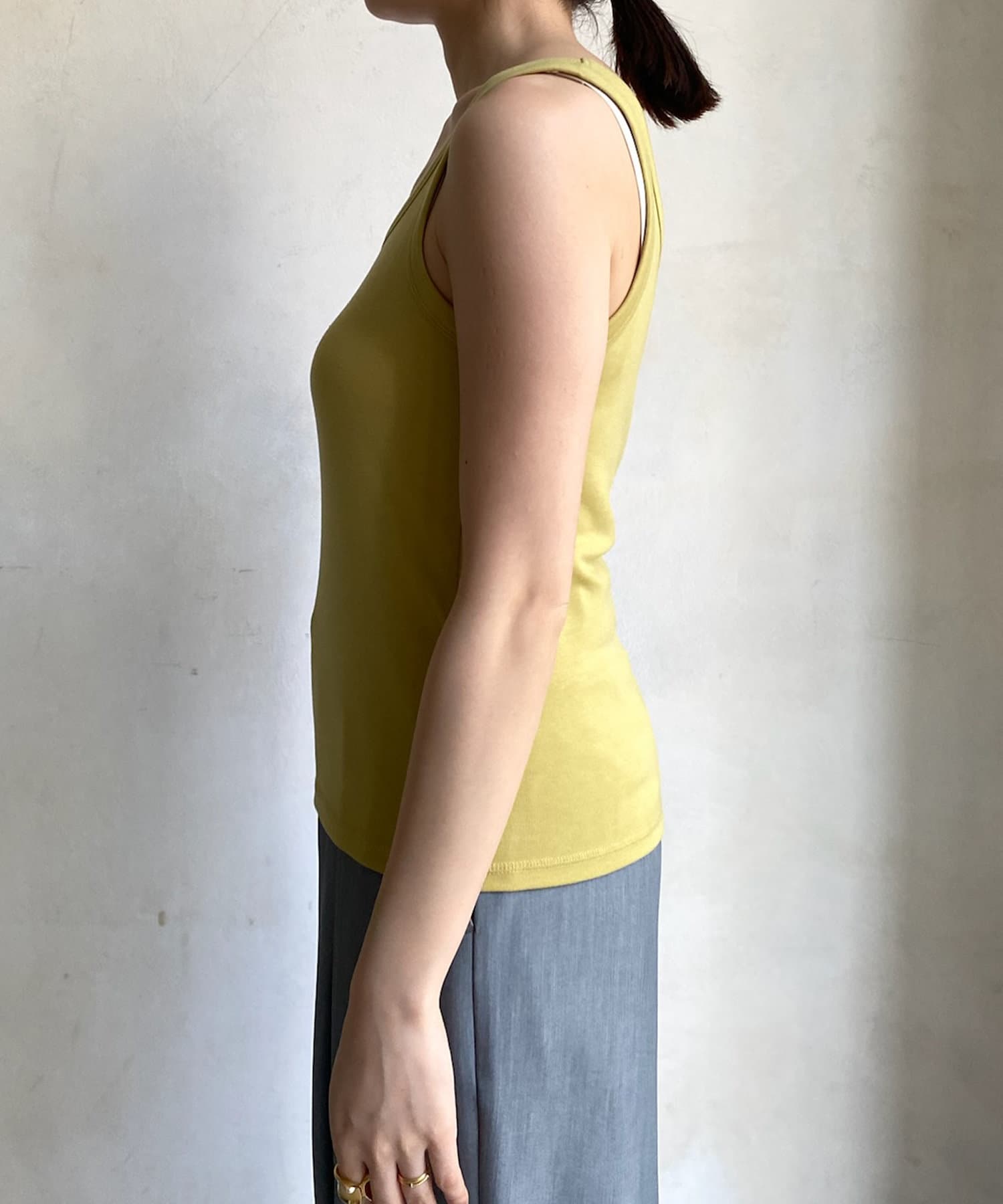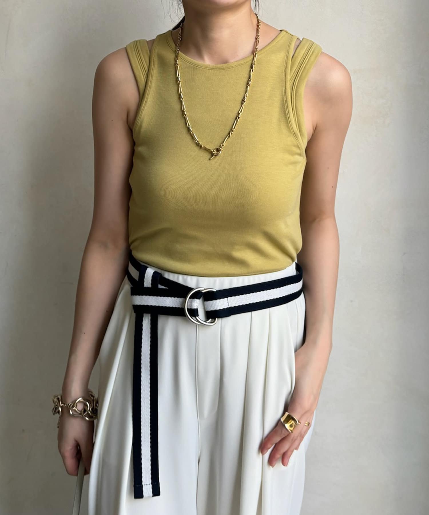 少しディティールの違うタンクトップを2枚重ねて着るアイテム。