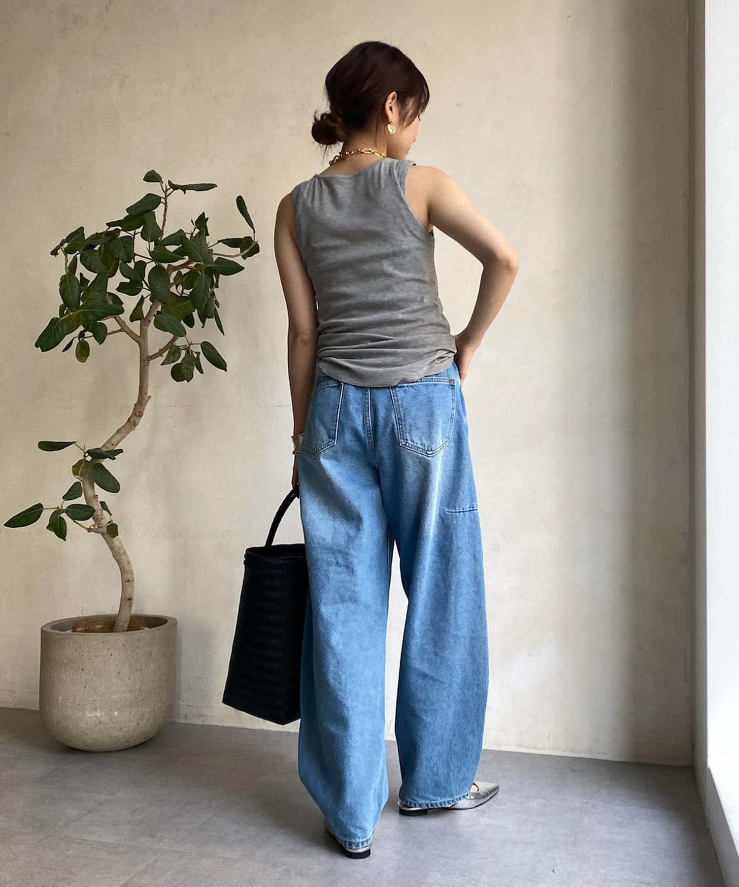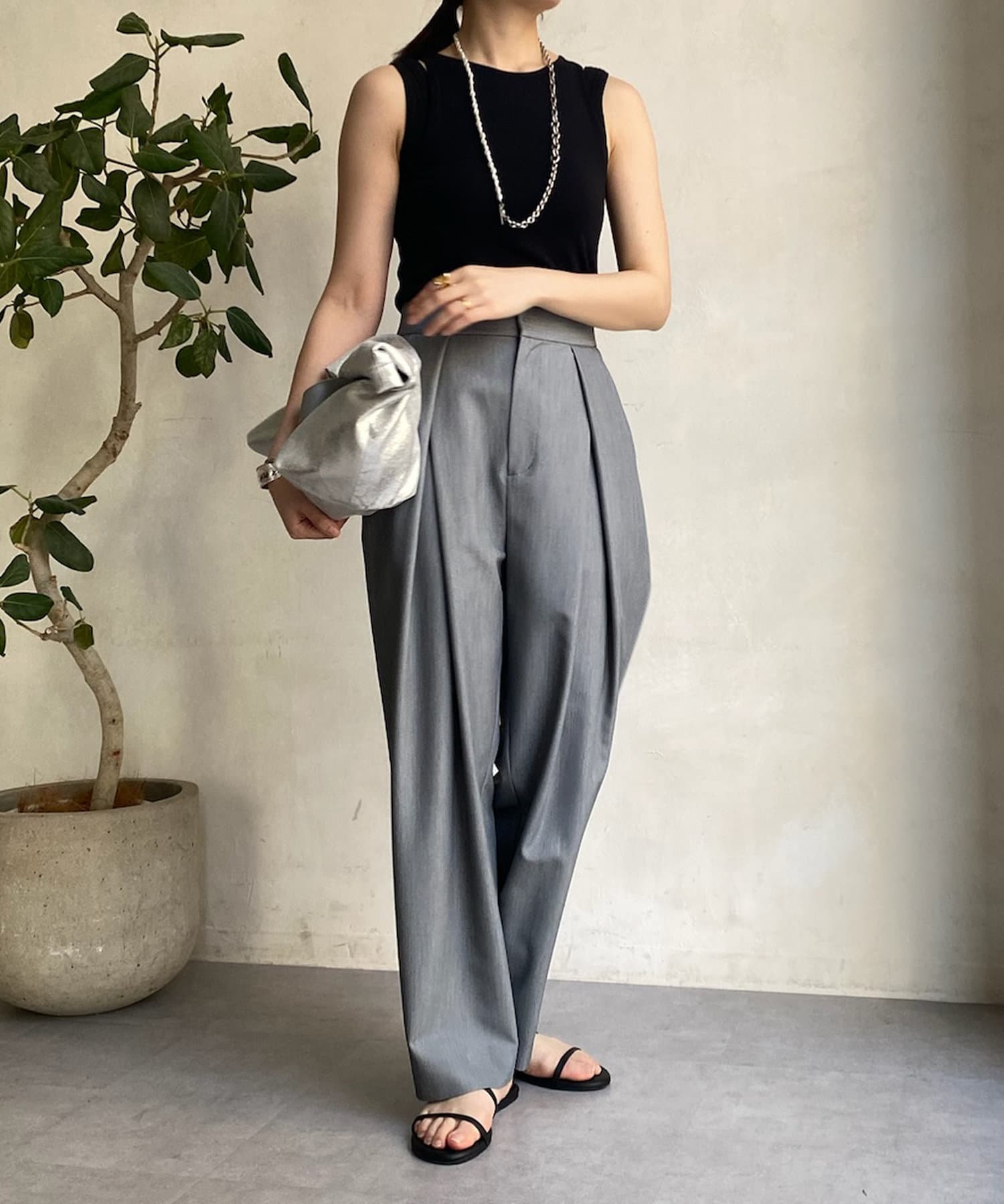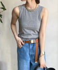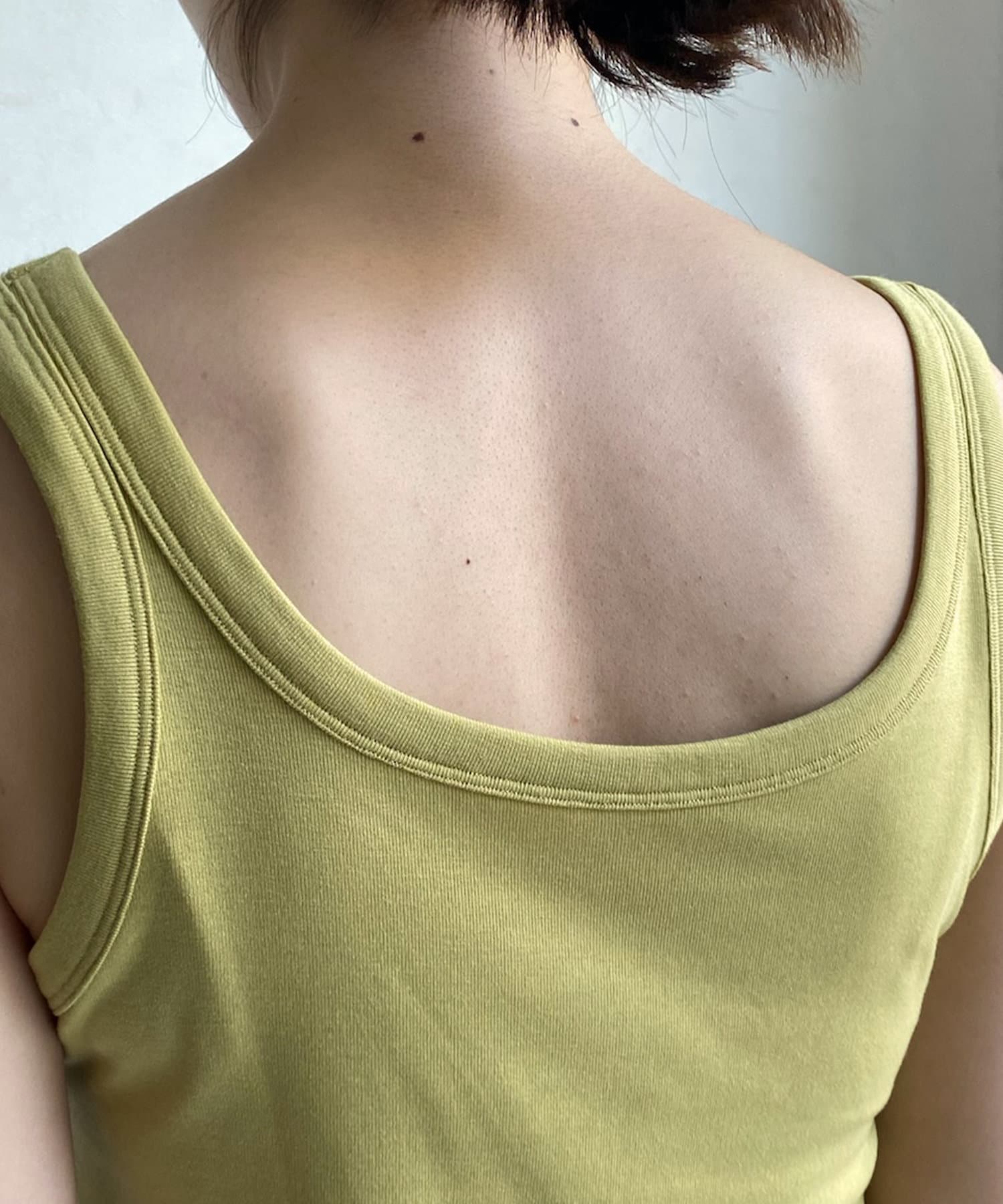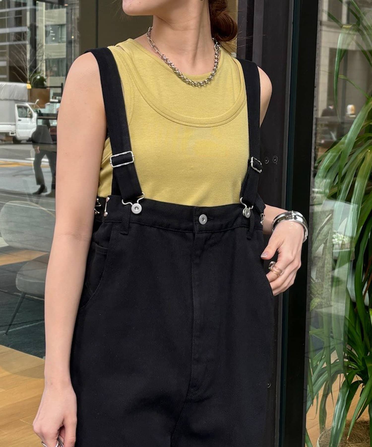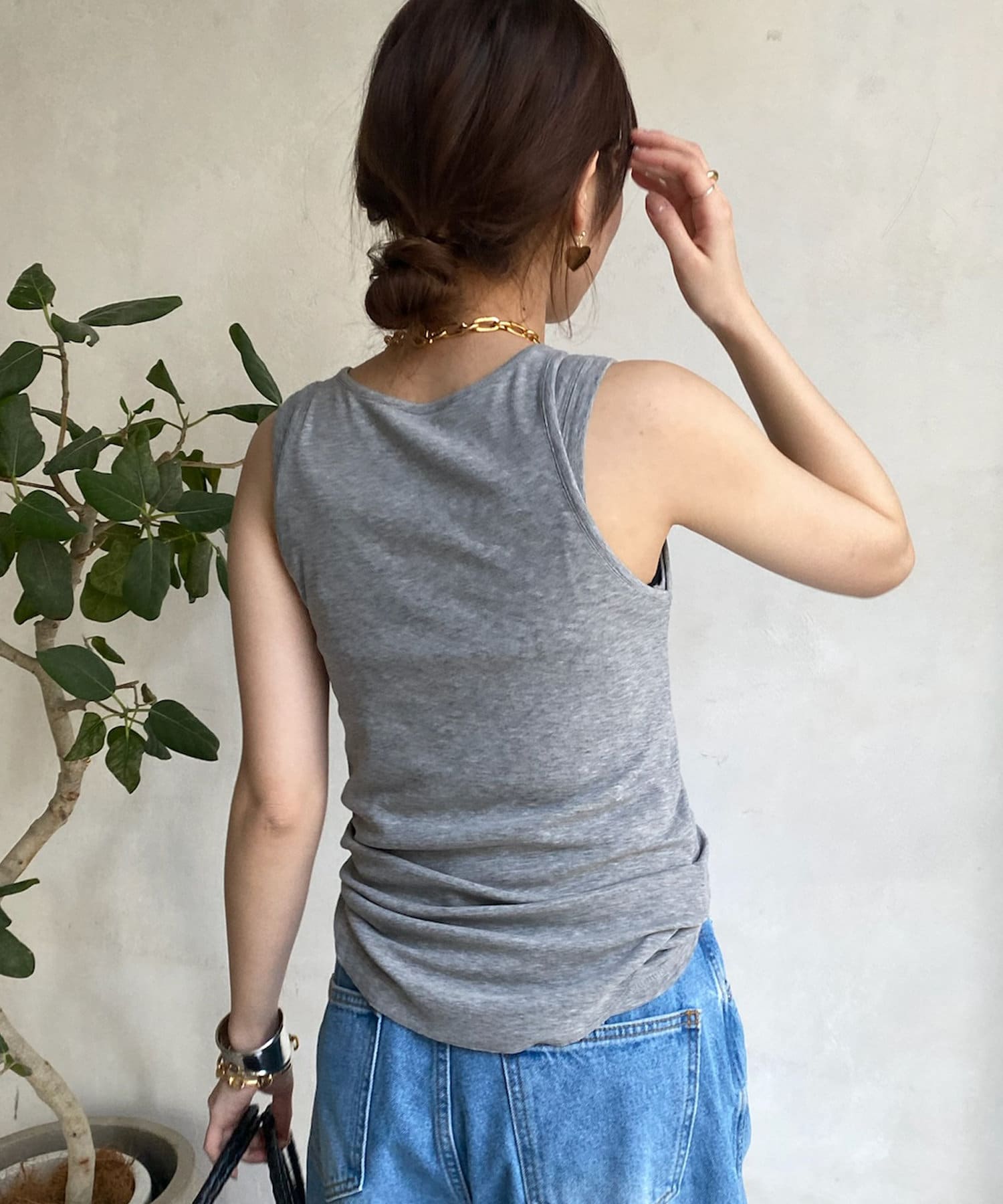 少しディティールの違うタンクトップを2枚重ねて着るアイテム。