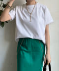 透け感素材がプラスされるだけでシンプルなカットソーも上品見え抜群に。