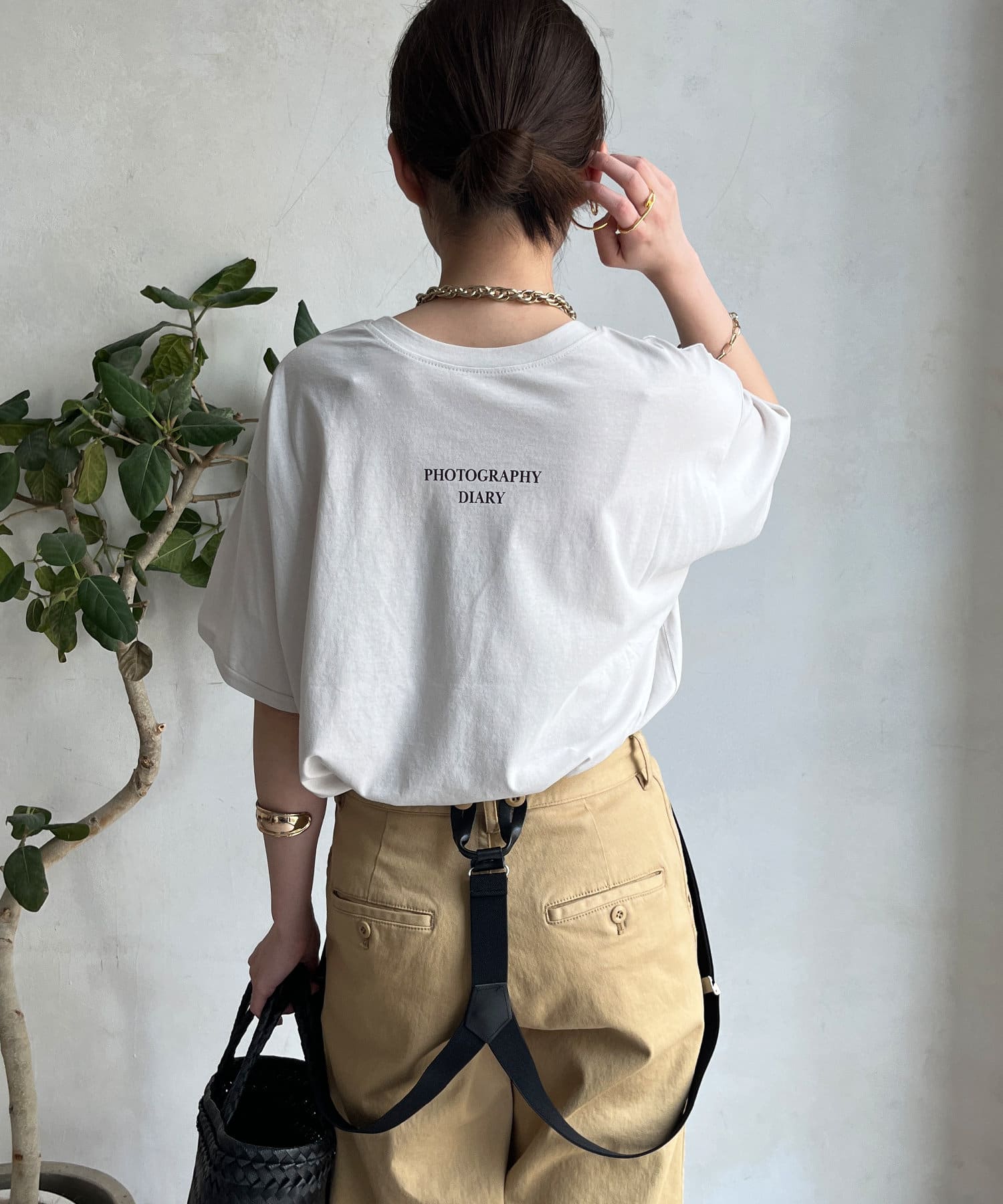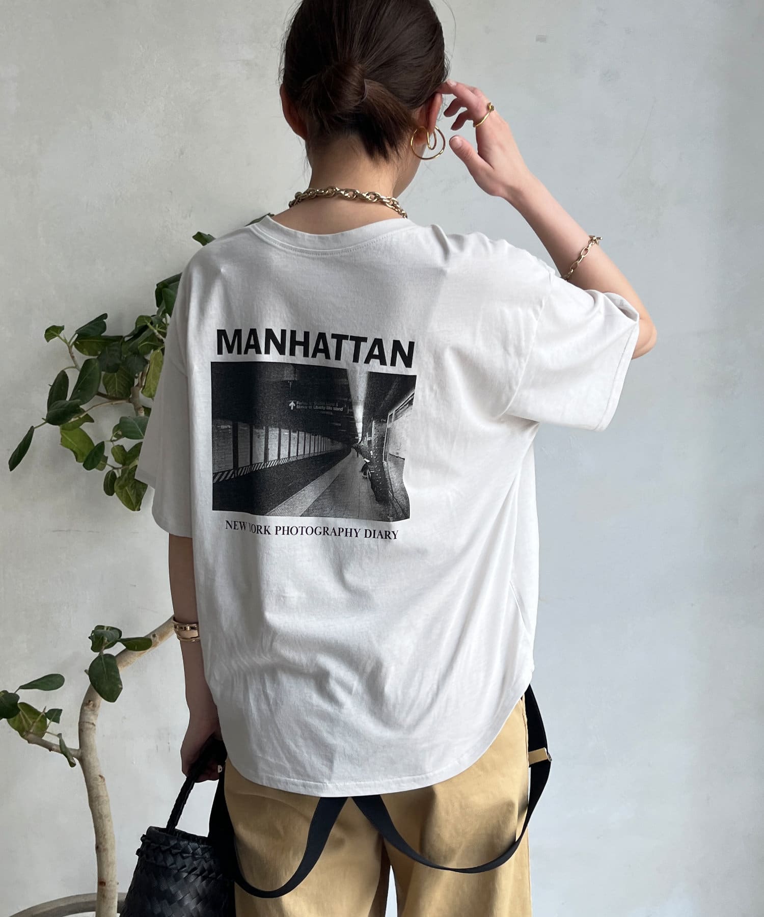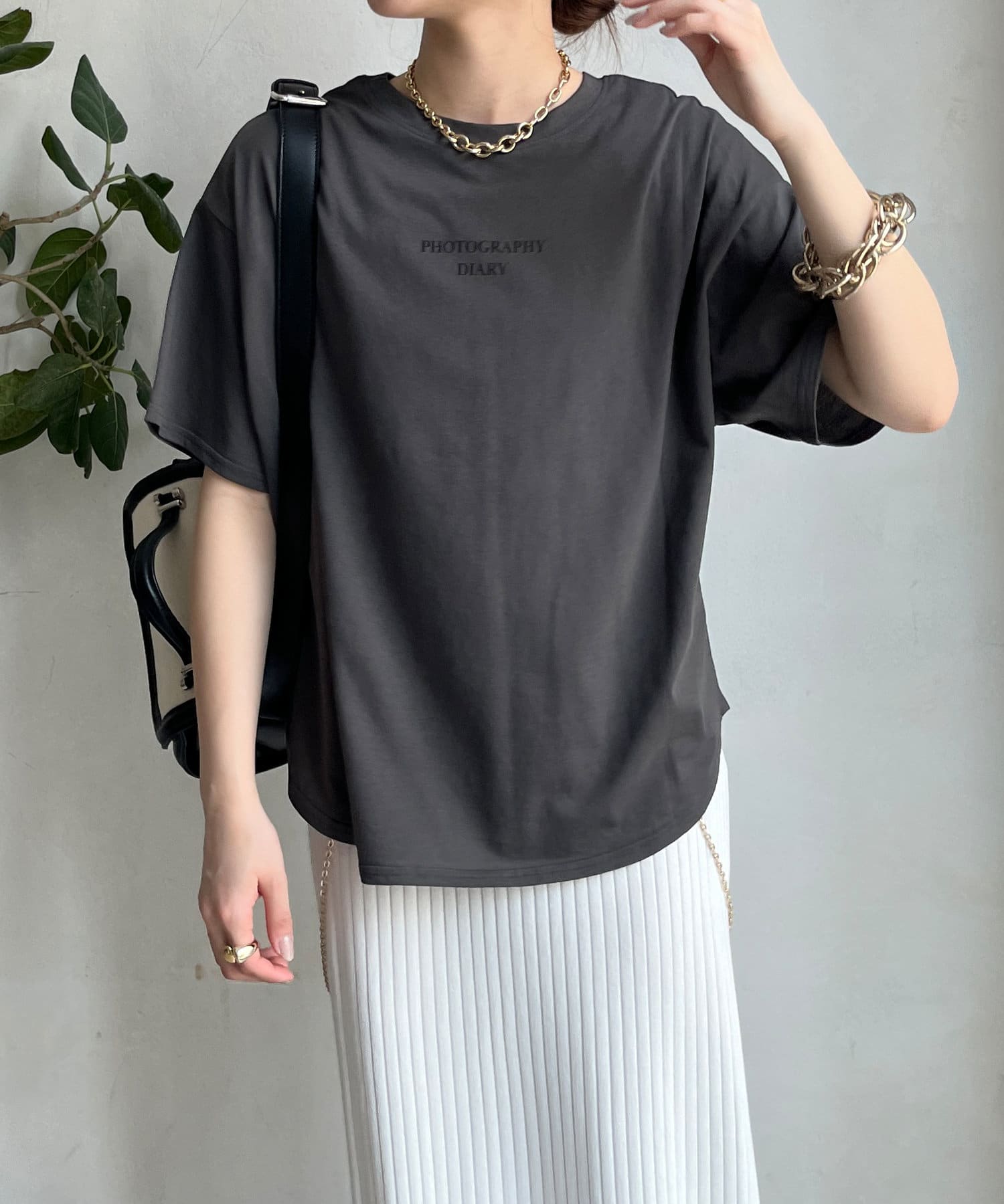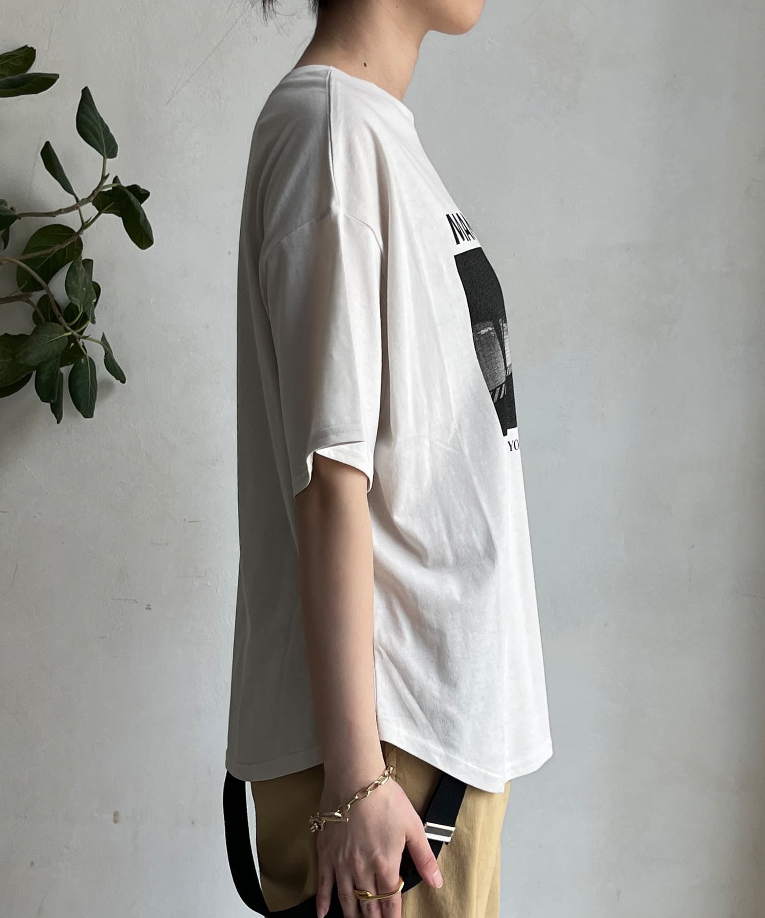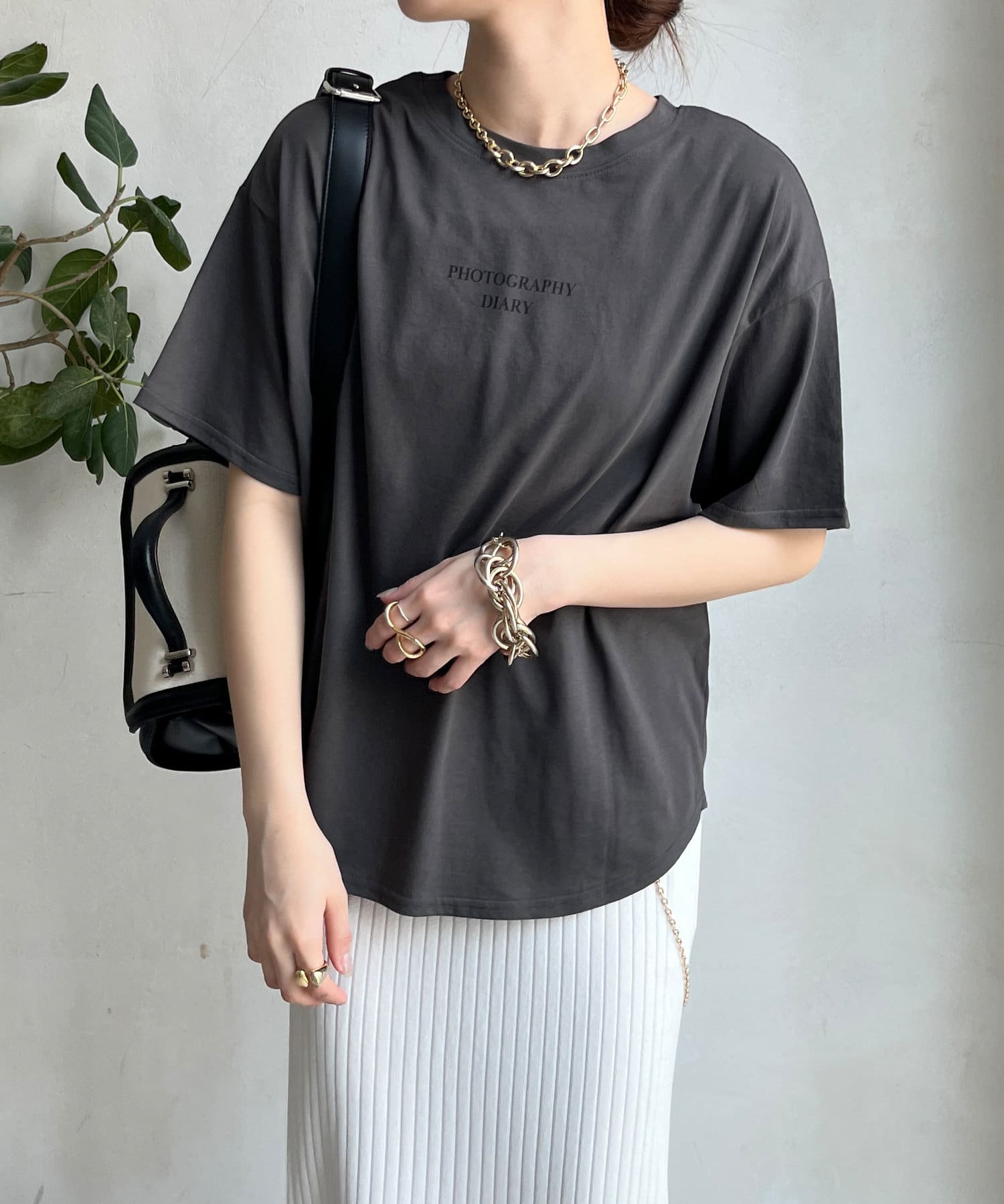 モノトーンのプリントなので、カジュアルの中にもどこかモードな印象を与えてくれる1枚です。