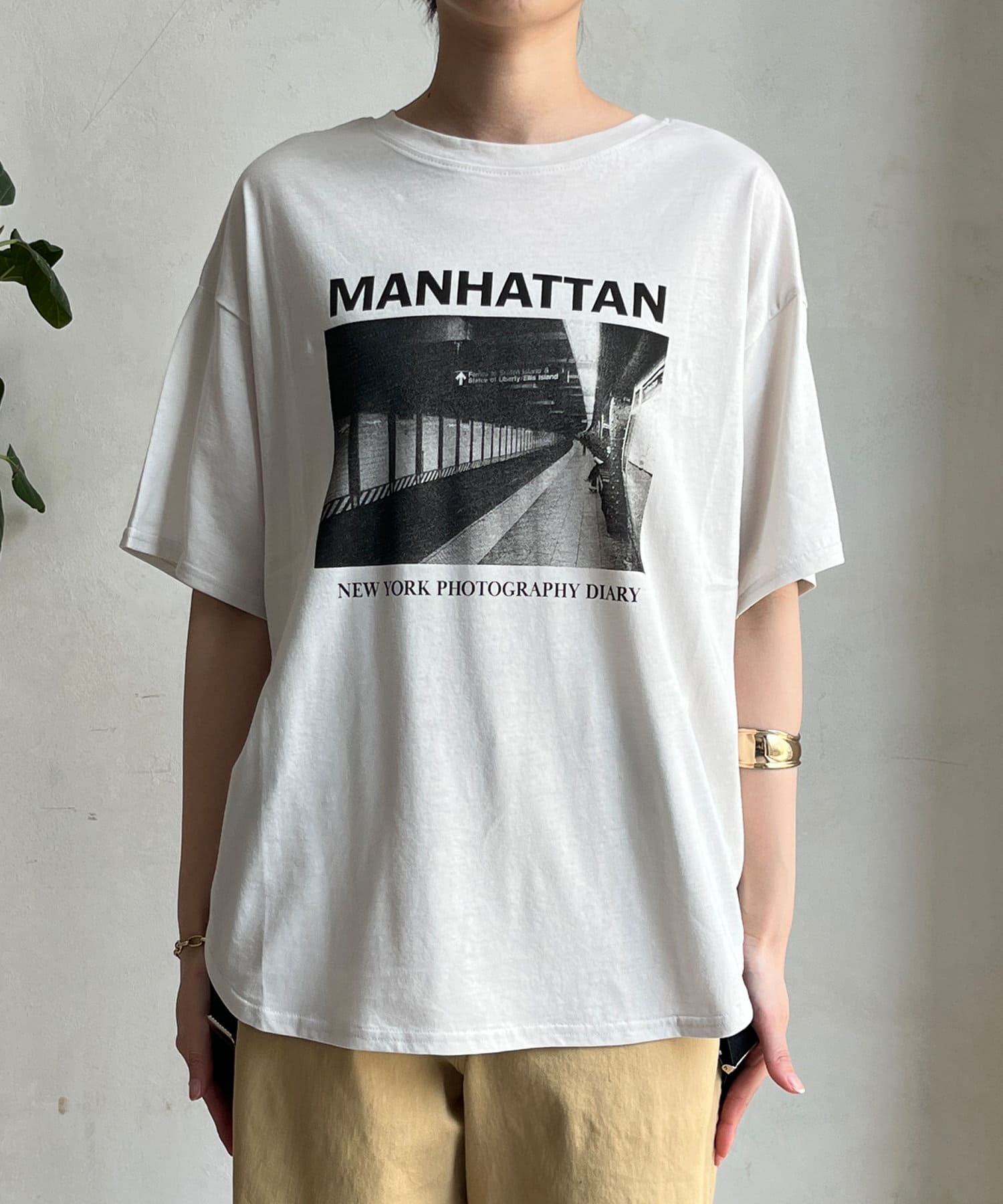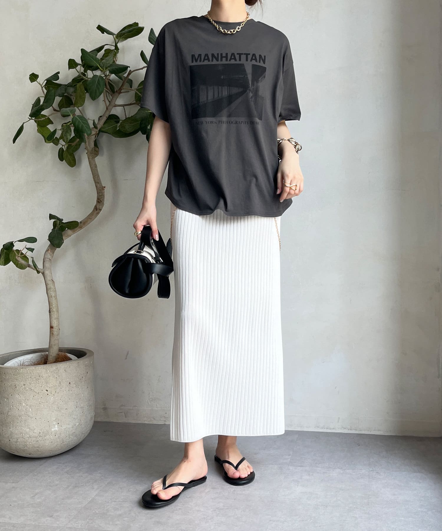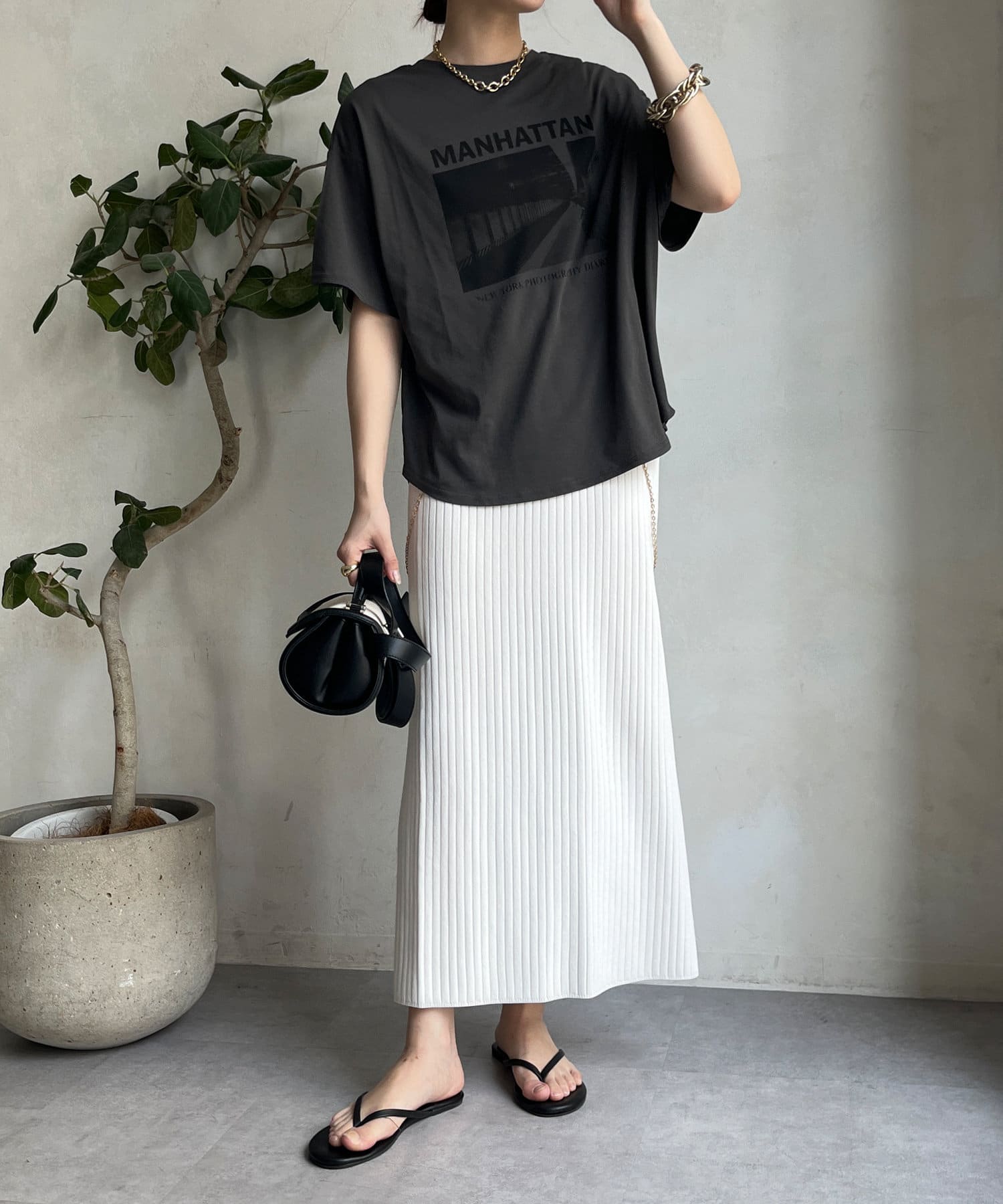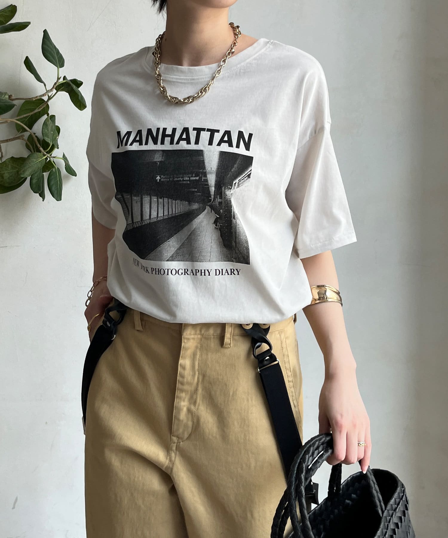 モノトーンのプリントなので、カジュアルの中にもどこかモードな印象を与えてくれる1枚です。