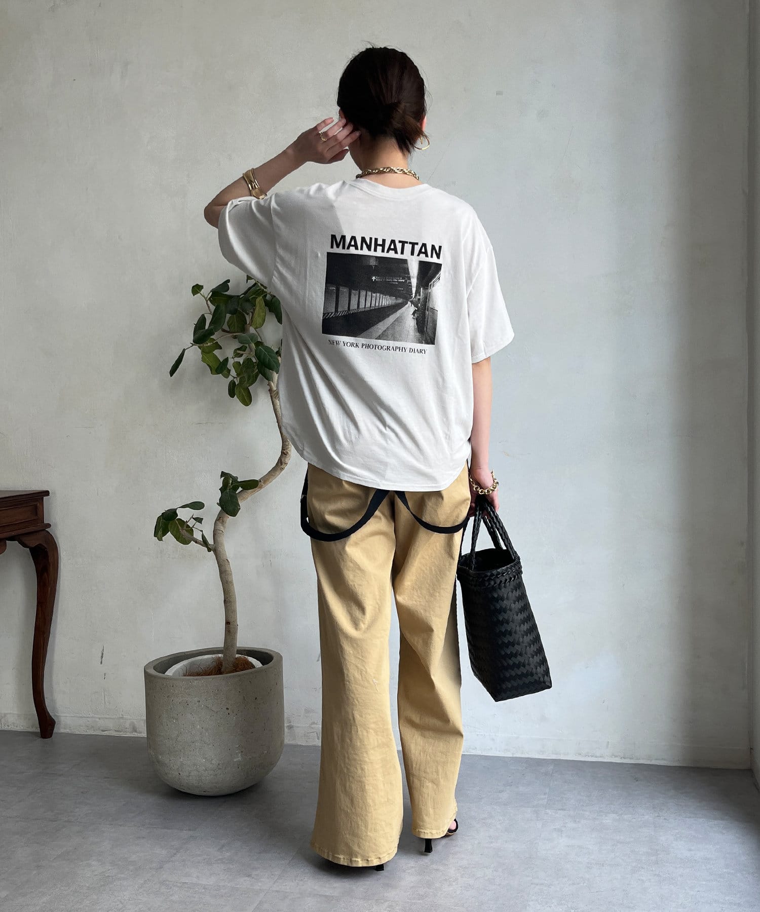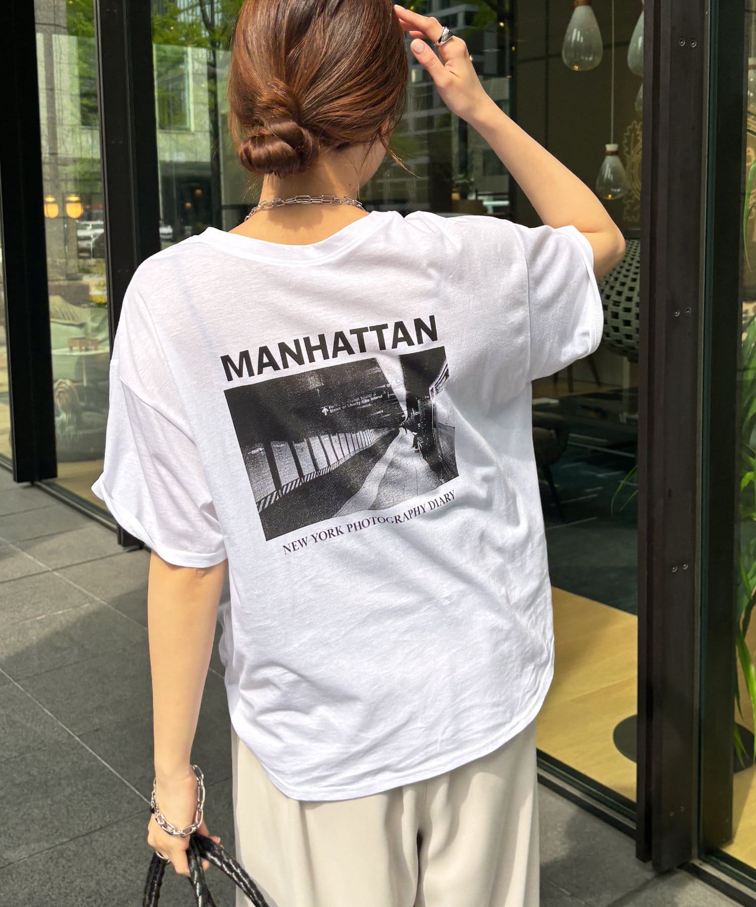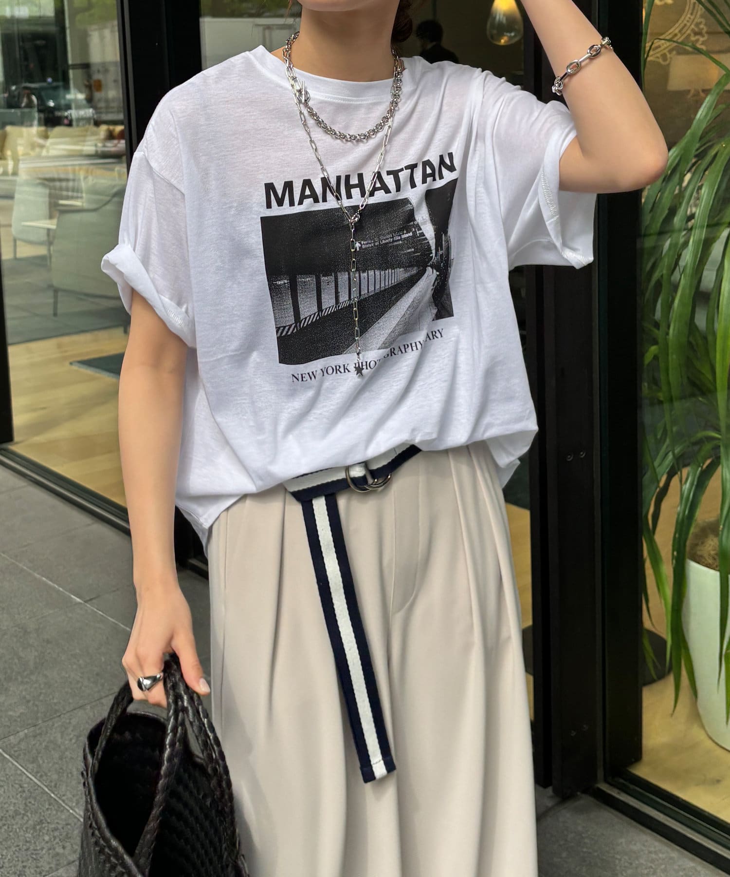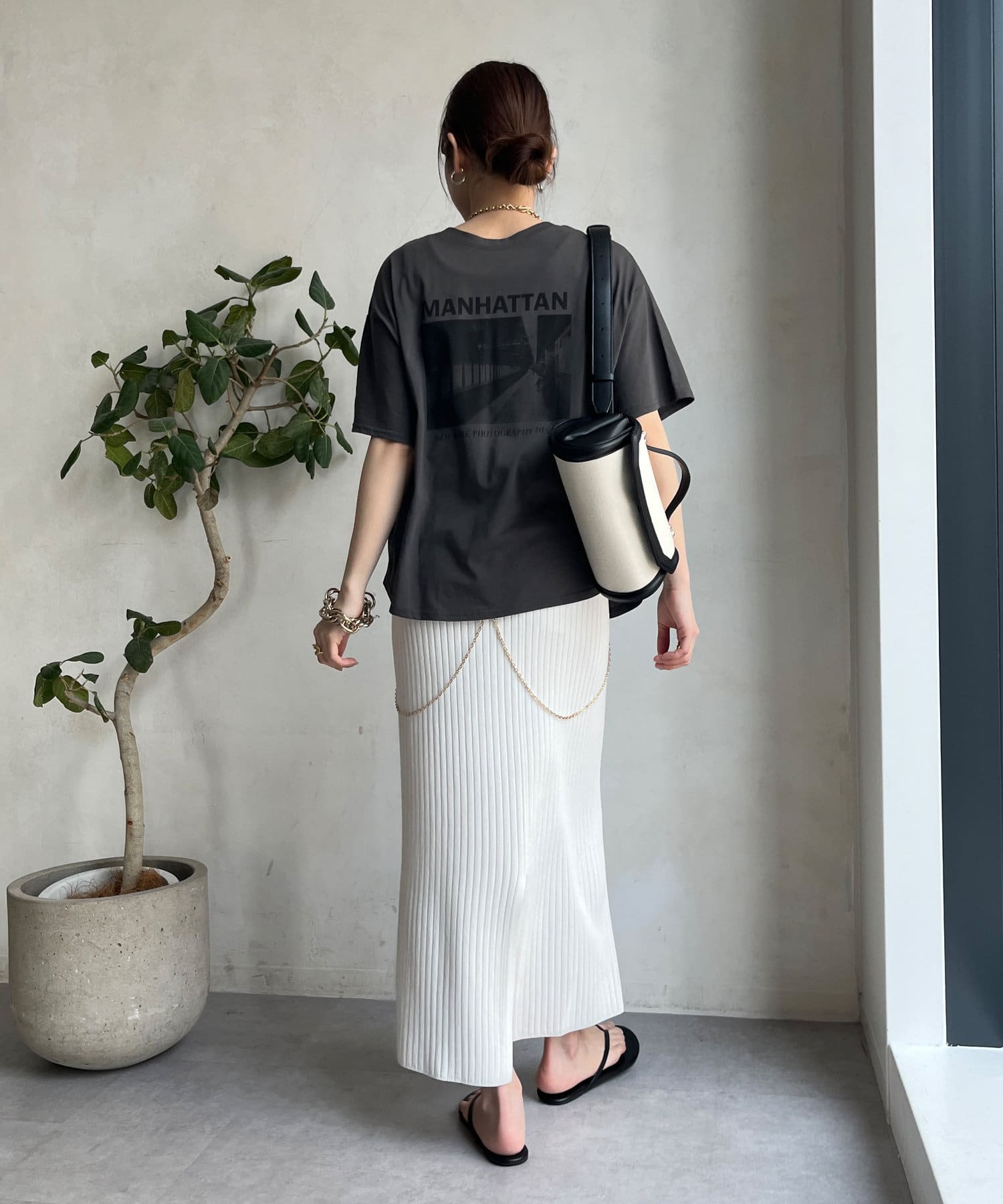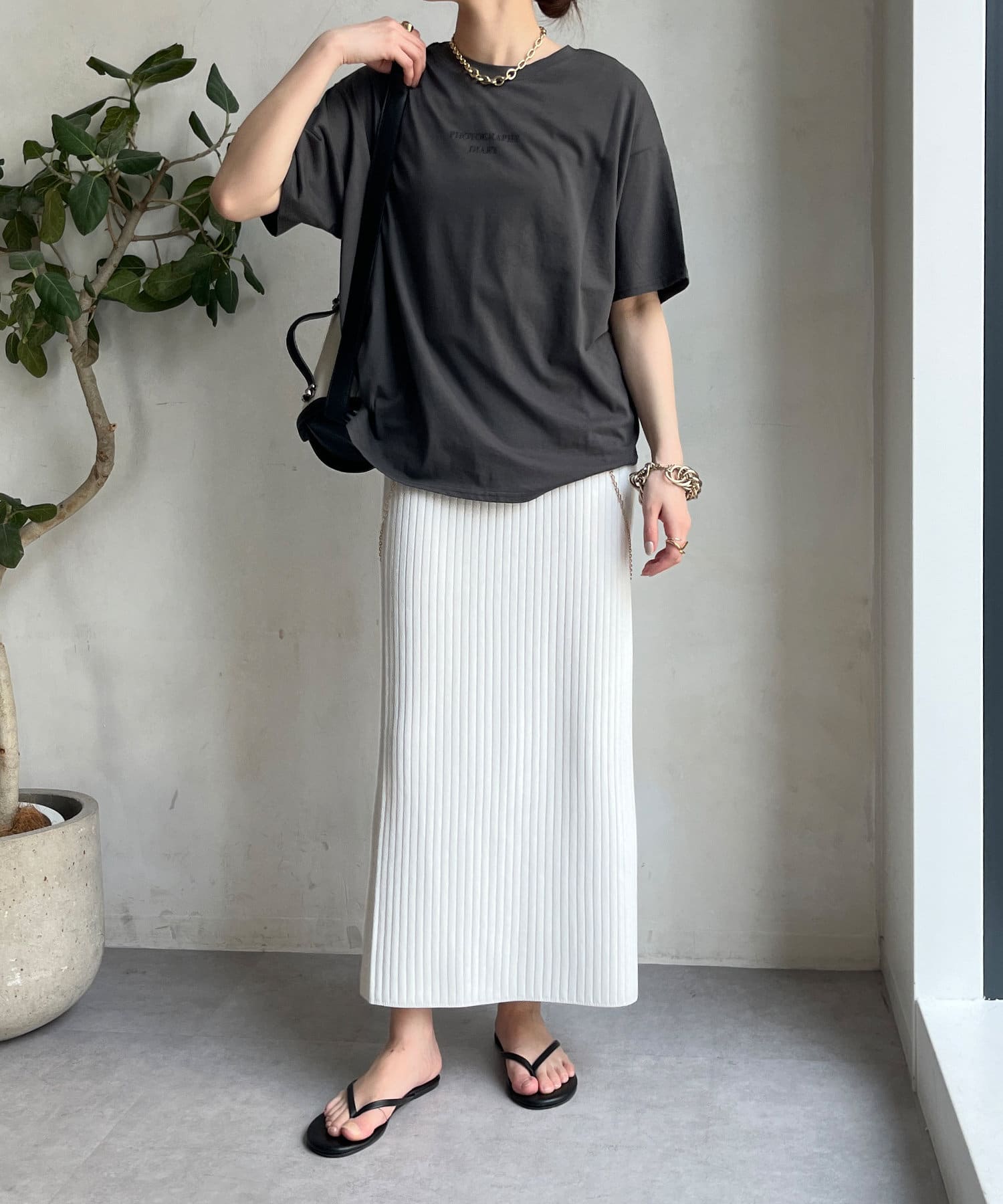 モノトーンのプリントなので、カジュアルの中にもどこかモードな印象を与えてくれる1枚です。