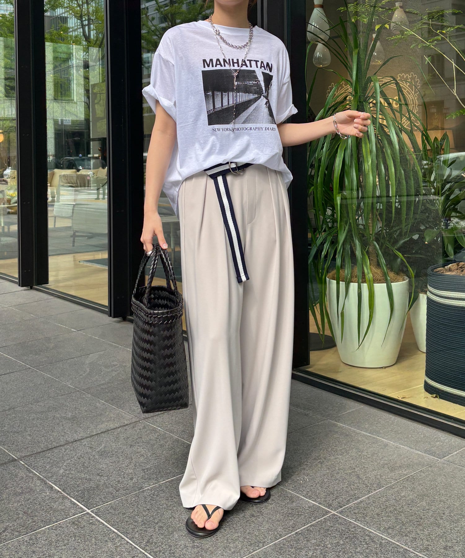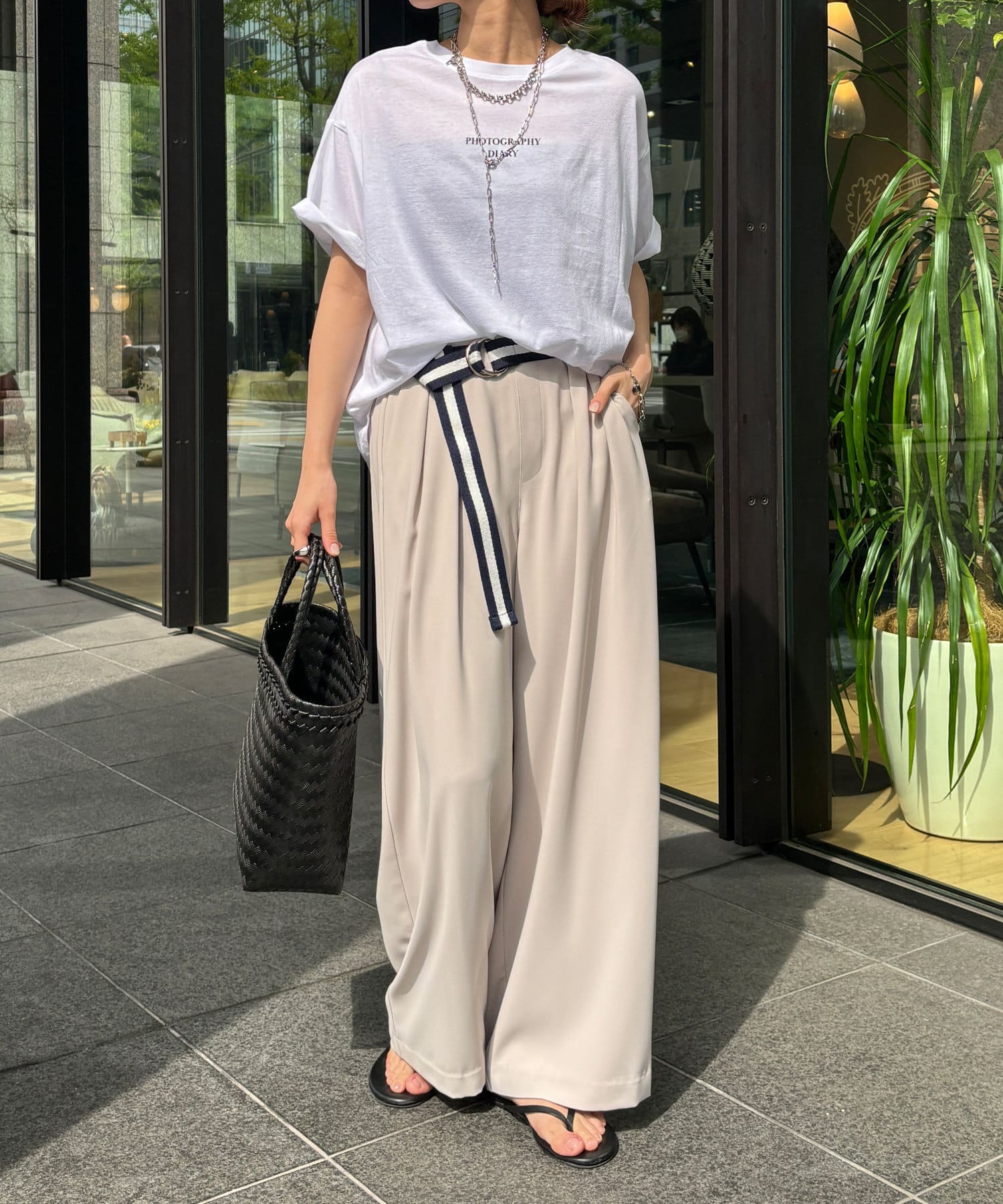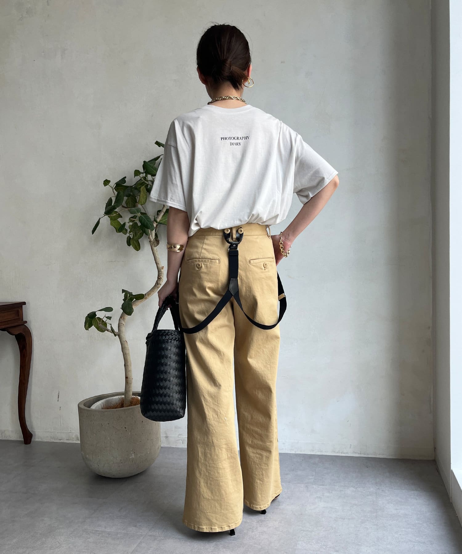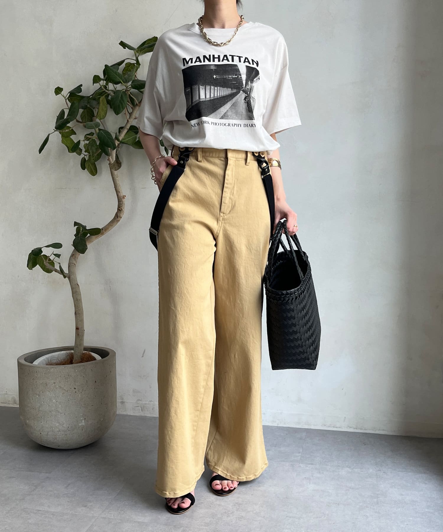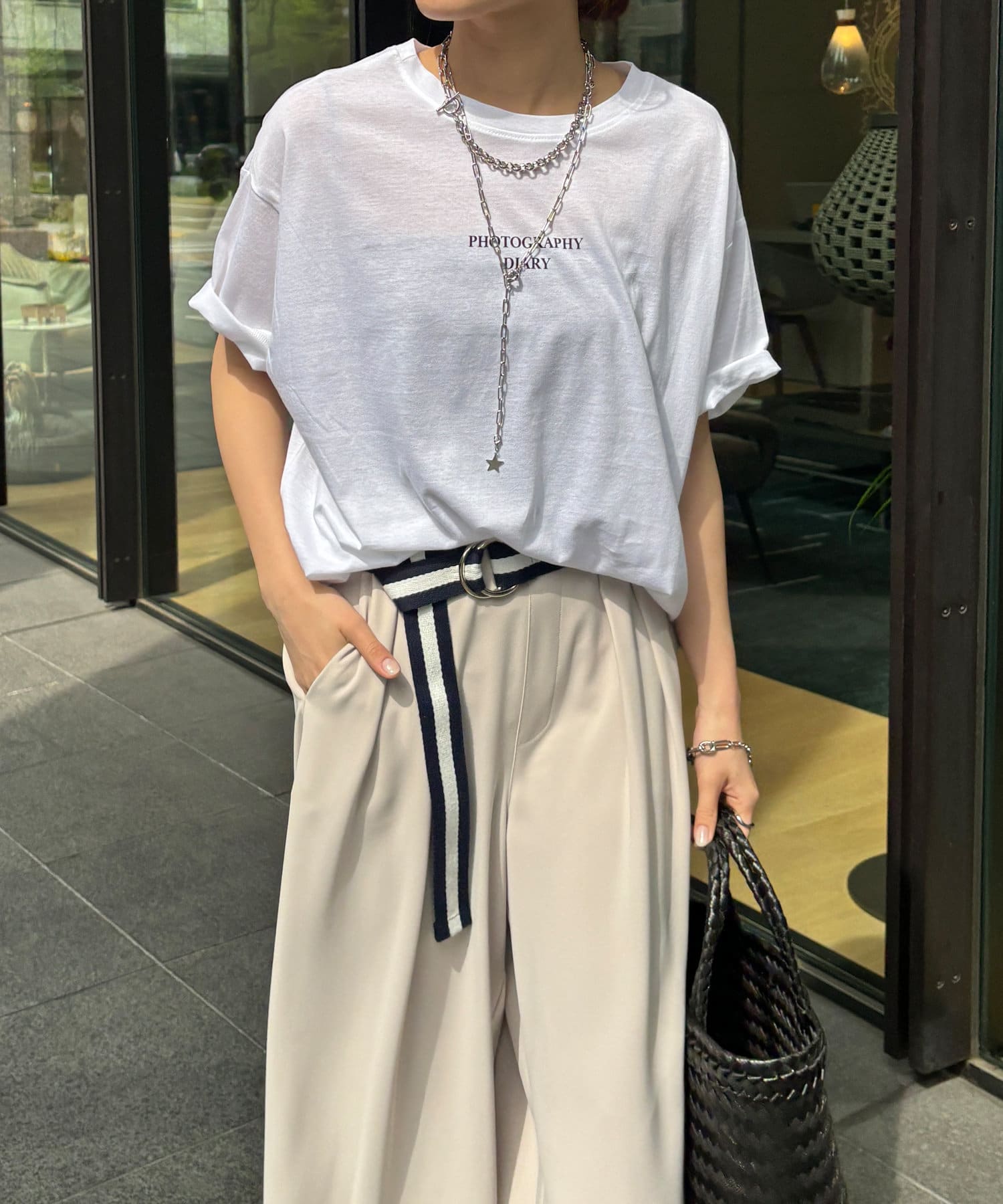 モノトーンのプリントなので、カジュアルの中にもどこかモードな印象を与えてくれる1枚です。