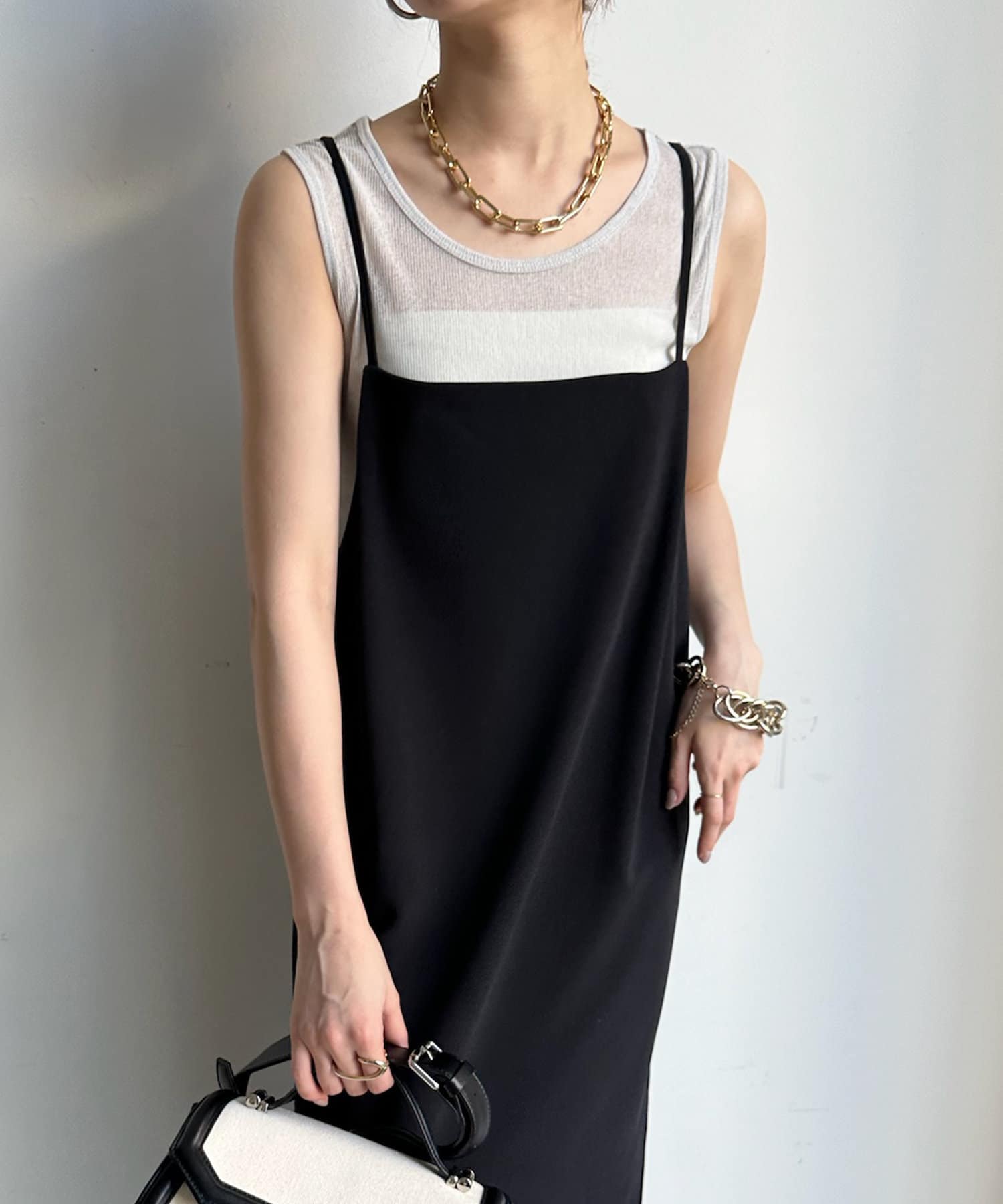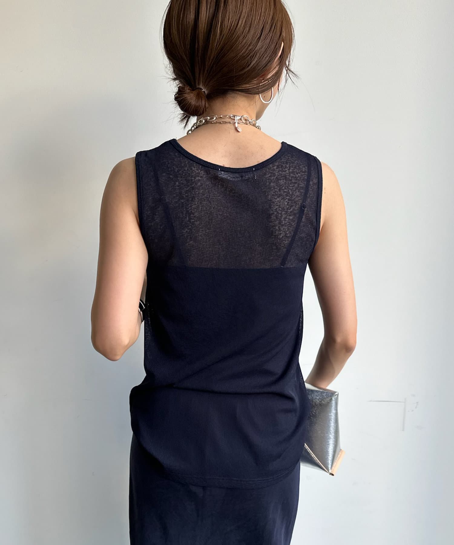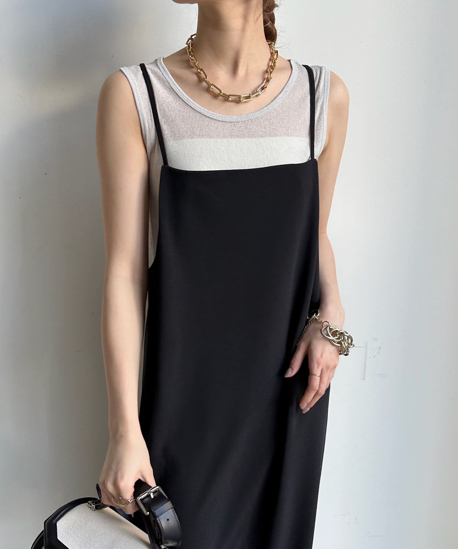 タンクをインナーに着るのも、上から重ねるのもどちらでも可能。また、それぞれ単品使いもしていただけます。
