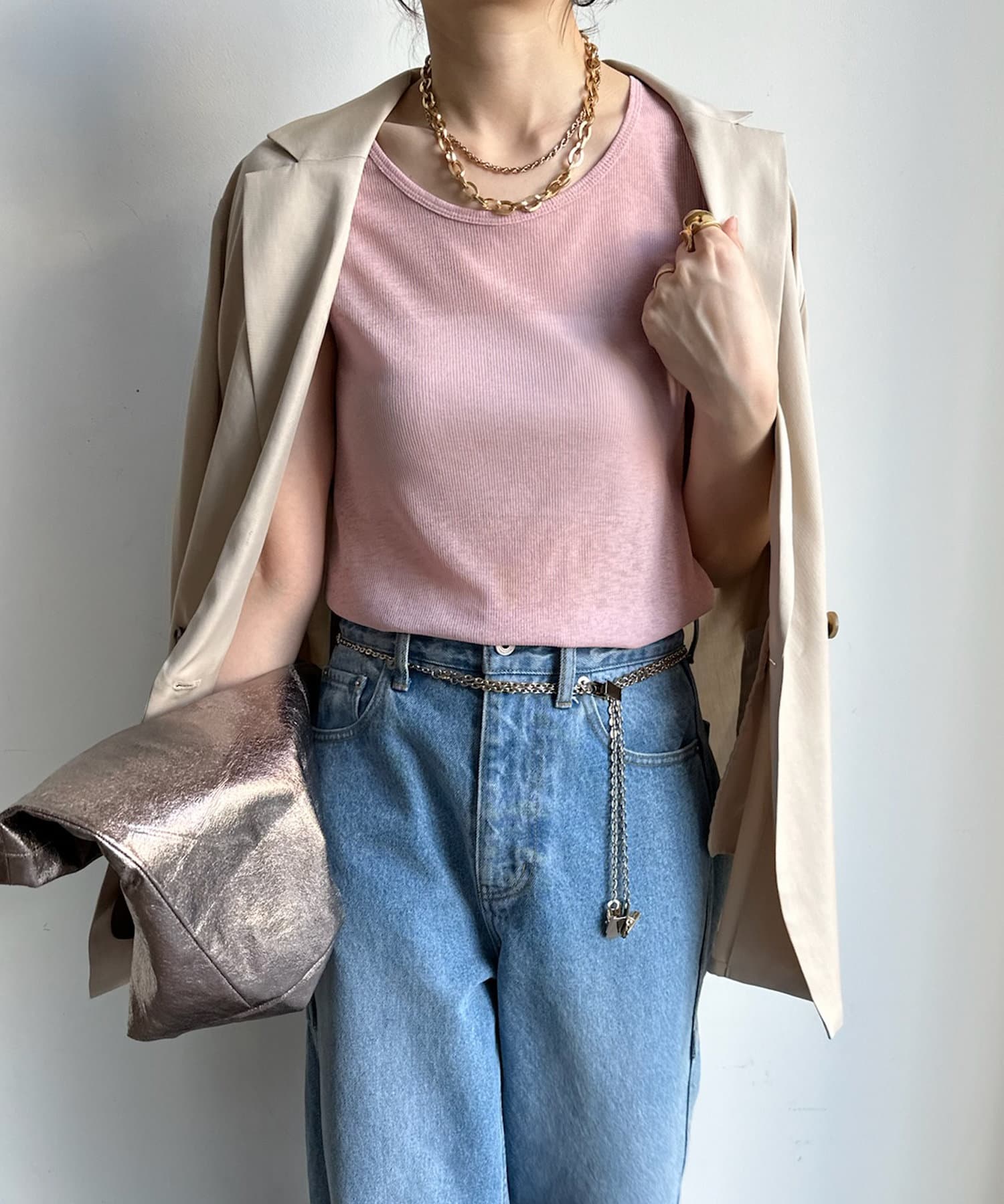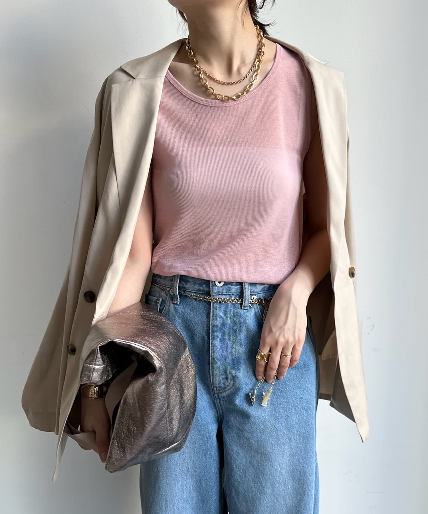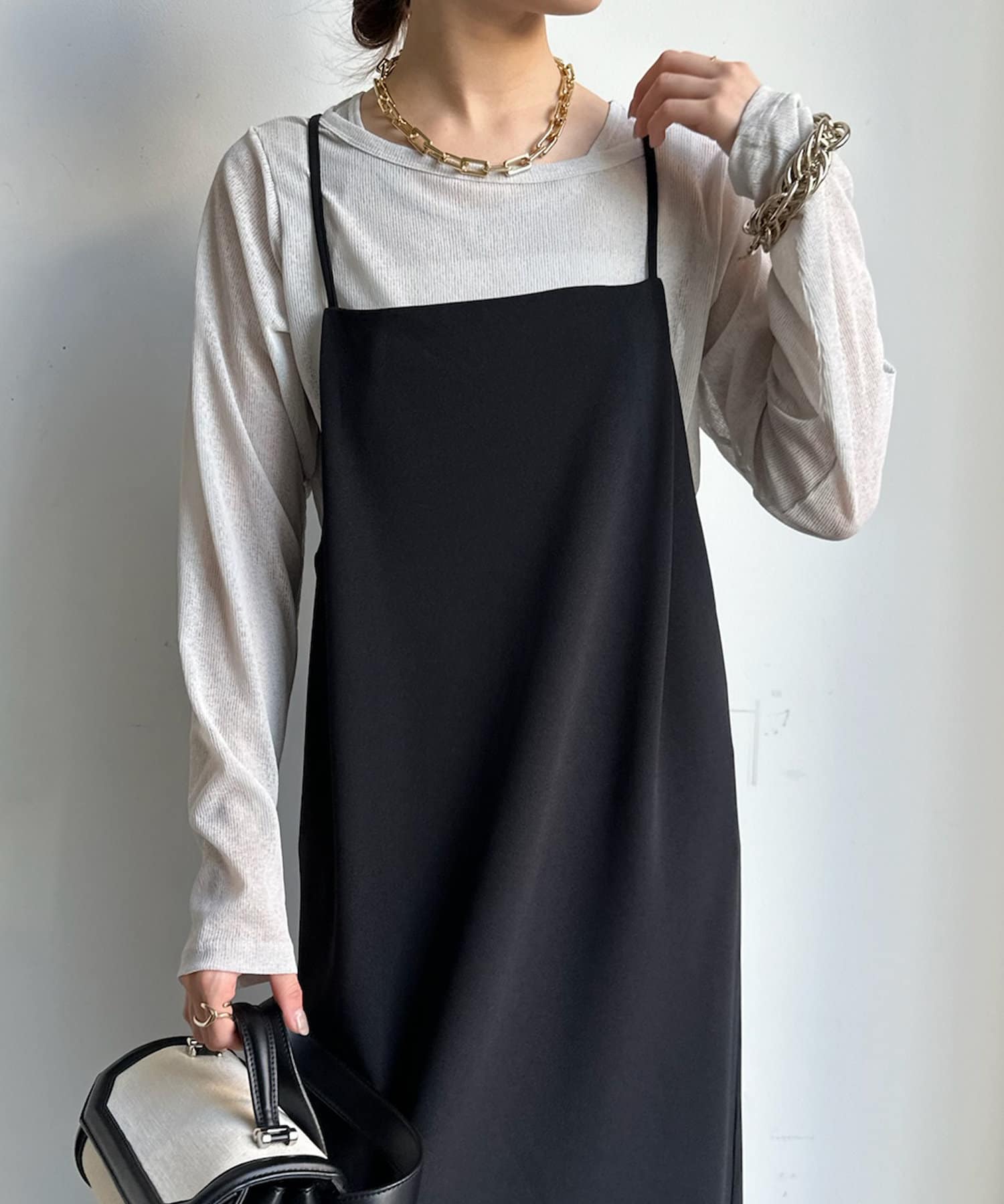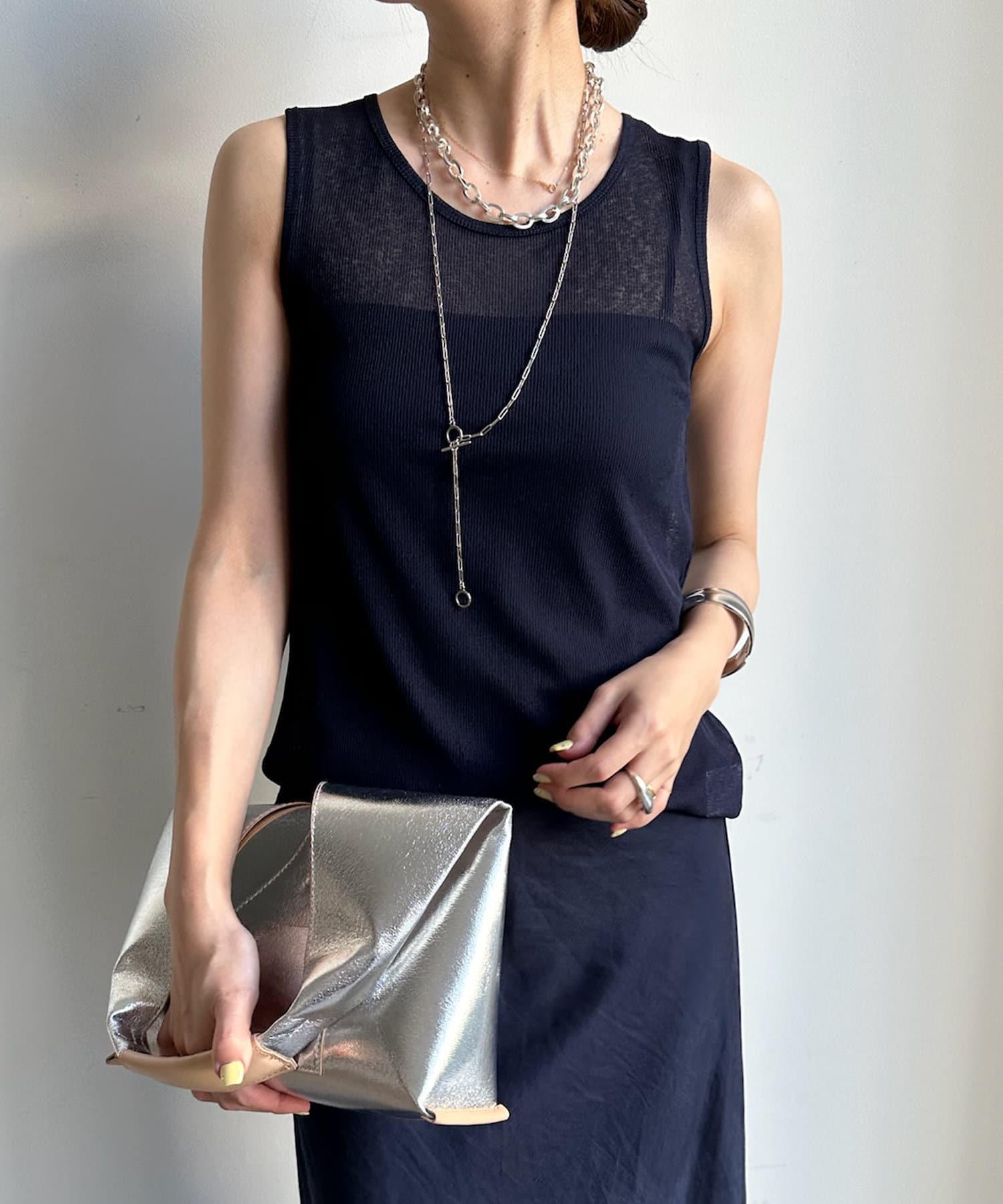 タンクをインナーに着るのも、上から重ねるのもどちらでも可能。また、それぞれ単品使いもしていただけます。