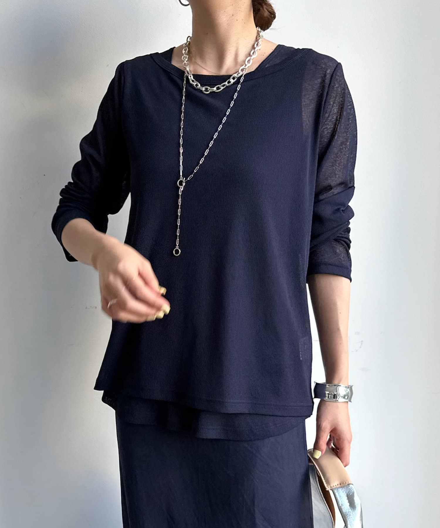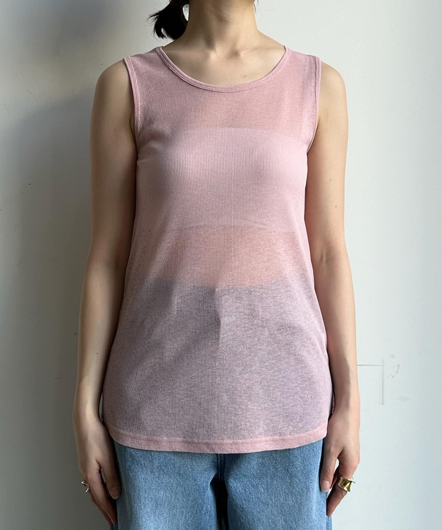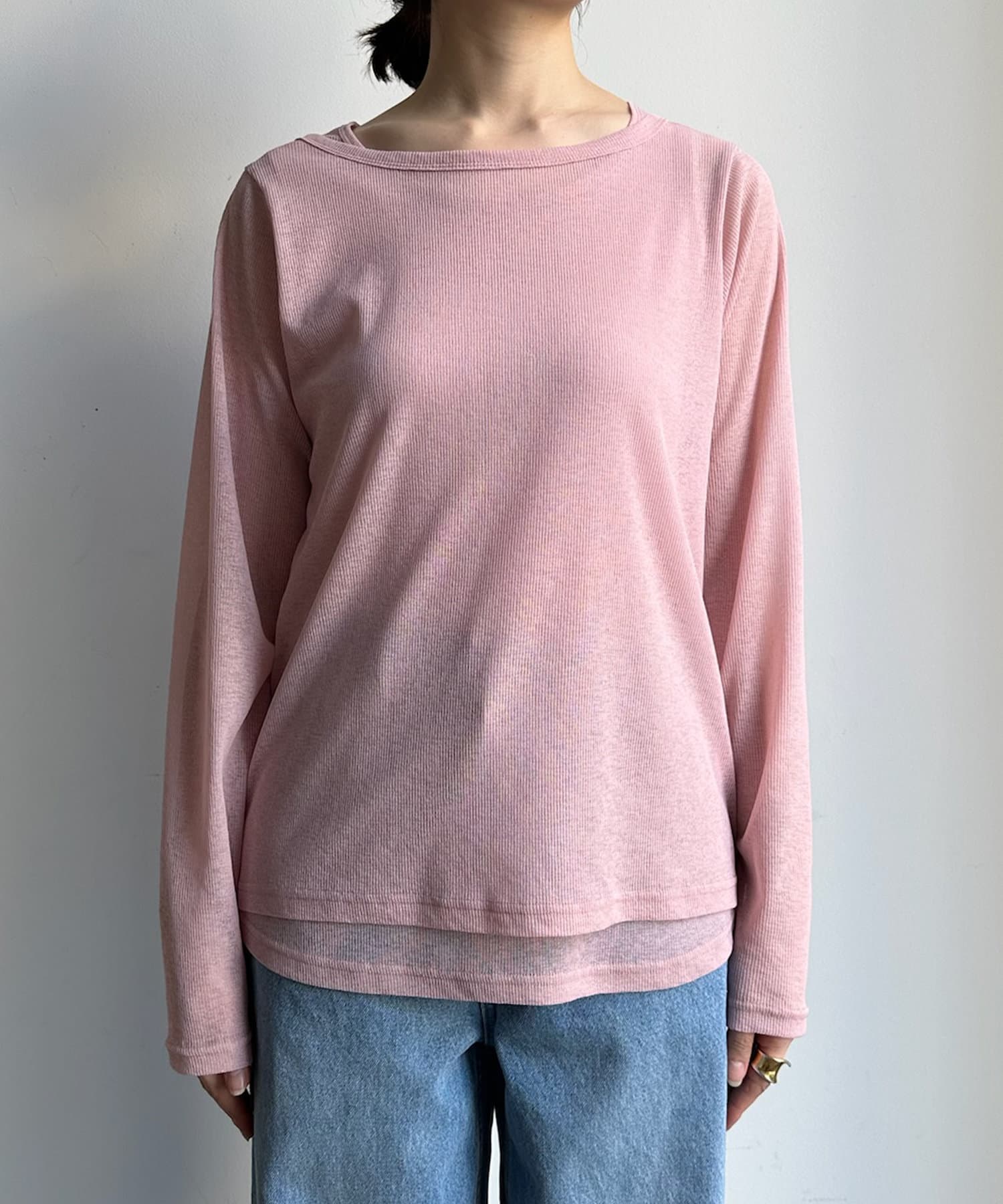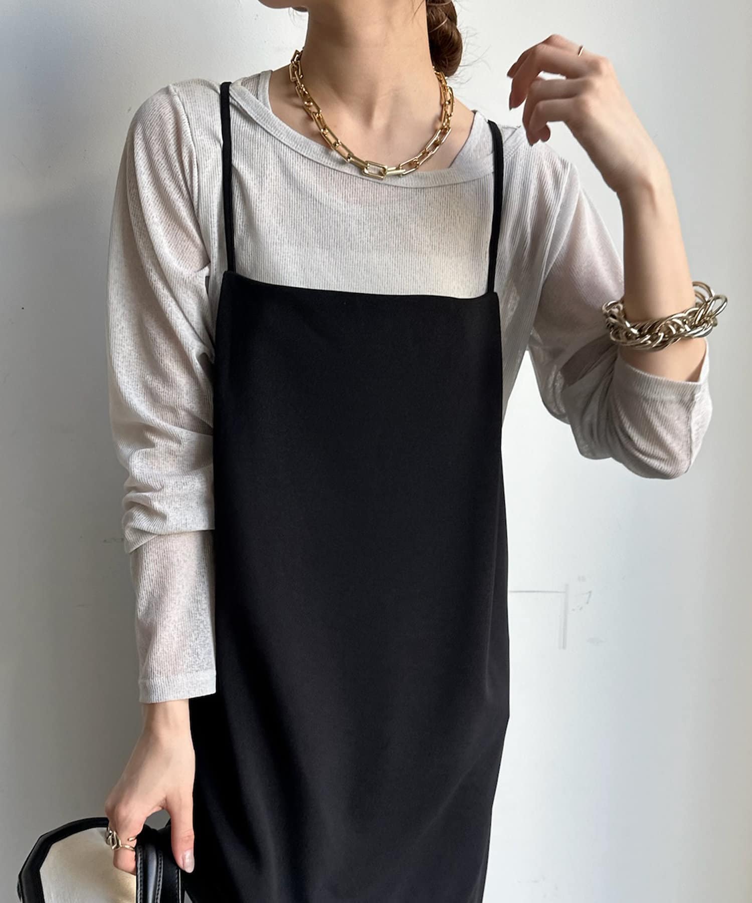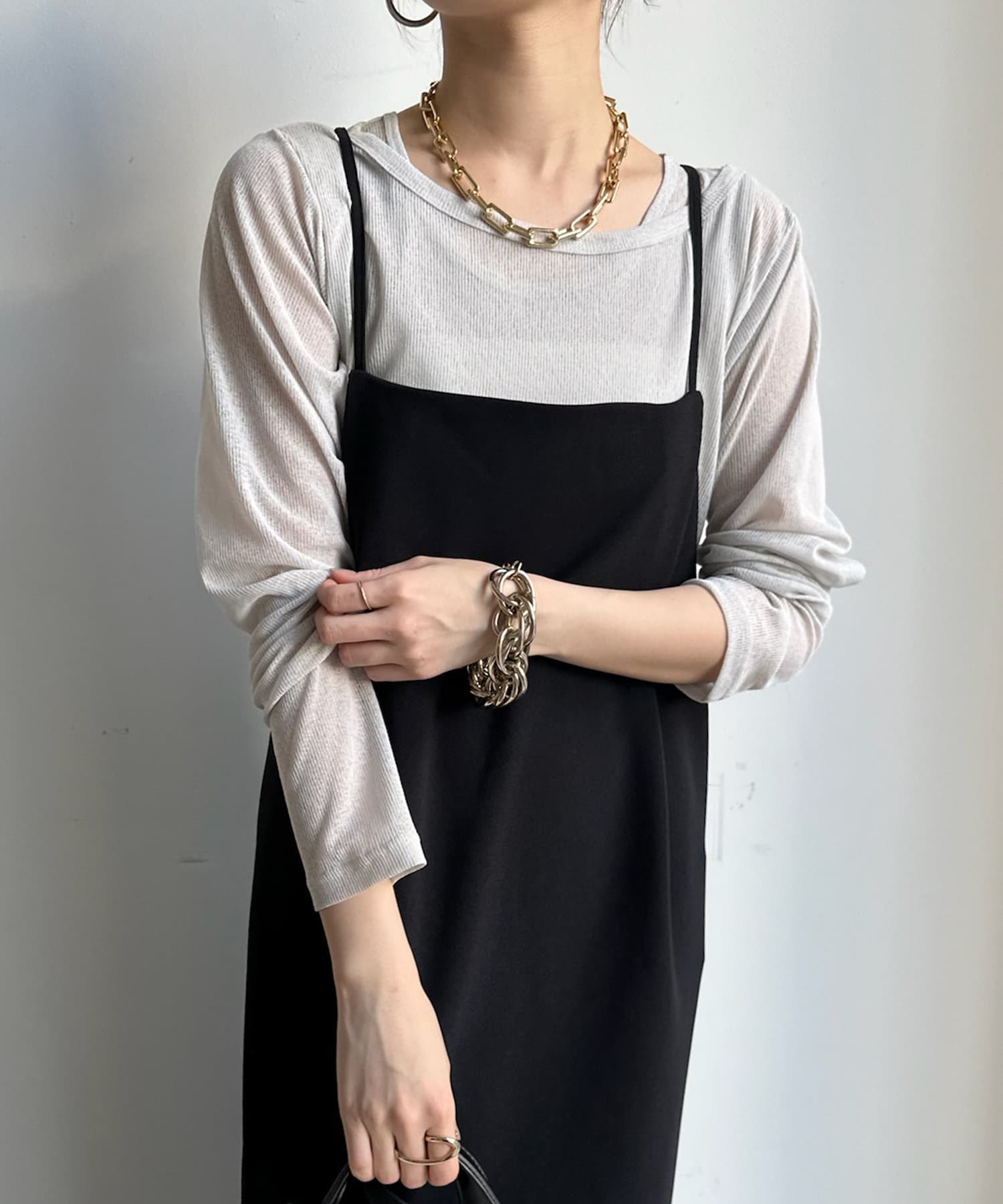 シアー感のある同素材のロンTeeとタンクをセットにしたアイテム。