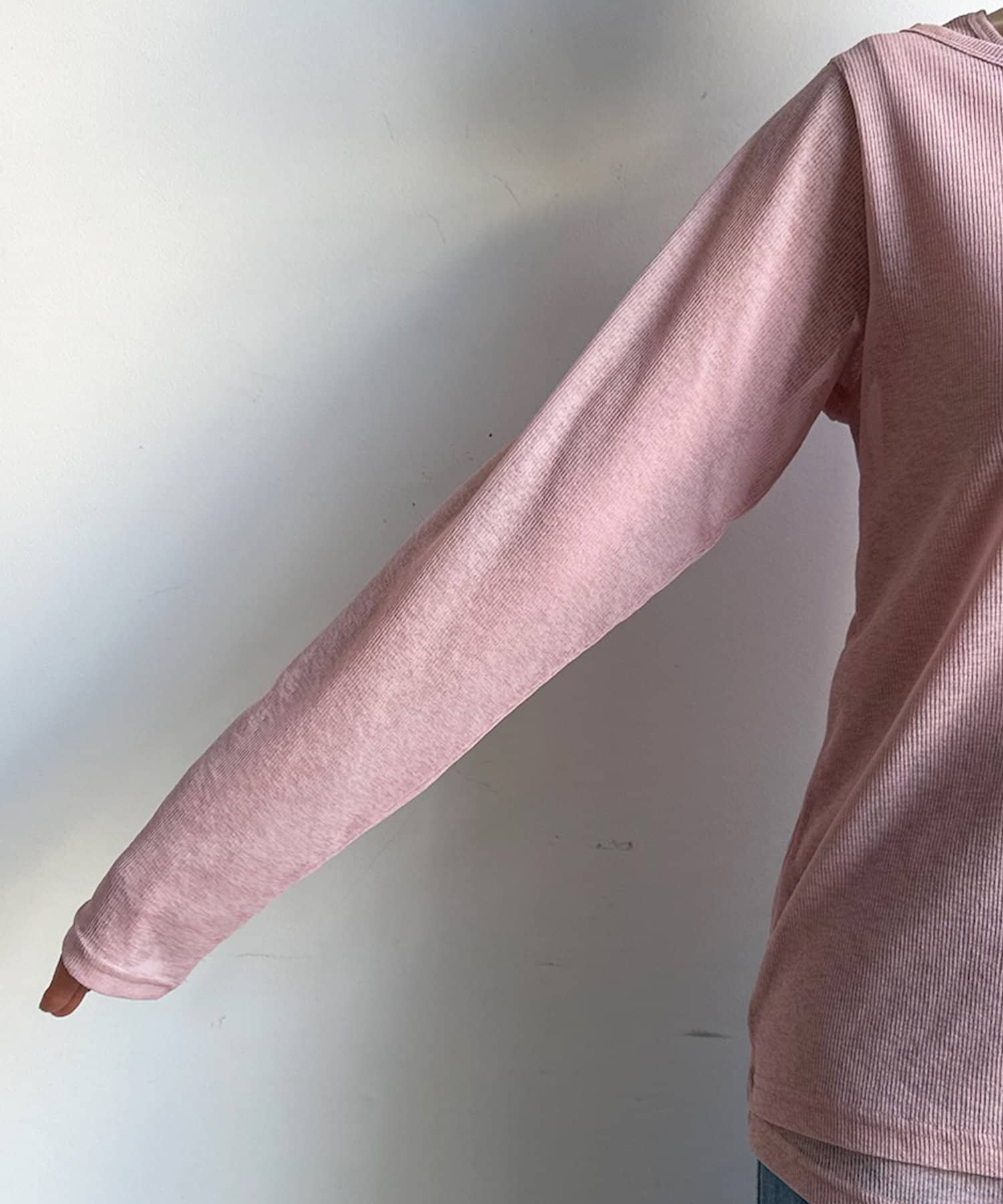 伸びのいい素材感のため、コンパクトなサイジングではありますが、窮屈感なく着ていただけますよ〇