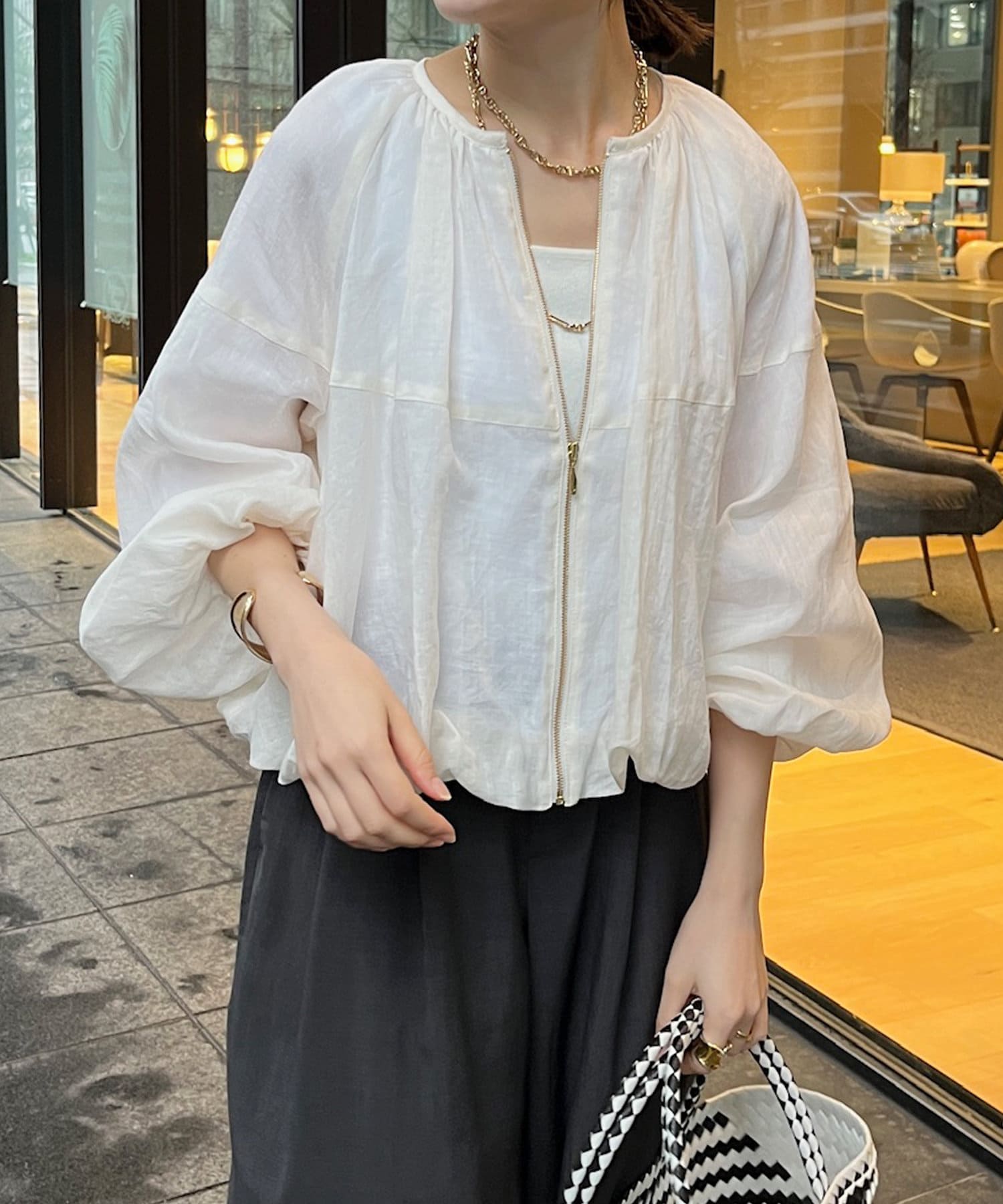 リネン素材で仕上げたボリュームブルゾン。